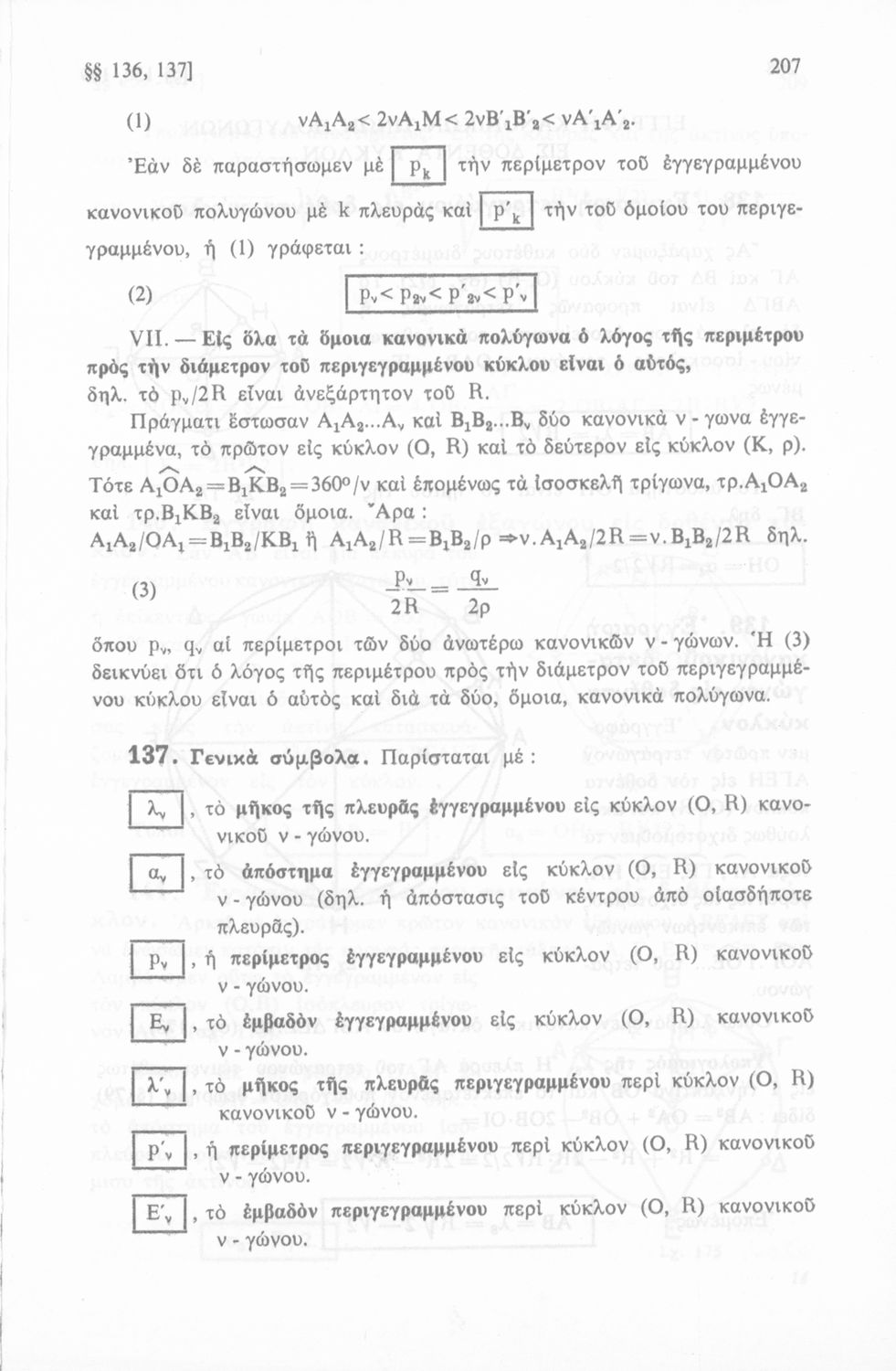 Σχολικό εγχειρίδιο Γεωμετρίας για τις Γ΄, Δ΄, Ε΄, ΣΤ΄ Γυμνασίου που εστιάζει στα βασικά θεωρήματα και ιδιότητες των γεωμετρικών σχημάτων. Φέρει το σύμβολο της δικτατορίας.