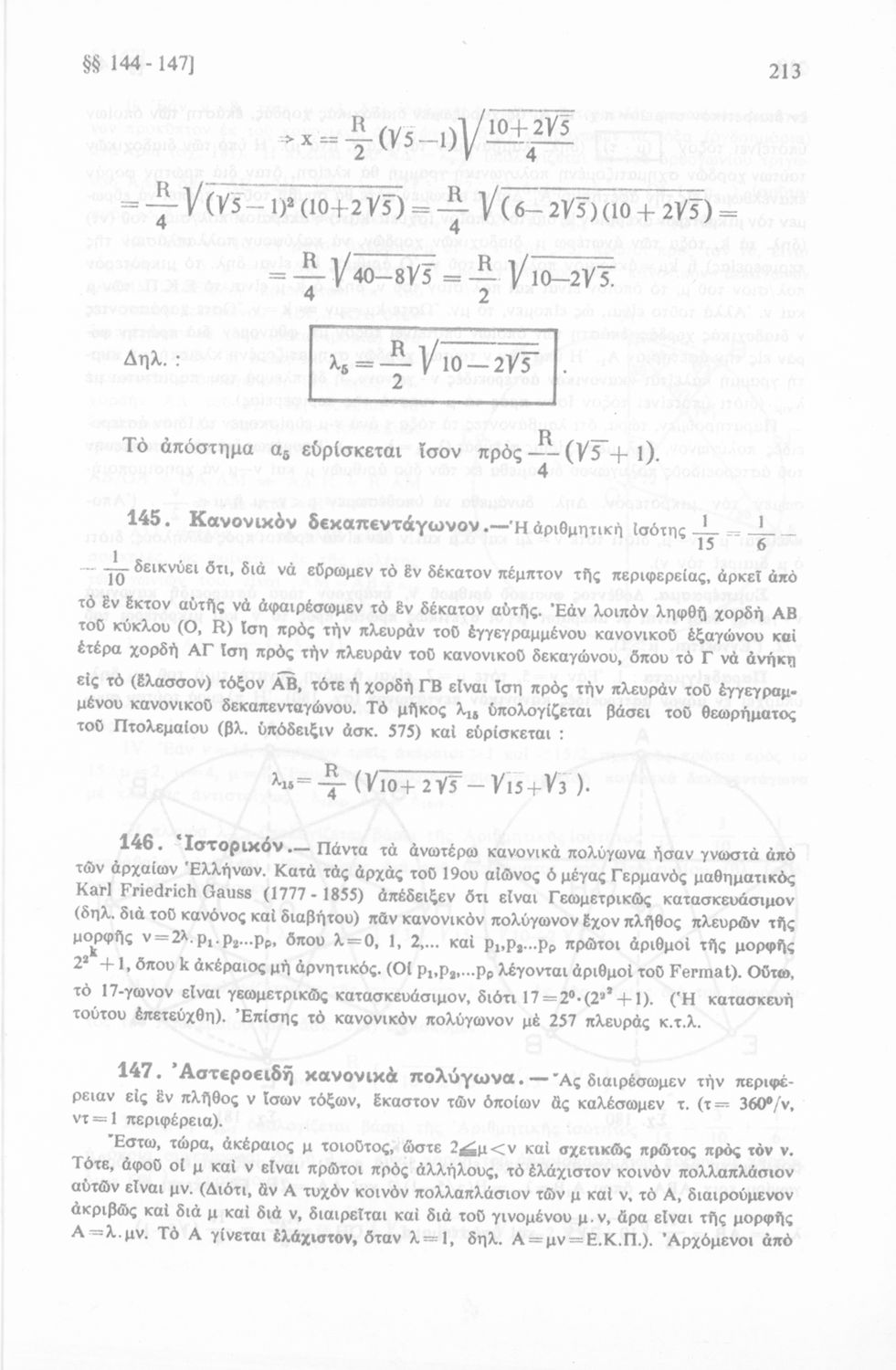 Σχολικό εγχειρίδιο Γεωμετρίας για τις Γ΄, Δ΄, Ε΄, ΣΤ΄ Γυμνασίου που περιλαμβάνει θεωρία και ασκήσεις και είναι χωρισμένο σε Επιπεδομετρία και Στερεομετρία. Φέρει το σύμβολο της δικτατορίας.