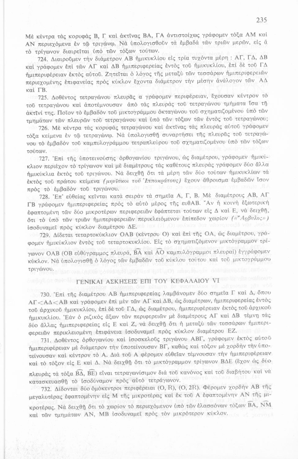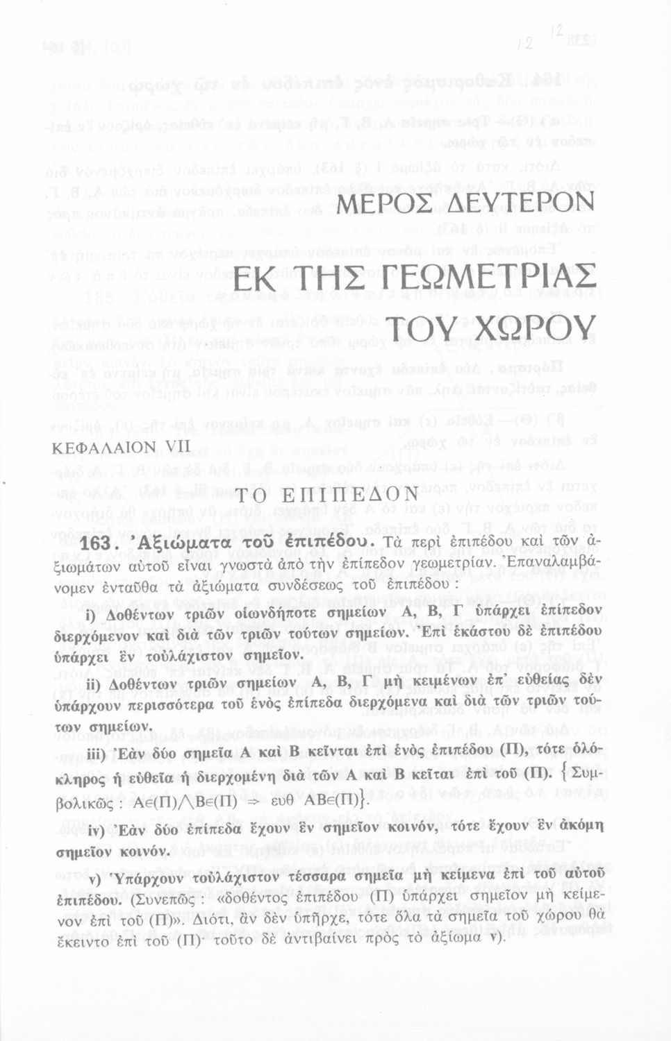 Σχολικό εγχειρίδιο Γεωμετρίας για τις Δ΄, Ε΄ και ΣΤ΄ Γυμνασίου που περιλαμβάνει αξιώματα, θεωρήματα και κατασκευές και είναι χωρισμένο σε γεωμετρία επιπέδου και γεωμετρία χώρου.