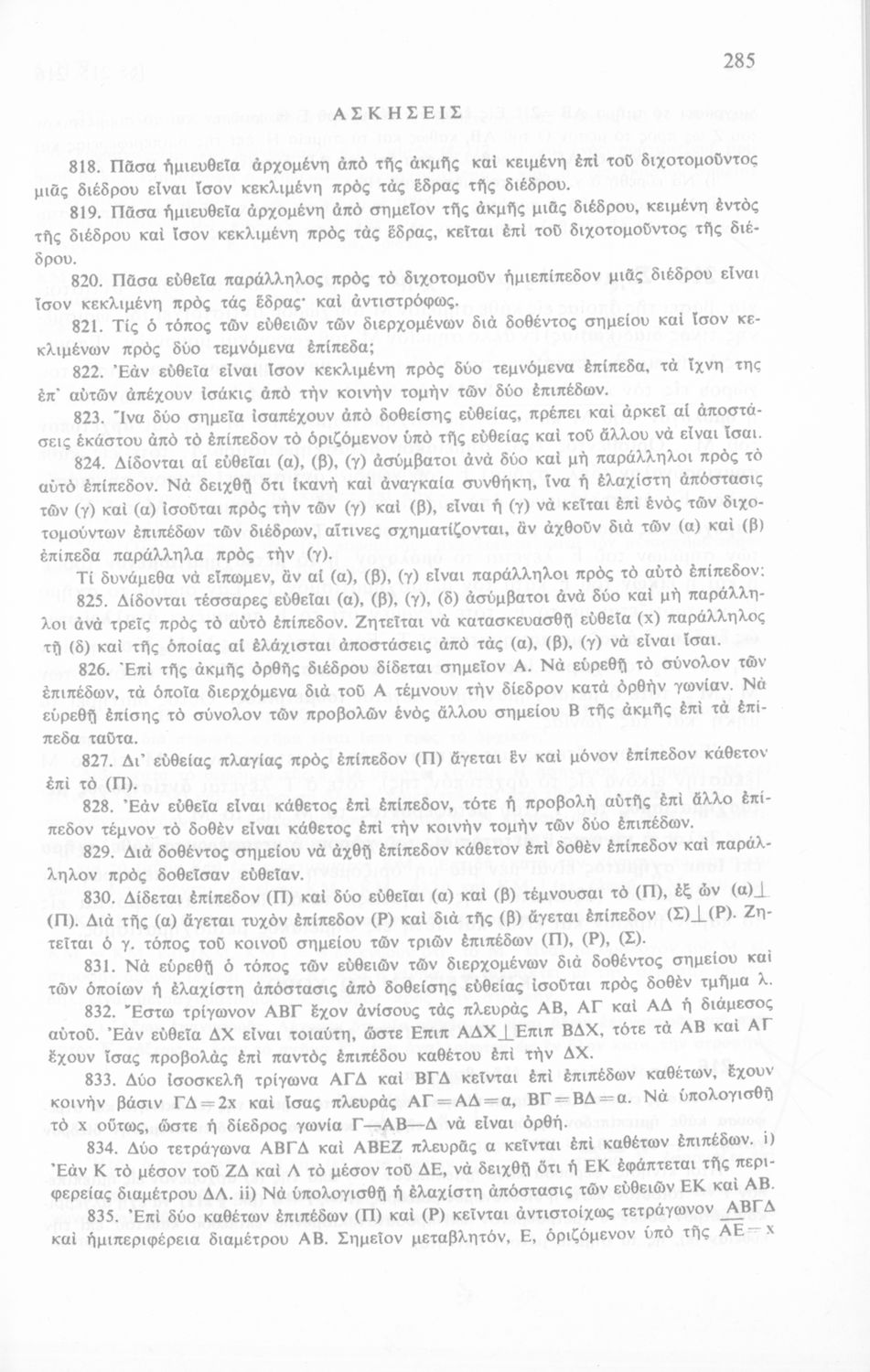 Σχολικό εγχειρίδιο Γεωμετρίας για τις Δ΄, Ε΄ και ΣΤ΄ Γυμνασίου που περιλαμβάνει αξιώματα, θεωρήματα και κατασκευές και είναι χωρισμένο σε γεωμετρία επιπέδου και γεωμετρία χώρου.
