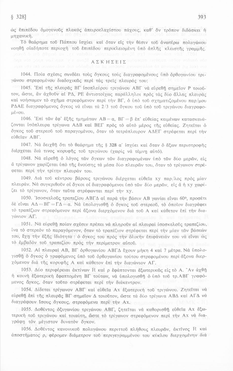 Σχολικό εγχειρίδιο Γεωμετρίας για τις Δ΄, Ε΄ και ΣΤ΄ Γυμνασίου που περιλαμβάνει αξιώματα, θεωρήματα και κατασκευές και είναι χωρισμένο σε γεωμετρία επιπέδου και γεωμετρία χώρου.