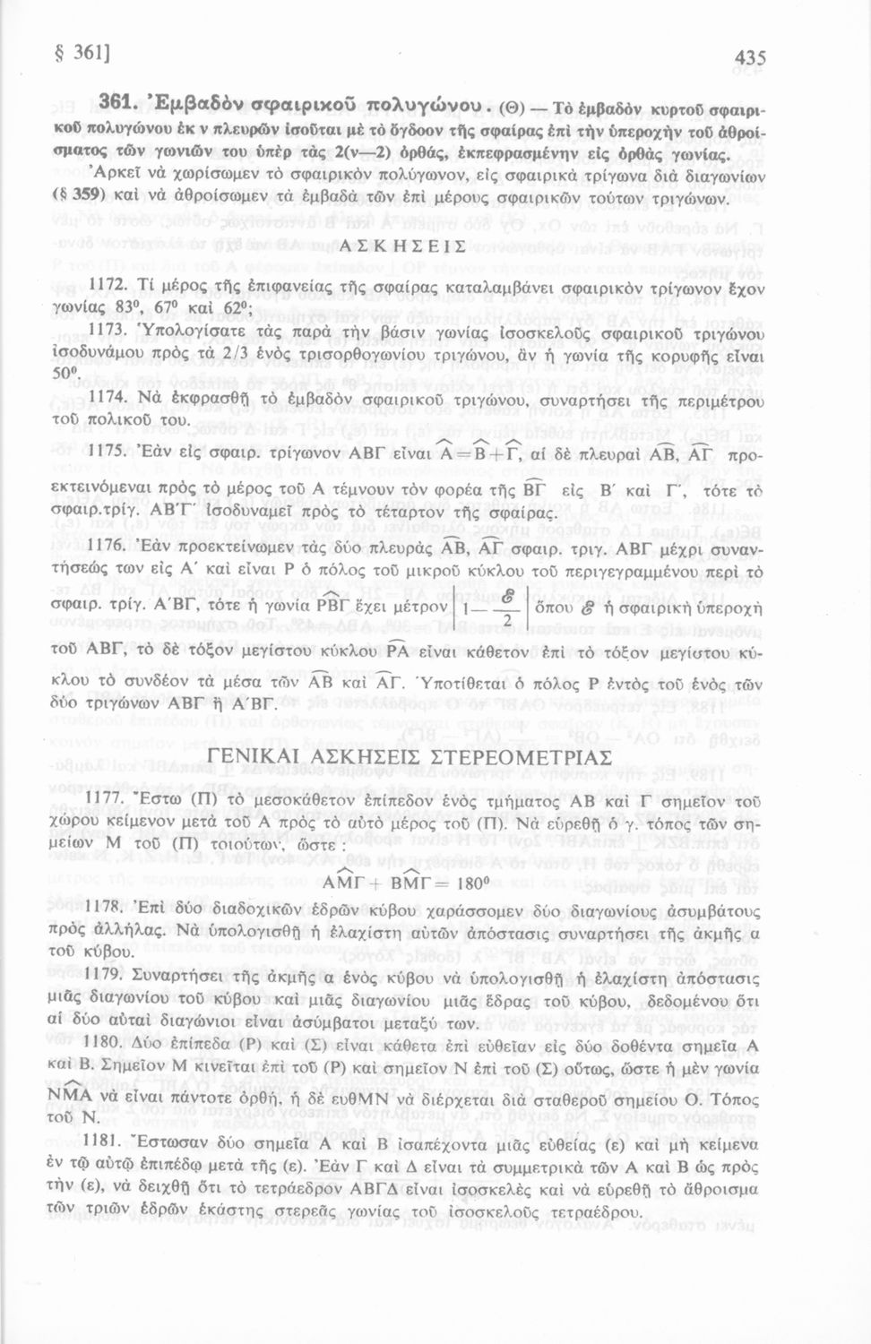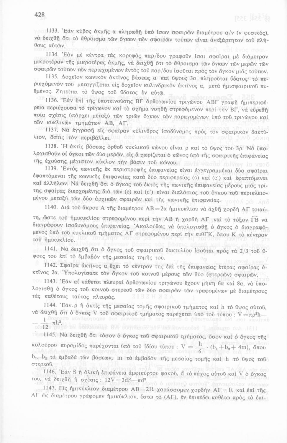 Σχολικό εγχειρίδιο Γεωμετρίας για τις Γ΄, Δ΄, Ε΄, ΣΤ΄ Γυμνασίου που περιλαμβάνει θεωρία και ασκήσεις και είναι χωρισμένο σε Επιπεδομετρία και Στερεομετρία.