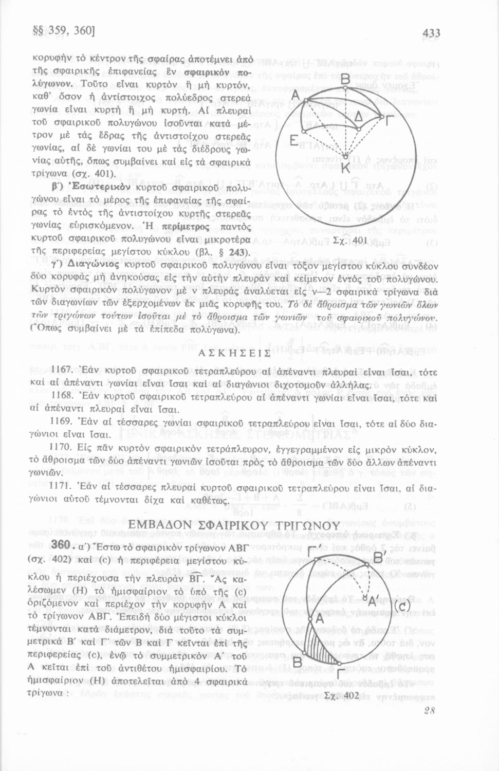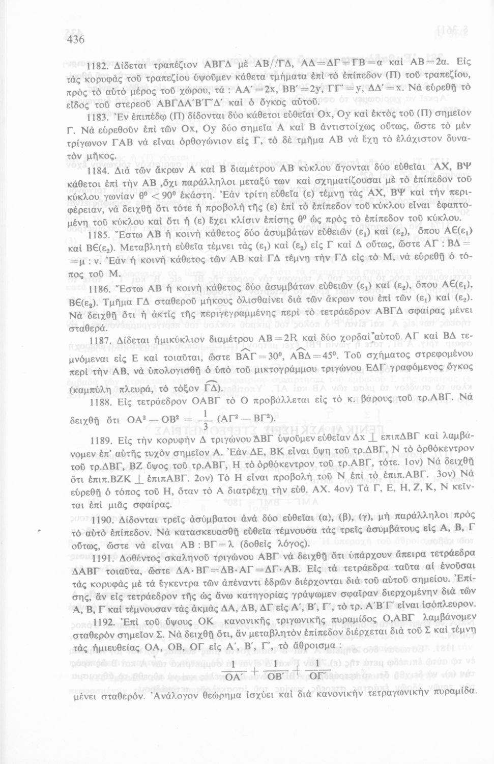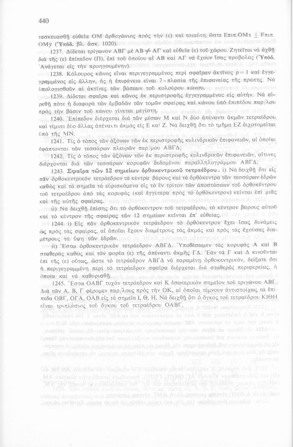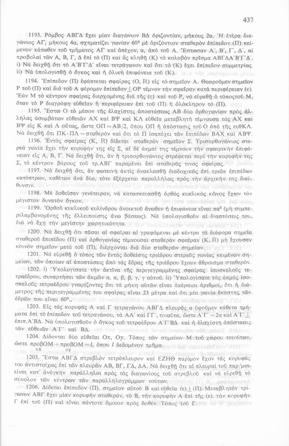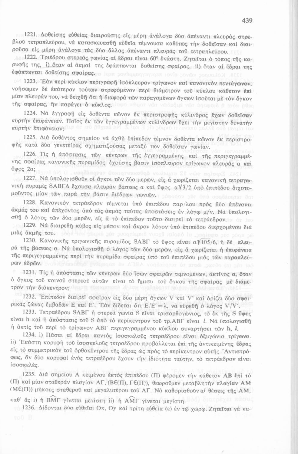 Σχολικό εγχειρίδιο Γεωμετρίας για τις Δ΄, Ε΄ και ΣΤ΄ Γυμνασίου που περιλαμβάνει αξιώματα, θεωρήματα και κατασκευές και είναι χωρισμένο σε γεωμετρία επιπέδου και γεωμετρία χώρου.