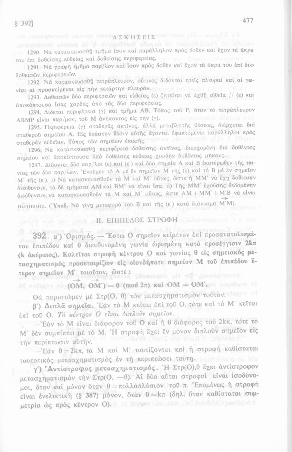 Ευκλείδειος γεωμετρία Δ΄, Ε΄, ΣΤ΄ Γυμνασίου θετικής κατευθύνσεως