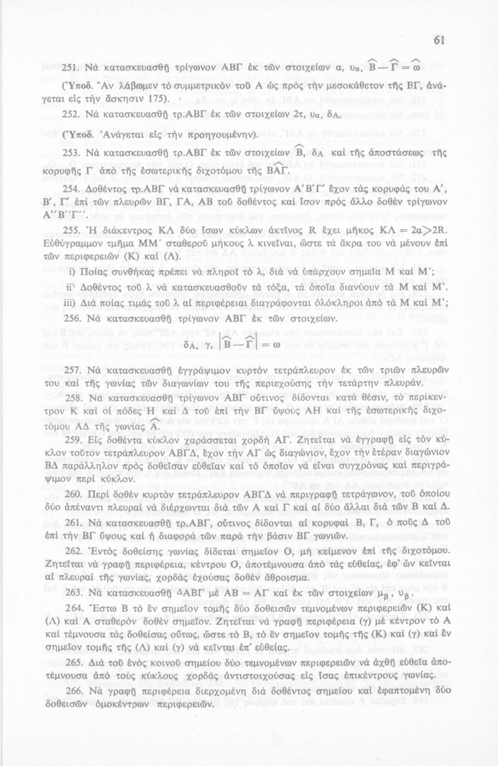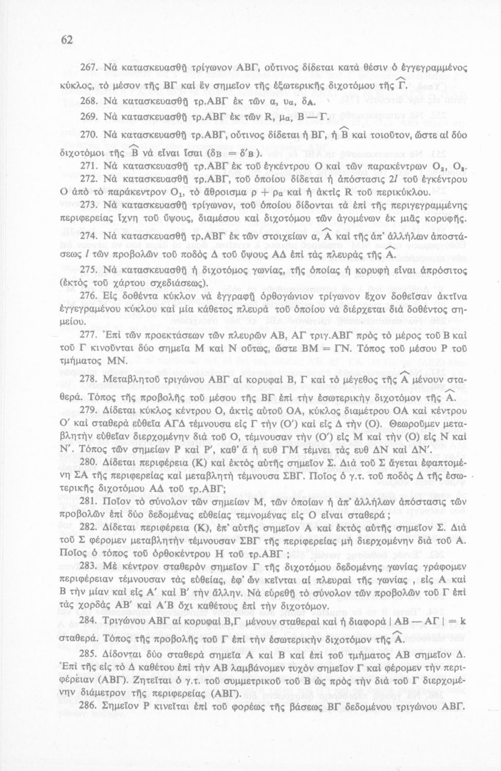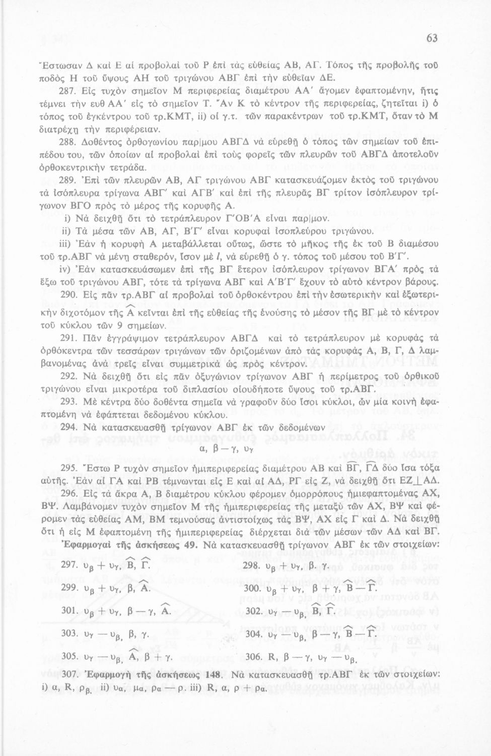 Σχολικό εγχειρίδιο Γεωμετρίας για τις Δ΄, Ε΄ και ΣΤ΄ Γυμνασίου που περιλαμβάνει αξιώματα, θεωρήματα και κατασκευές και είναι χωρισμένο σε γεωμετρία επιπέδου και γεωμετρία χώρου.