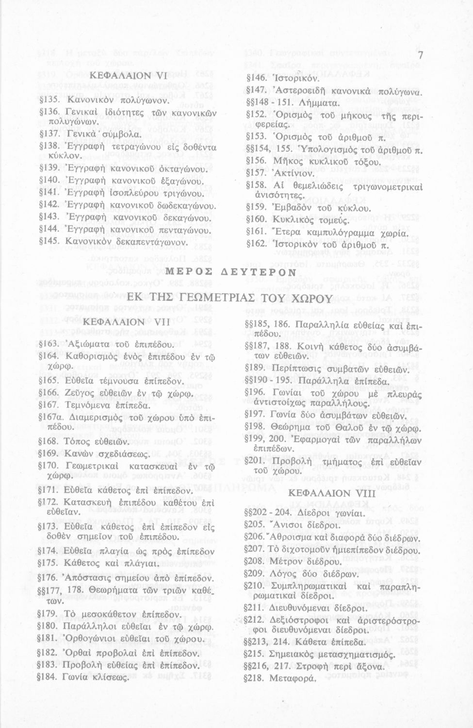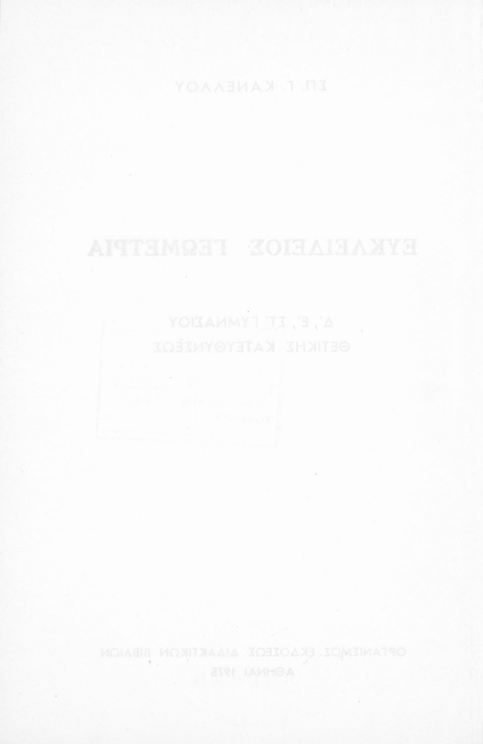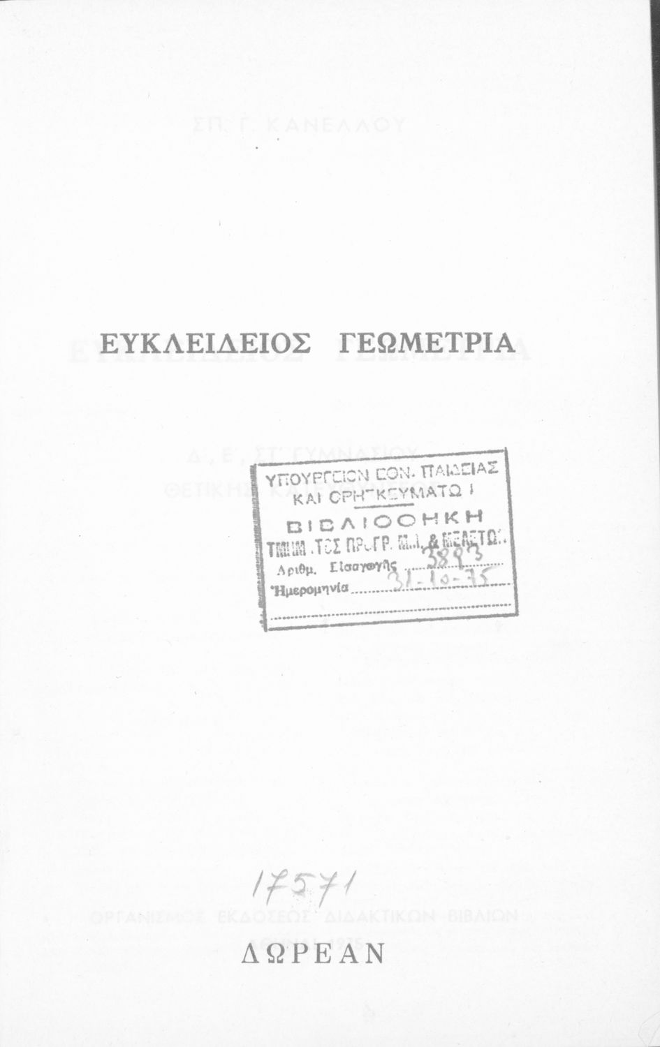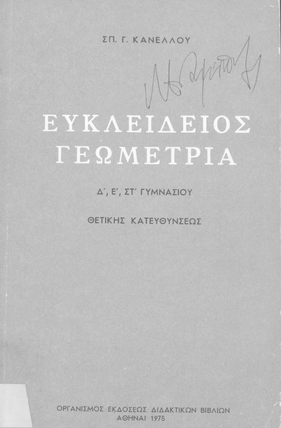 Σχολικό εγχειρίδιο Γεωμετρίας για τις Δ΄, Ε΄ και ΣΤ΄ Γυμνασίου που περιλαμβάνει αξιώματα, θεωρήματα και κατασκευές και είναι χωρισμένο σε γεωμετρία επιπέδου και γεωμετρία χώρου.