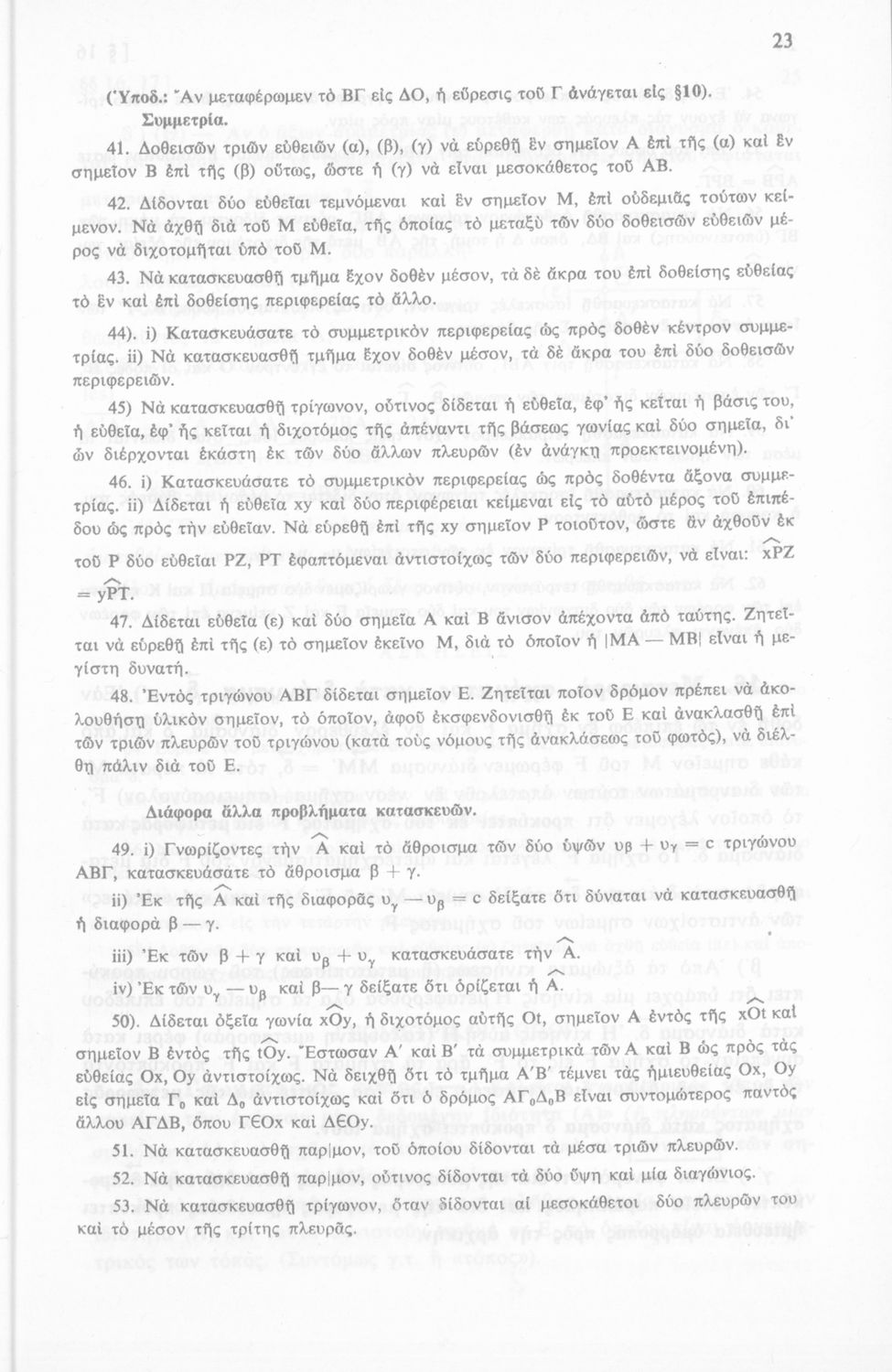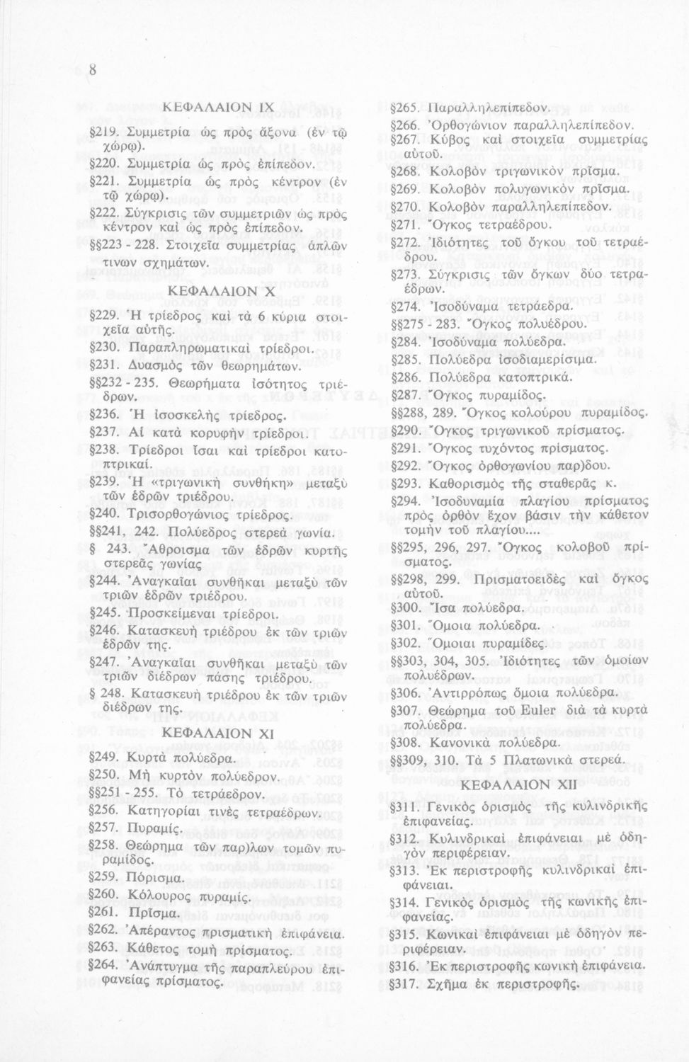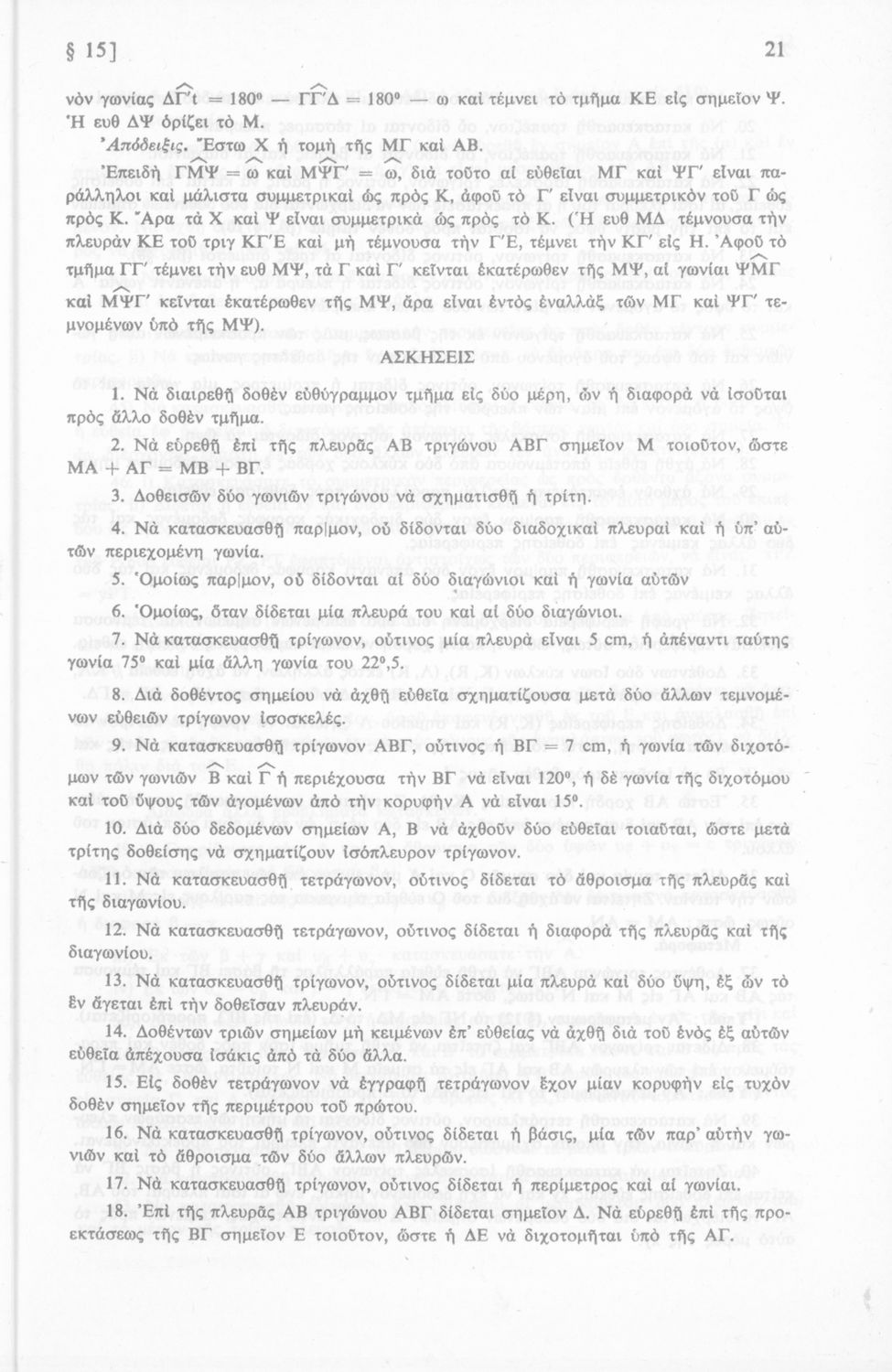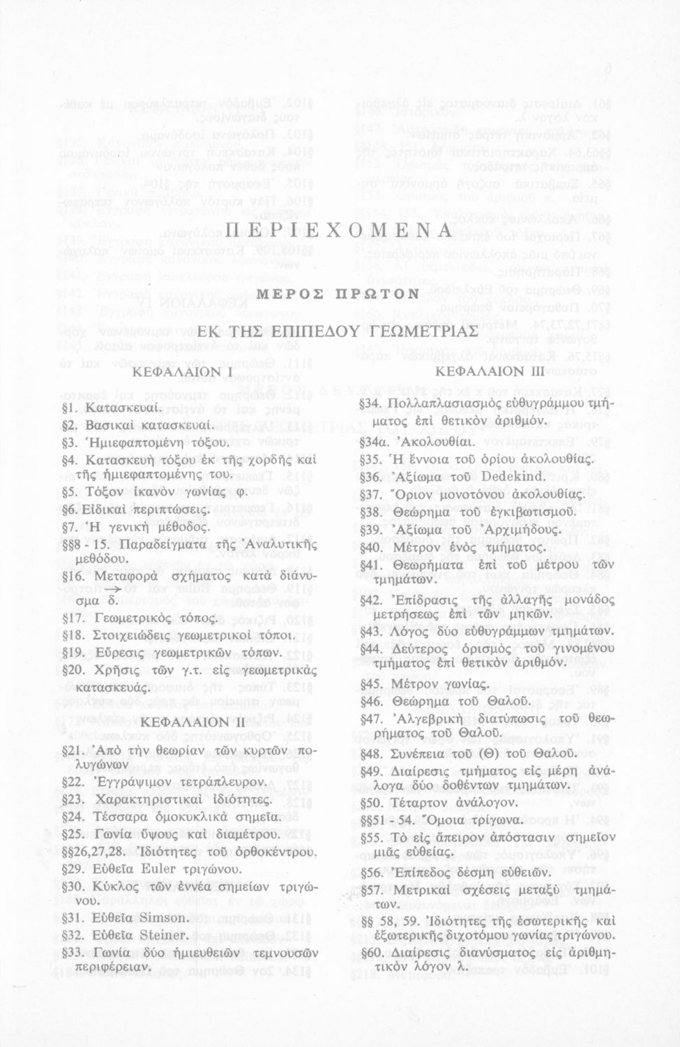 Σχολικό εγχειρίδιο Γεωμετρίας για τις Δ΄, Ε΄ και ΣΤ΄ Γυμνασίου που περιλαμβάνει αξιώματα, θεωρήματα και κατασκευές και είναι χωρισμένο σε γεωμετρία επιπέδου και γεωμετρία χώρου.