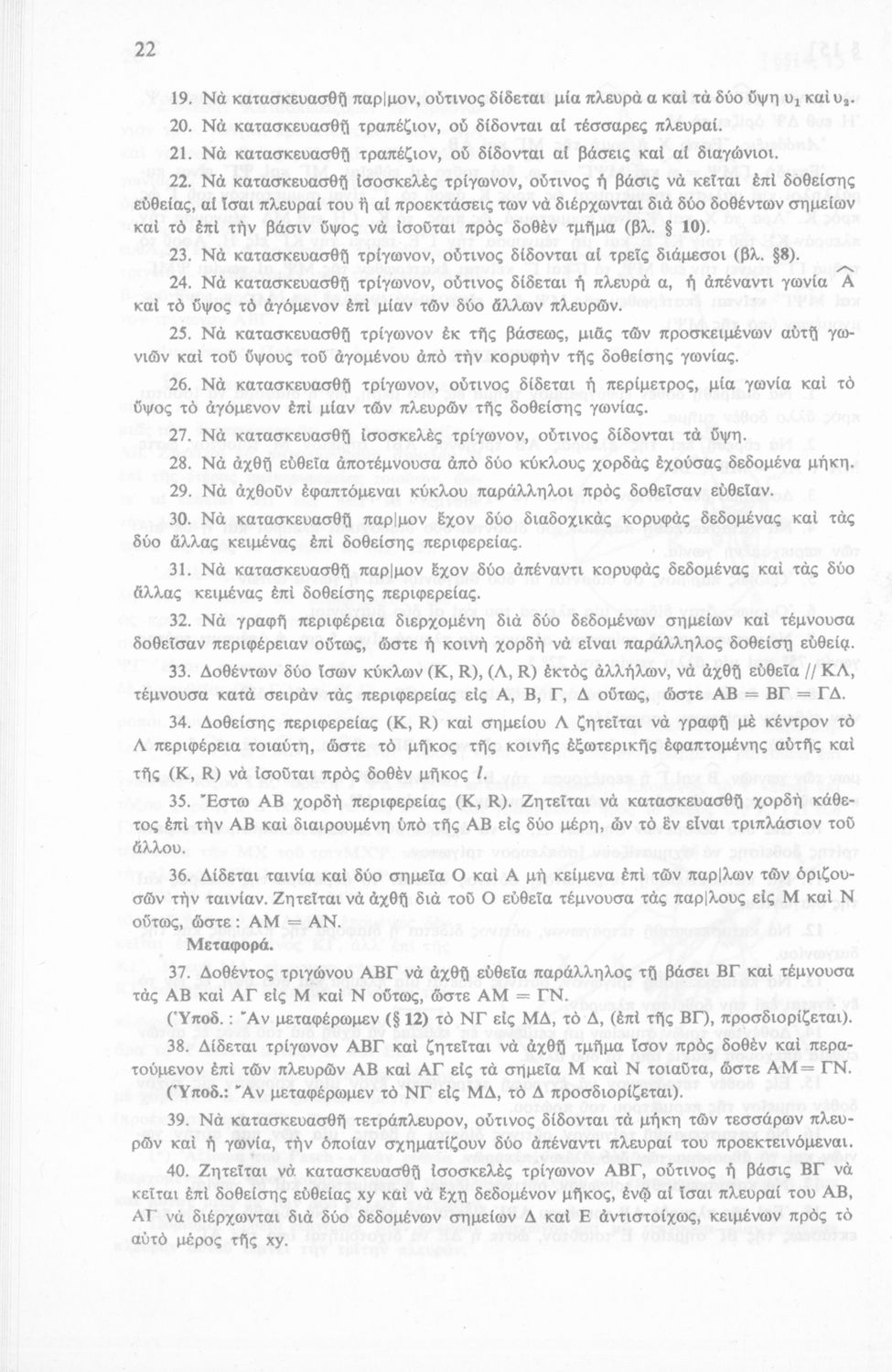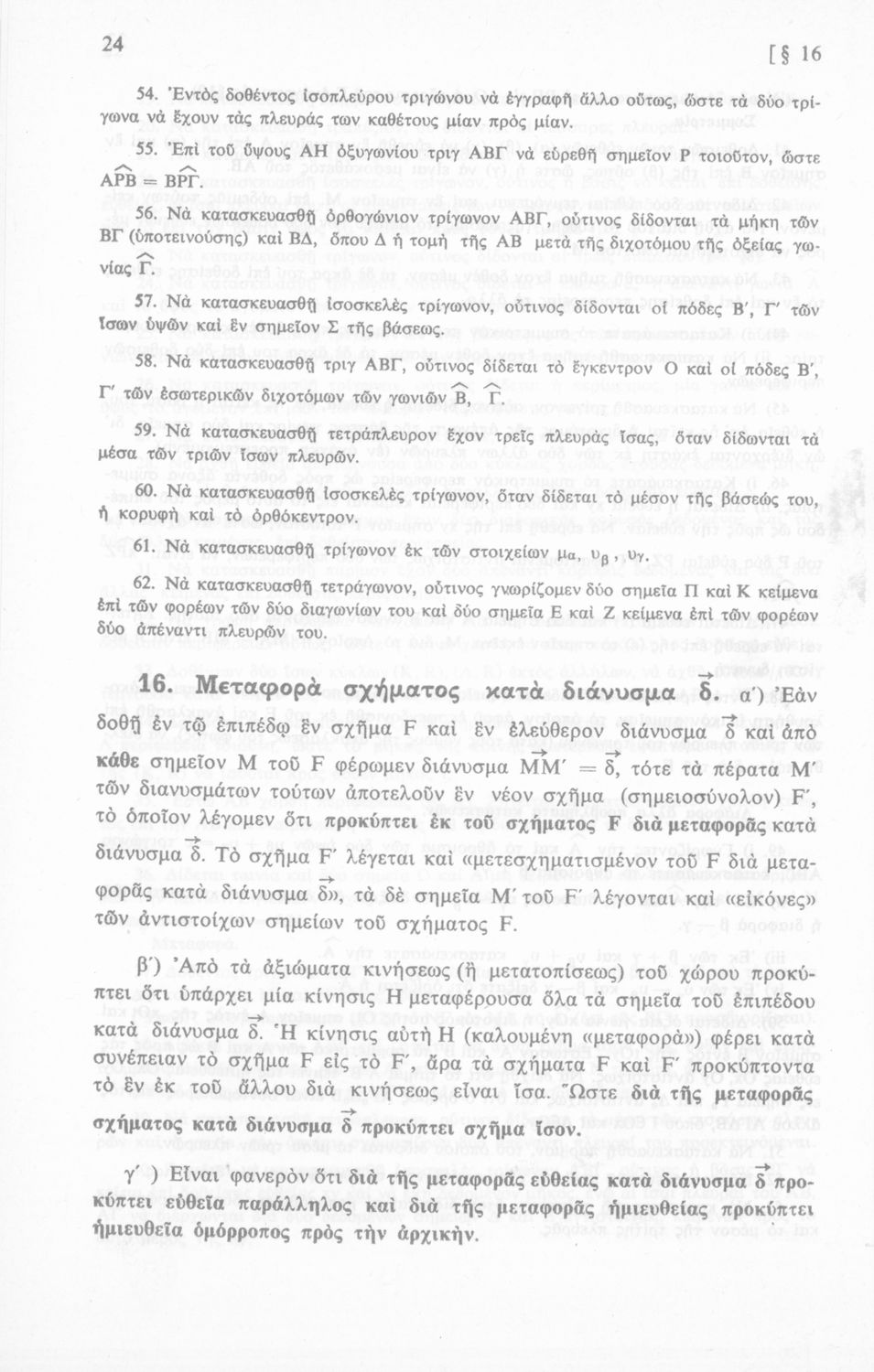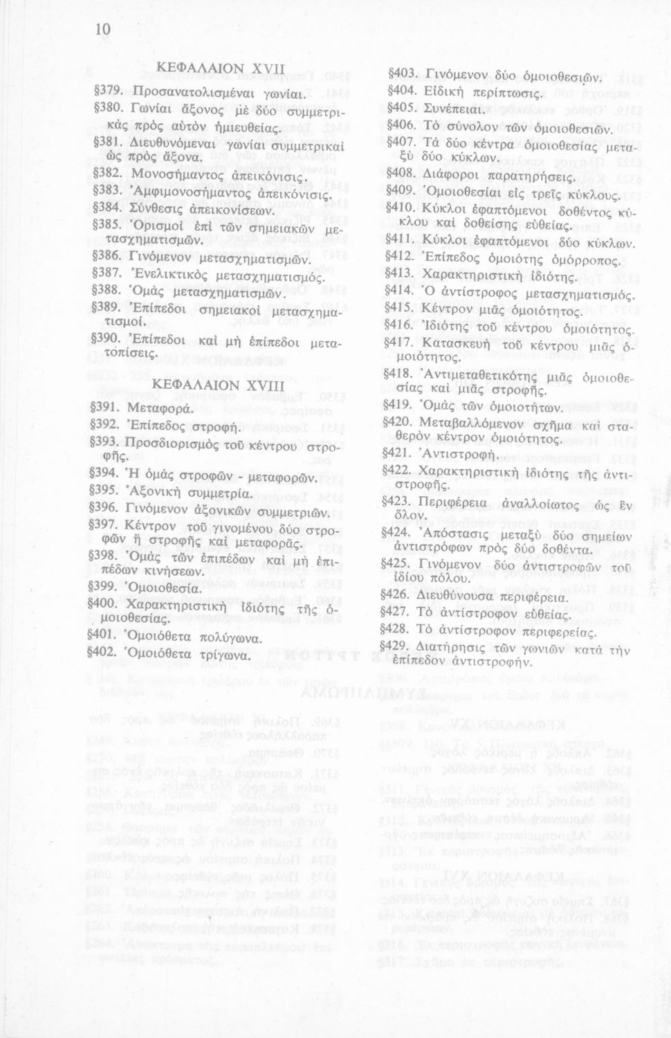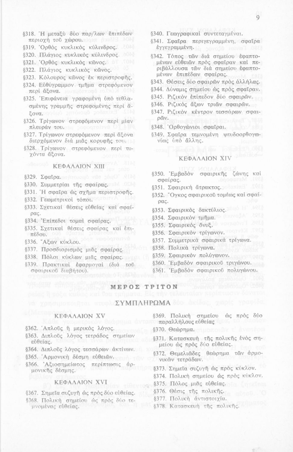 Σχολικό εγχειρίδιο Γεωμετρίας για τις Δ΄, Ε΄ και ΣΤ΄ Γυμνασίου που περιλαμβάνει αξιώματα, θεωρήματα και κατασκευές και είναι χωρισμένο σε γεωμετρία επιπέδου και γεωμετρία χώρου.