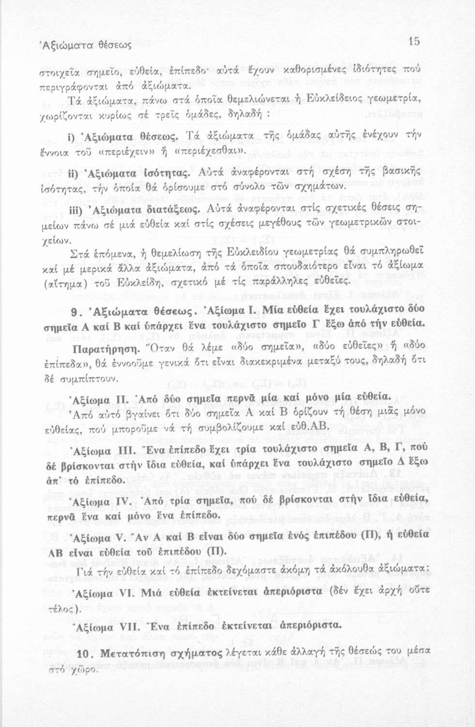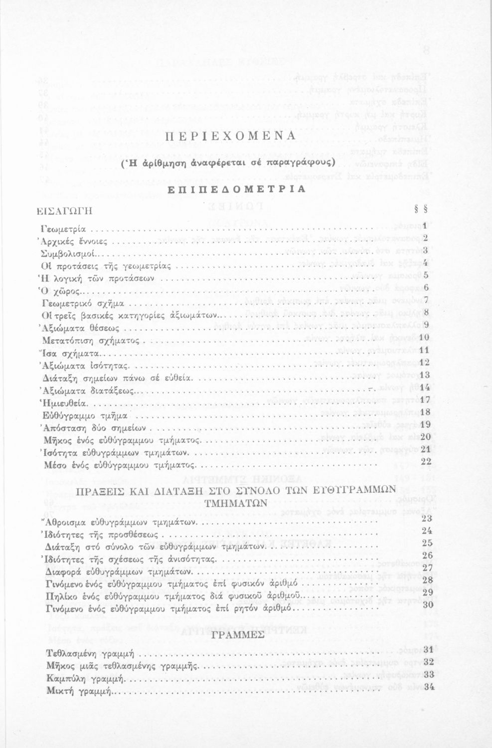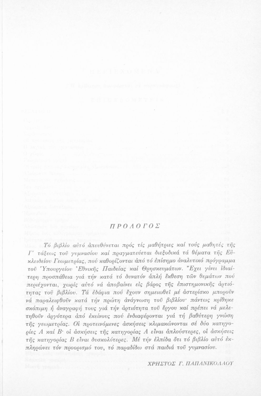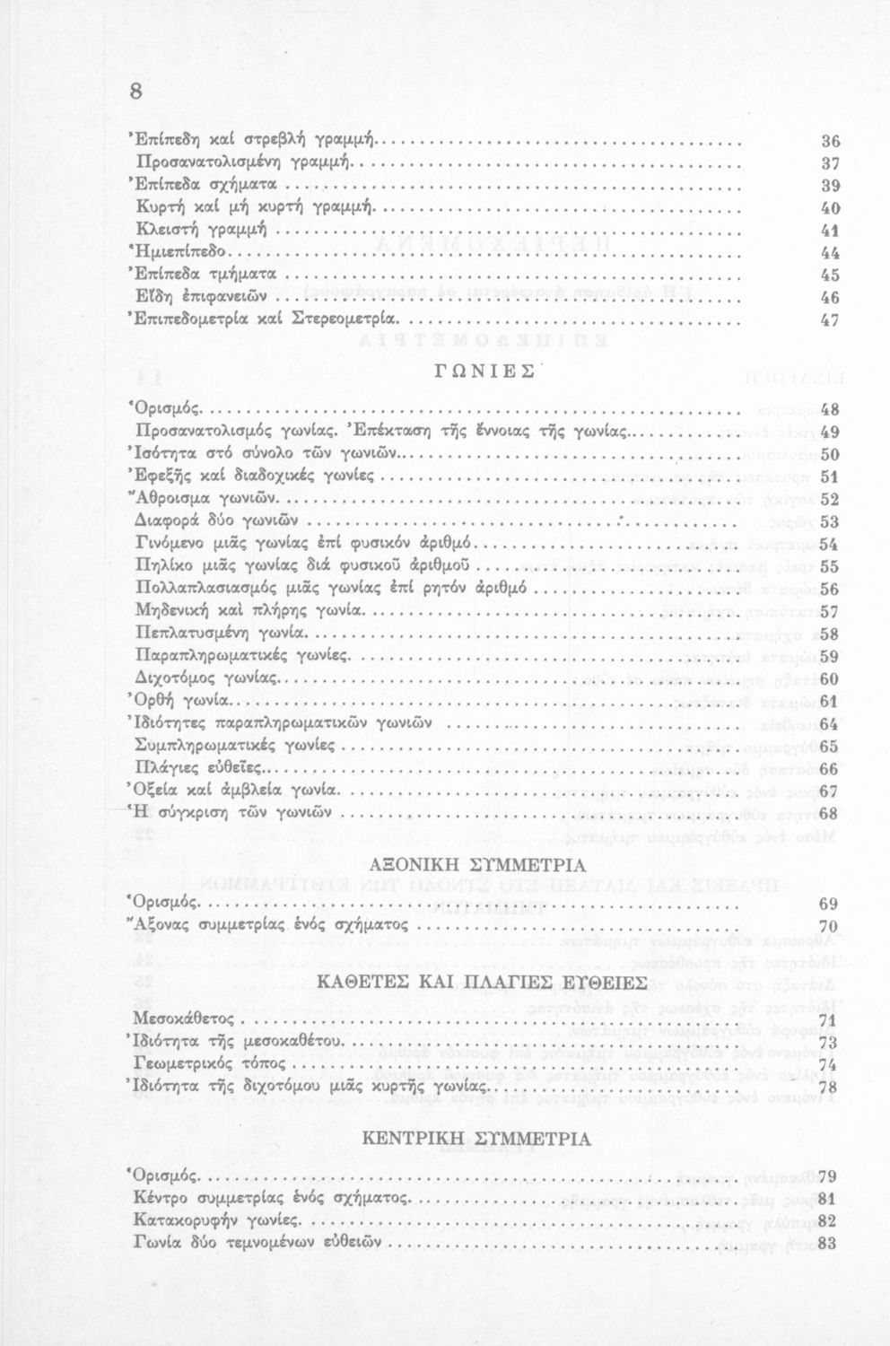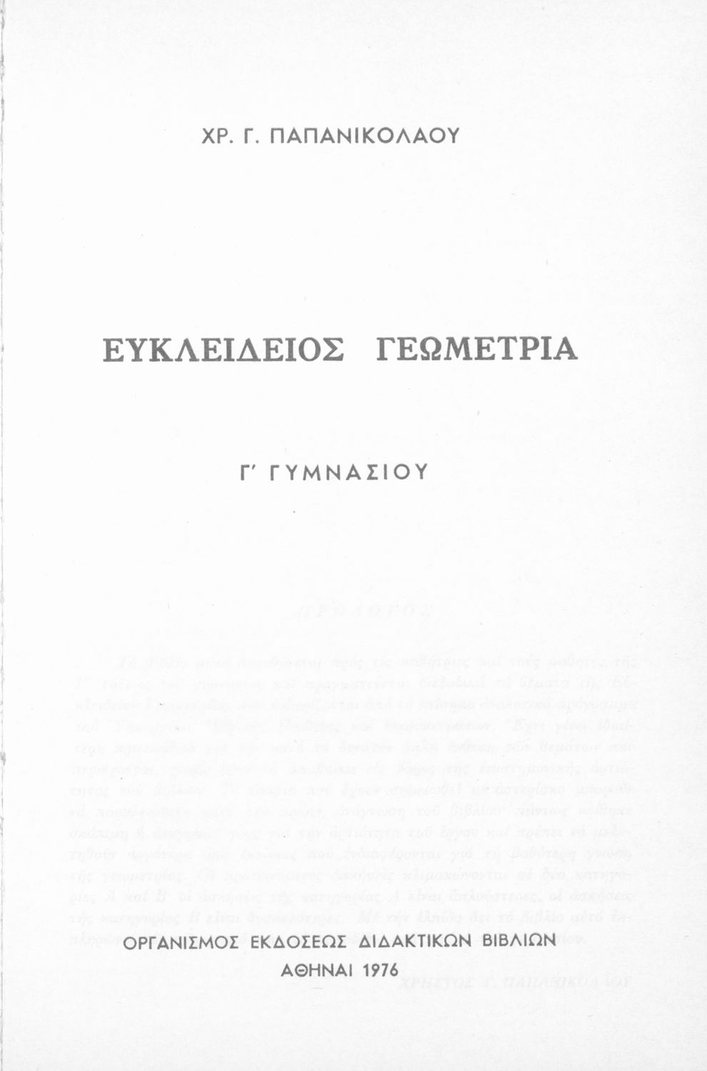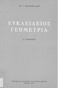 Σχολικό εγχειρίδιο Γεωμετρίας για τις Δ΄, Ε΄ και ΣΤ΄ Γυμνασίου που περιλαμβάνει αξιώματα, θεωρήματα και κατασκευές και είναι χωρισμένο σε γεωμετρία επιπέδου και γεωμετρία χώρου.