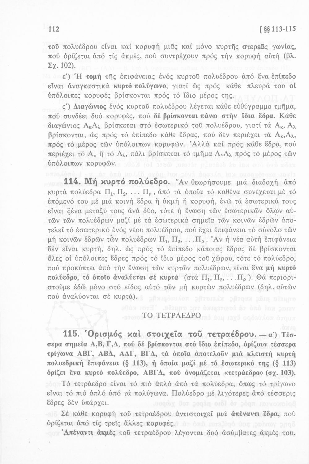 Σχολικό εγχειρίδιο Γεωμετρίας για τις Δ΄, Ε΄ και ΣΤ΄ Γυμνασίου που περιλαμβάνει αξιώματα, θεωρήματα και κατασκευές και είναι χωρισμένο σε γεωμετρία επιπέδου και γεωμετρία χώρου.