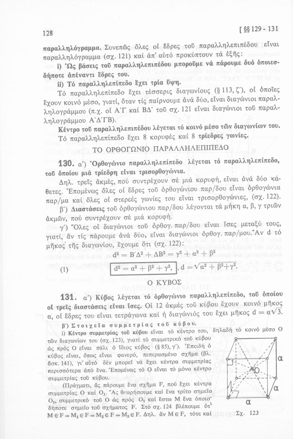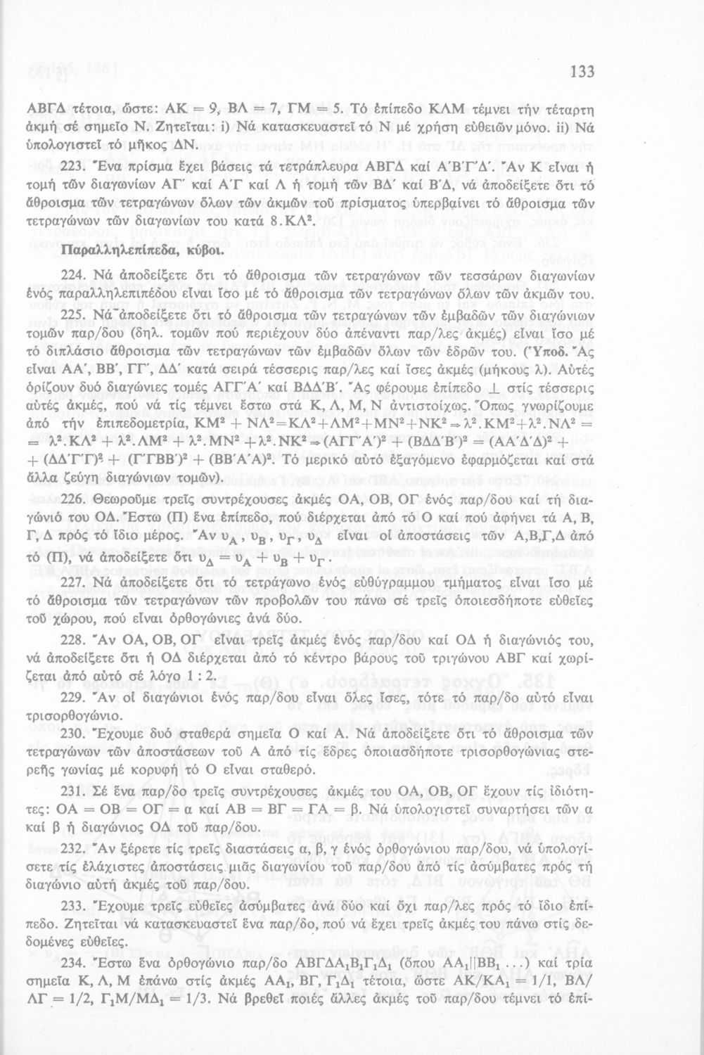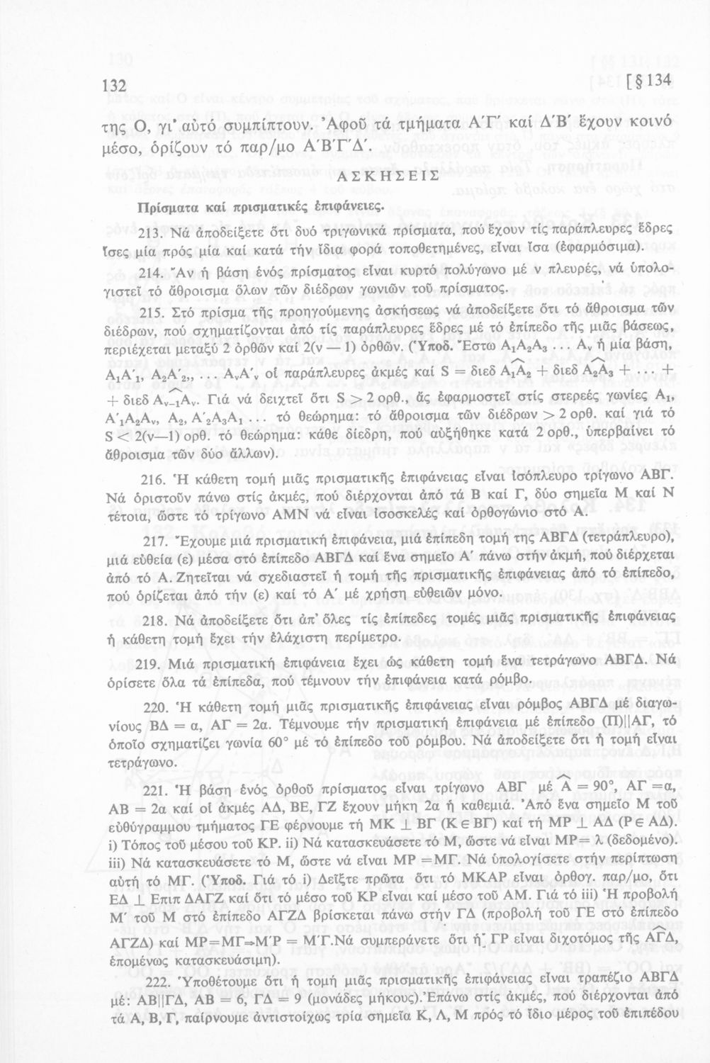 Σχολικό εγχειρίδιο Γεωμετρίας για τις Β΄ και Γ΄ Λυκείου που περιλαμβάνει αξιώματα, θεωρήματα και κατασκευές και είναι χωρισμένο σε Γεωμετρία Επιπέδου και Γεωμετρία Χώρου. Το εγχειρίδιο μεταγλωττίστηκε από τον συγγραφέα σε συνεργασία με τον Μενέλαο Καραμεσίνη.