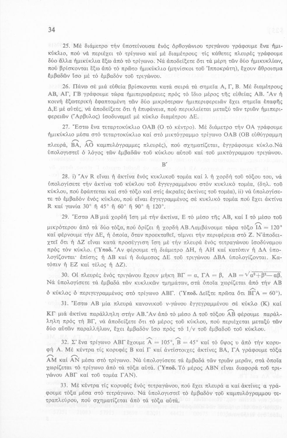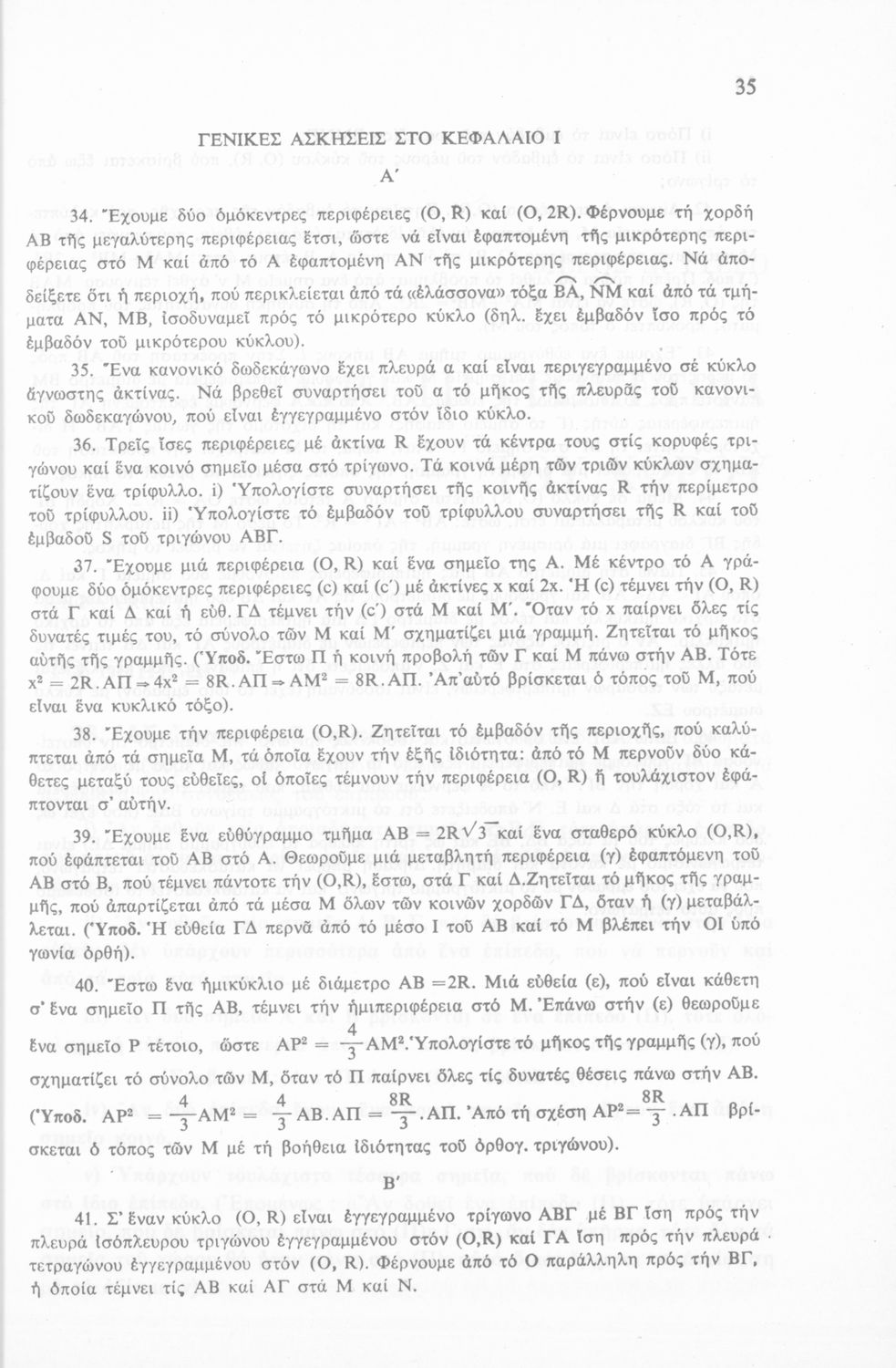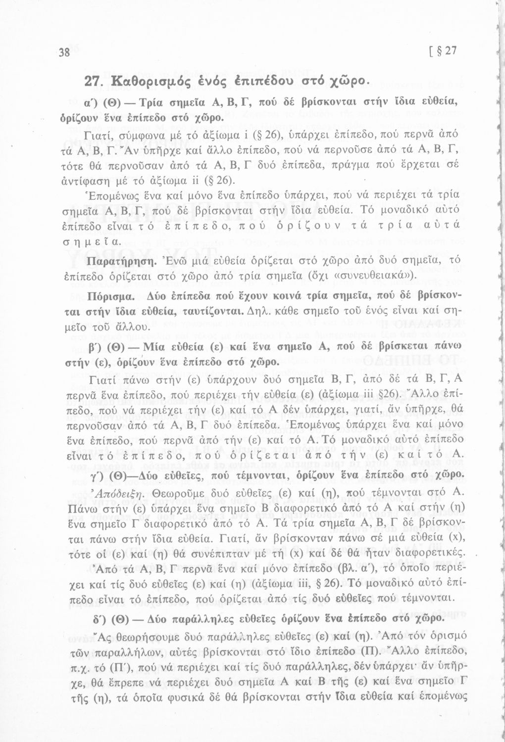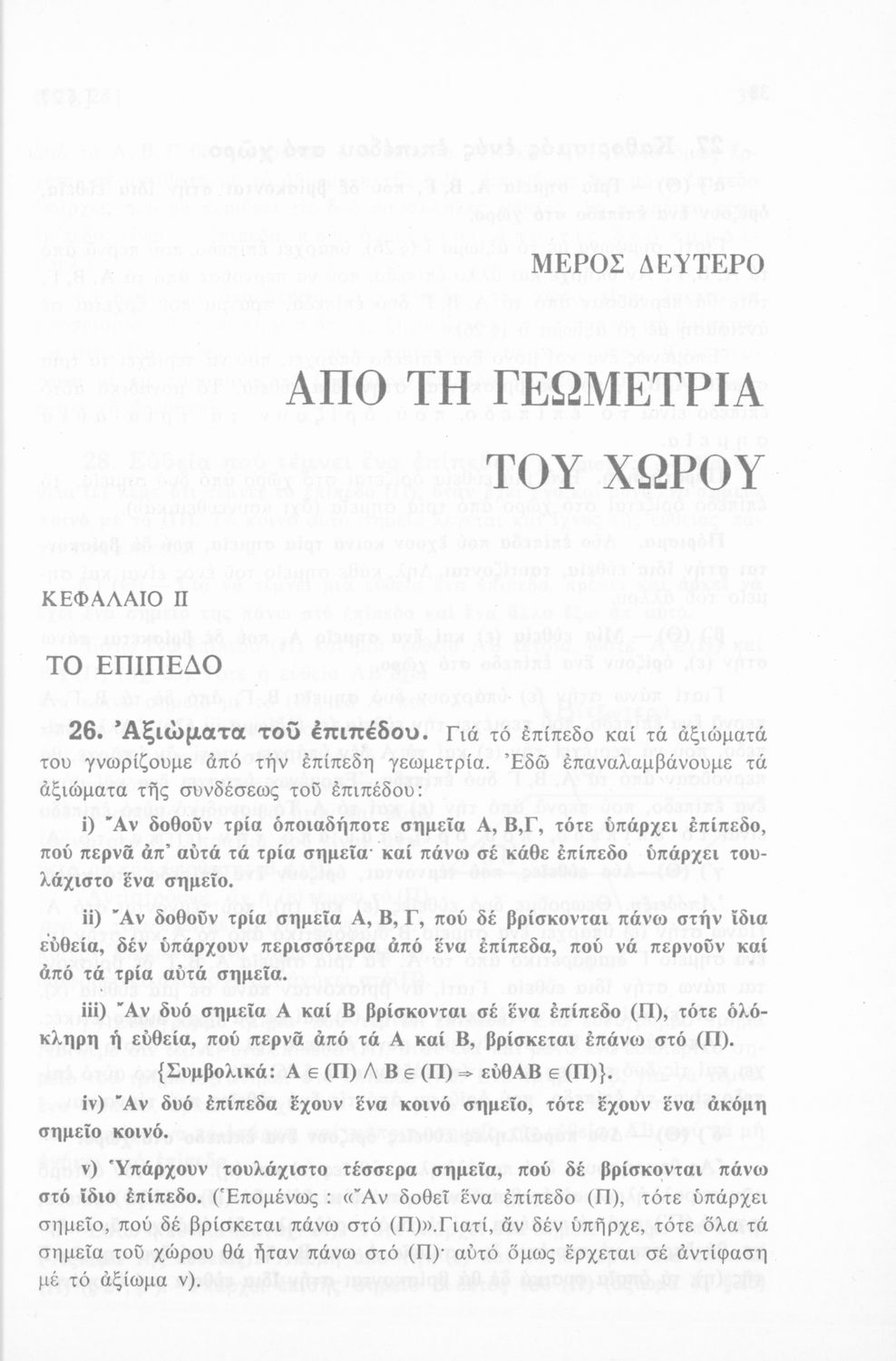 Σχολικό εγχειρίδιο Γεωμετρίας για τις Β΄ και Γ΄ Λυκείου που περιλαμβάνει αξιώματα, θεωρήματα και κατασκευές και είναι χωρισμένο σε Γεωμετρία Επιπέδου και Γεωμετρία Χώρου. Το εγχειρίδιο μεταγλωττίστηκε από τον συγγραφέα σε συνεργασία με τον Μενέλαο Καραμεσίνη.
