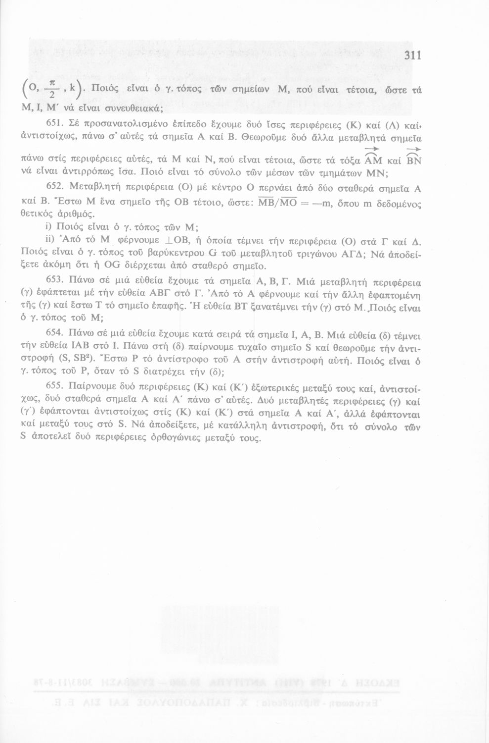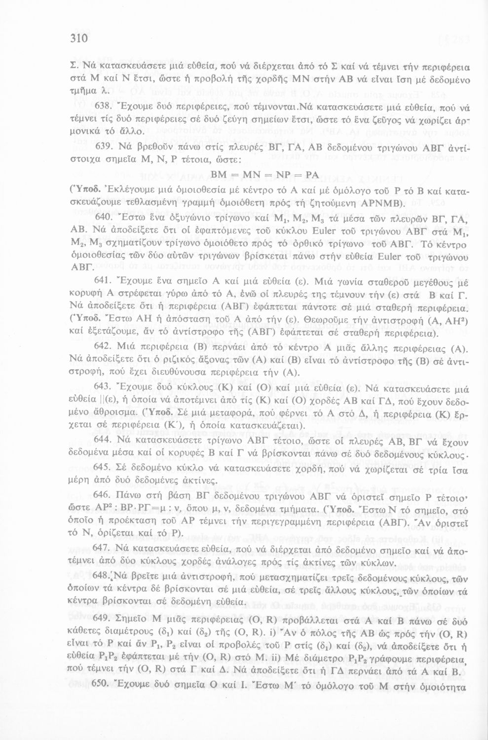 Σχολικό εγχειρίδιο Γεωμετρίας για τις Β΄ και Γ΄ Λυκείου που περιλαμβάνει αξιώματα, θεωρήματα και κατασκευές και είναι χωρισμένο σε Γεωμετρία Επιπέδου και Γεωμετρία Χώρου. Το εγχειρίδιο μεταγλωττίστηκε από τον συγγραφέα σε συνεργασία με τον Μενέλαο Καραμεσίνη.