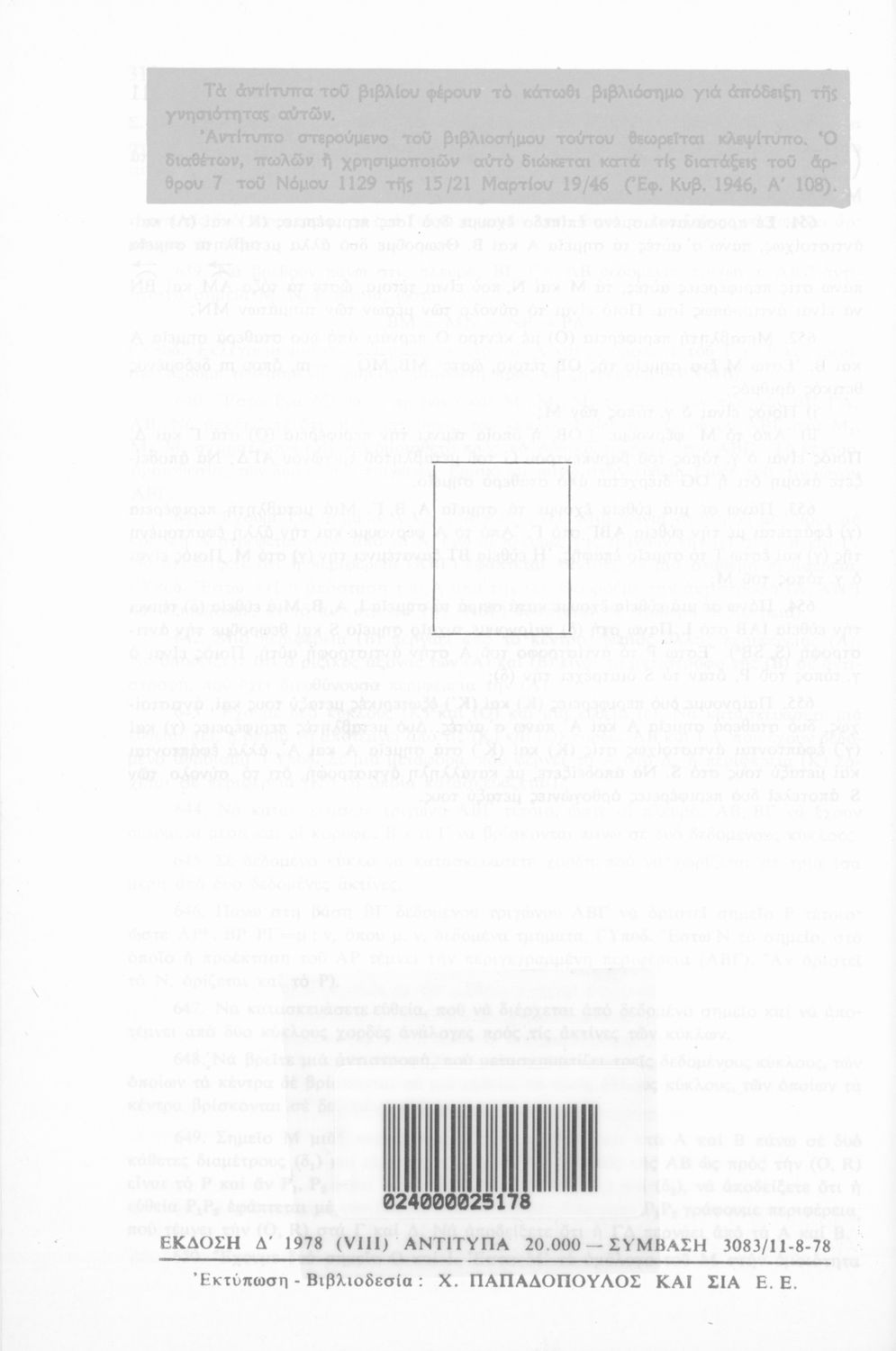 LDR 01430 2200217 4500 035 ## _a01-17573 040 ## _aΙνστιτούτο Εκπαιδευτικής Πολιτικής 041 ## _ael 100 ## _aΣπ. Γ. Κανέλλος 110 ## _a17573 245 0# _aΕυκλείδειος γεωμετρία Β΄, Γ΄ Λυκείου θετικής κατευθύνσεως 250 ## _a4η Έκδοση 260 ## _aΑθήνα _bΟργανισμός Εκδόσεως Διδακτικών Βιβλίων _c1978 300 ## _a311 _bΣκίτσα (ασπρόμαυρα) _c23 520 ## _aΣχολικό εγχειρίδιο Γεωμετρίας για τις Β΄ και Γ΄ Λυκείου που περιλαμβάνει αξιώματα, θεωρήματα και κατασκευές και είναι χωρισμένο σε Γεωμετρία Επιπέδου και Γεωμετρία Χώρου. Το εγχειρίδιο μεταγλωττίστηκε από τον συγγραφέα σε συνεργασία με τον Μενέλαο Καραμεσίνη. 521 ## _aΒ' Λυκείου / Γ' Λυκείου 522 ## _aΕλλάδα 546 ## _aΔημοτική 563 ## _aΜαλακό Εξώφυλλο 583 ## _a3083/11-8-1978 _c1978 650 #4 _aΓεωμετρικοί τόποι _aΔίεδρες γωνίες _aΕπίπεδη στροφή _aΘεώρημα του Ευκλείδη _aΣφαιρικό τρίγωνο
