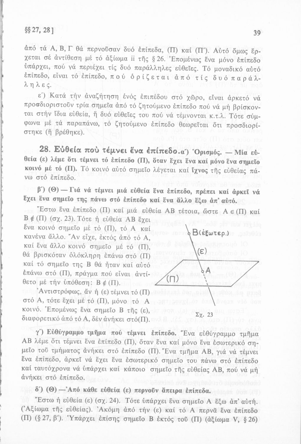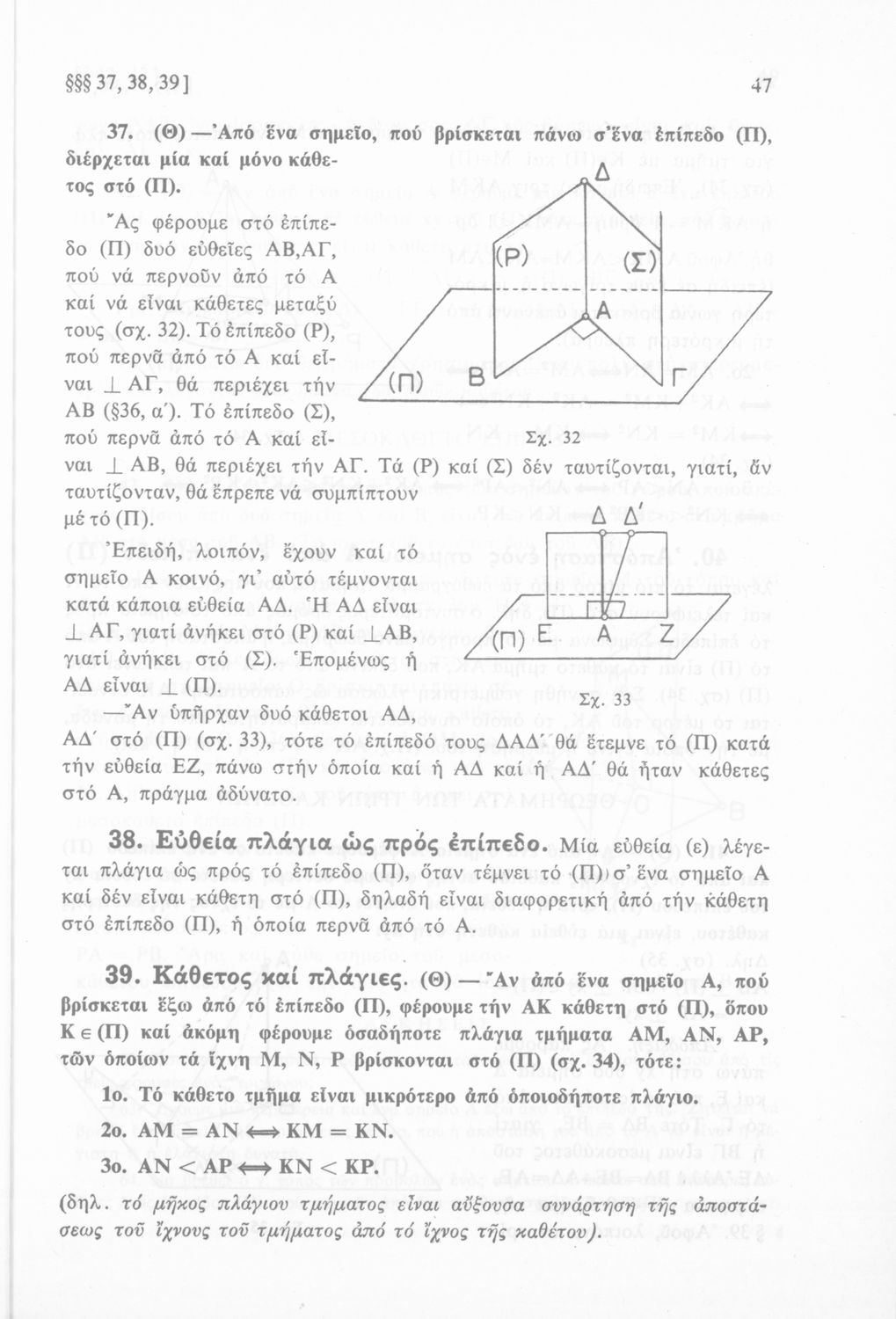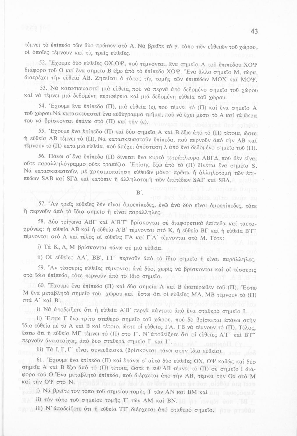 Σχολικό εγχειρίδιο Γεωμετρίας για τις Δ΄, Ε΄ και ΣΤ΄ Γυμνασίου που περιλαμβάνει αξιώματα, θεωρήματα και κατασκευές και είναι χωρισμένο σε γεωμετρία επιπέδου και γεωμετρία χώρου.