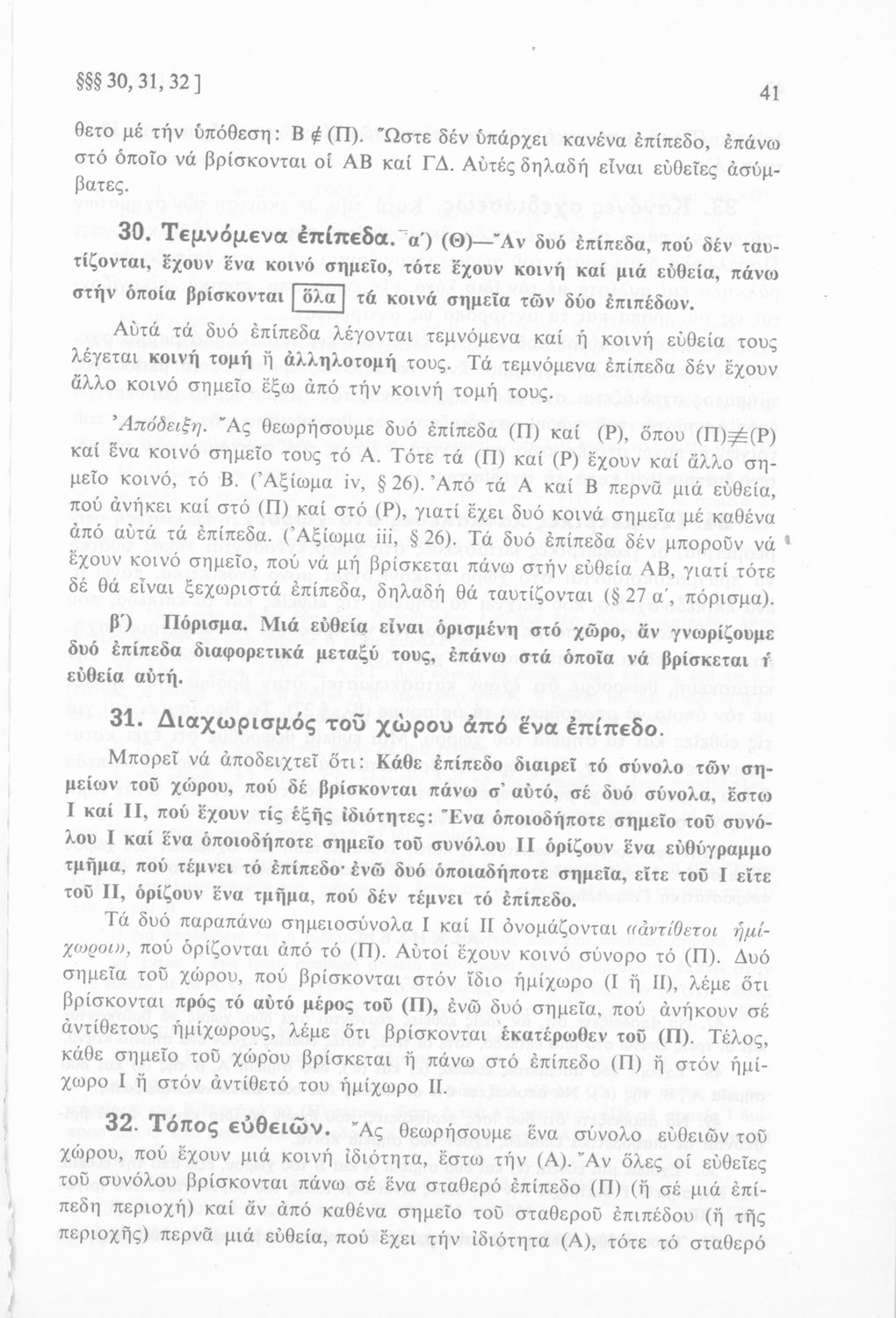 Σχολικό εγχειρίδιο Γεωμετρίας για τις Β΄ και Γ΄ Λυκείου που περιλαμβάνει αξιώματα, θεωρήματα και κατασκευές και είναι χωρισμένο σε Γεωμετρία Επιπέδου και Γεωμετρία Χώρου. Το εγχειρίδιο μεταγλωττίστηκε από τον συγγραφέα σε συνεργασία με τον Μενέλαο Καραμεσίνη.