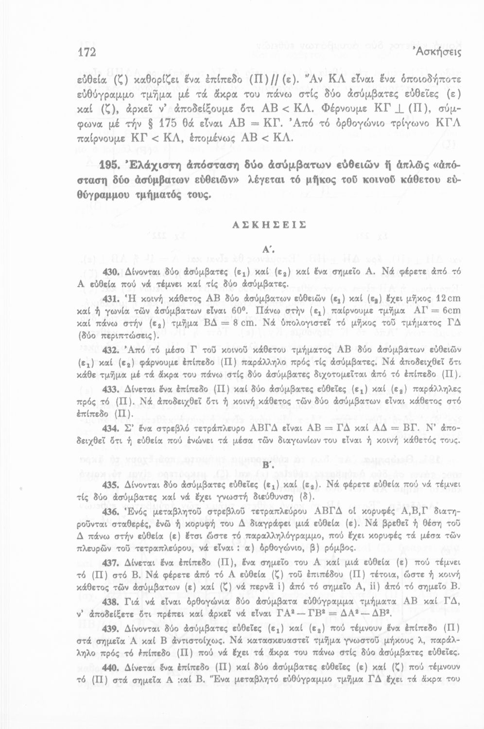 Σχολικό εγχειρίδιο Γεωμετρίας για τις Α΄, Β΄ και Γ΄ Λυκείου που περιλαμβάνει θεωρία και ασκήσεις και είναι χωρισμένο σε Επιπεδομετρία και Στερεομετρία.