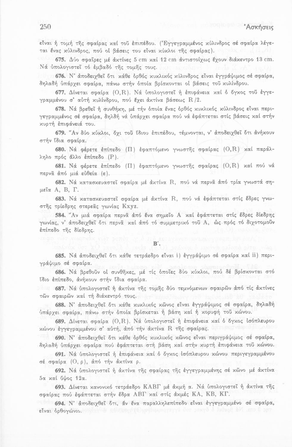 Σχολικό εγχειρίδιο Γεωμετρίας για τις Α΄, Β΄ και Γ΄ Λυκείου που περιλαμβάνει θεωρία και ασκήσεις και είναι χωρισμένο σε Επιπεδομετρία και Στερεομετρία.