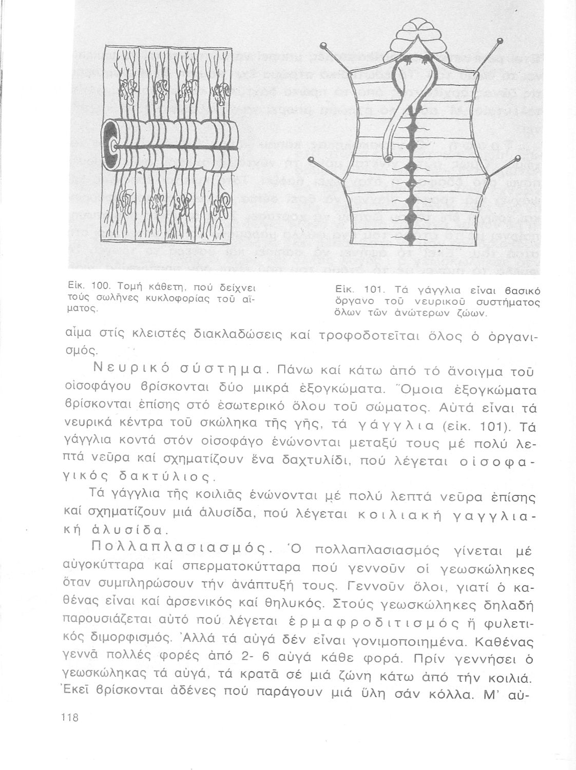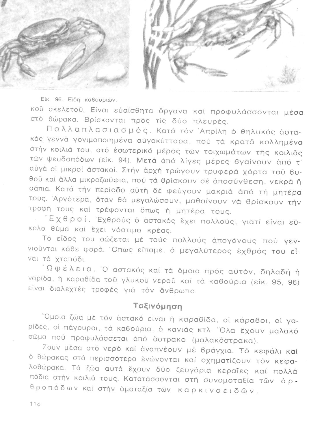 Σχολικό εγχειρίδιο Ζωολογίας/Φυτολογίας για τα Γυμνάσια και Αστικά Σχολεία που παρουσιάζει διάφορα ζώα και φυτά ανάλογα με τη συνομοταξία στην οποία ανήκουν.
