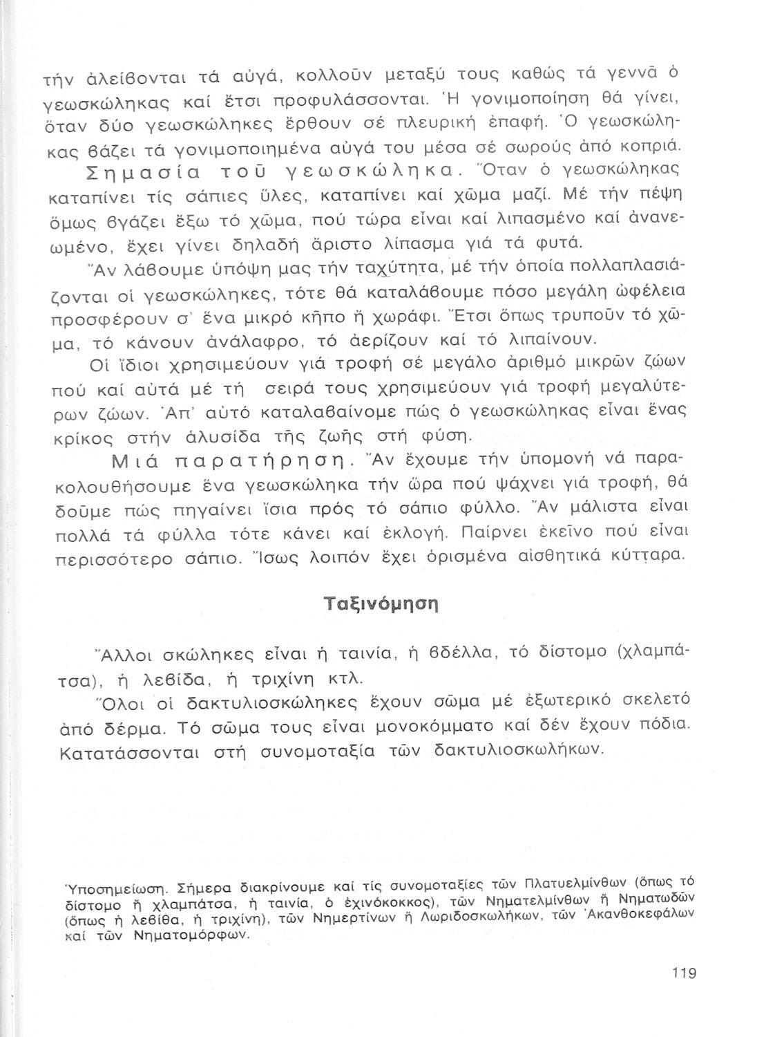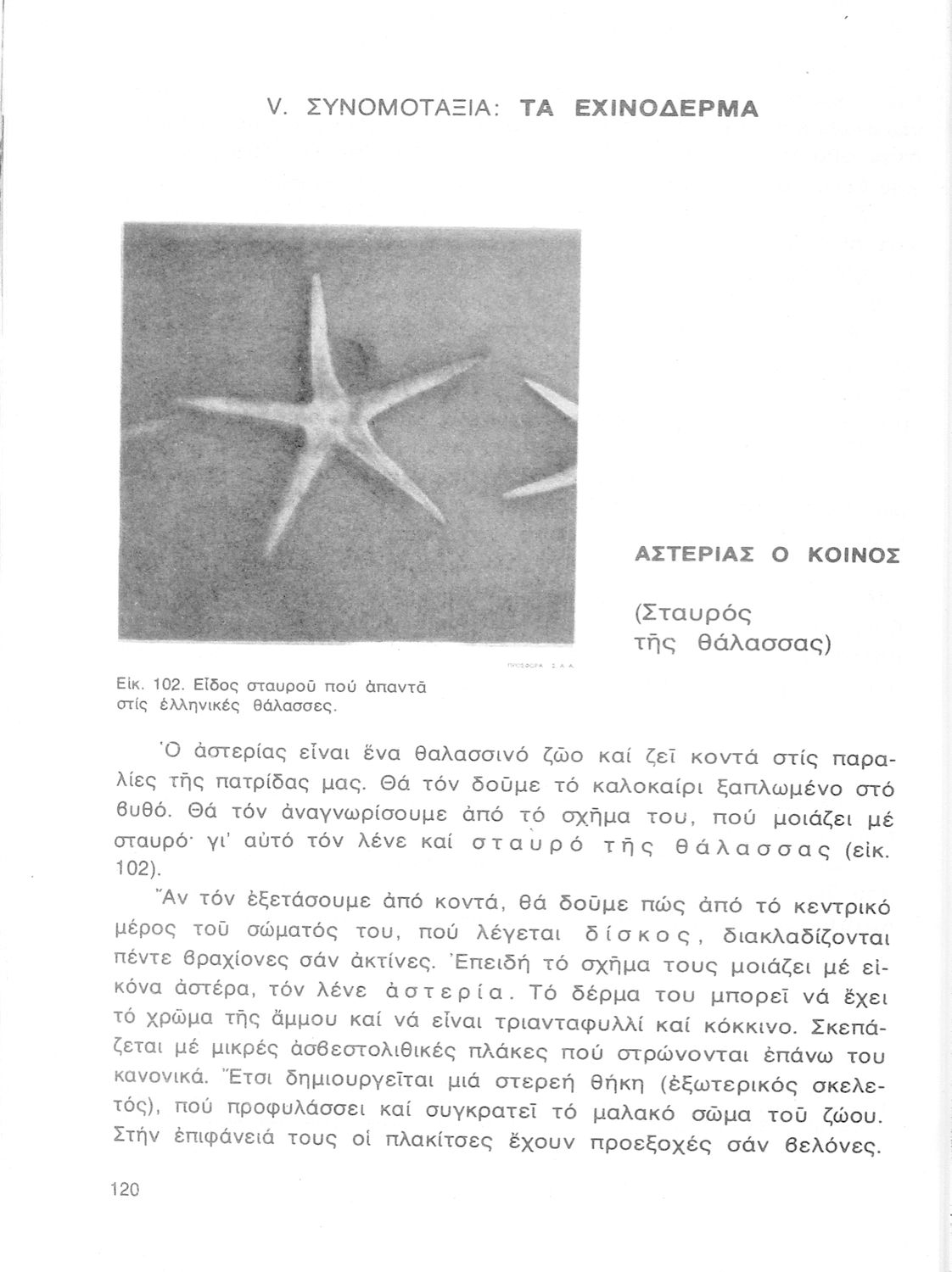 Σχολικό εγχειρίδιο Ζωολογίας/Φυτολογίας για τα Γυμνάσια και Αστικά Σχολεία που παρουσιάζει διάφορα ζώα και φυτά ανάλογα με τη συνομοταξία στην οποία ανήκουν.
