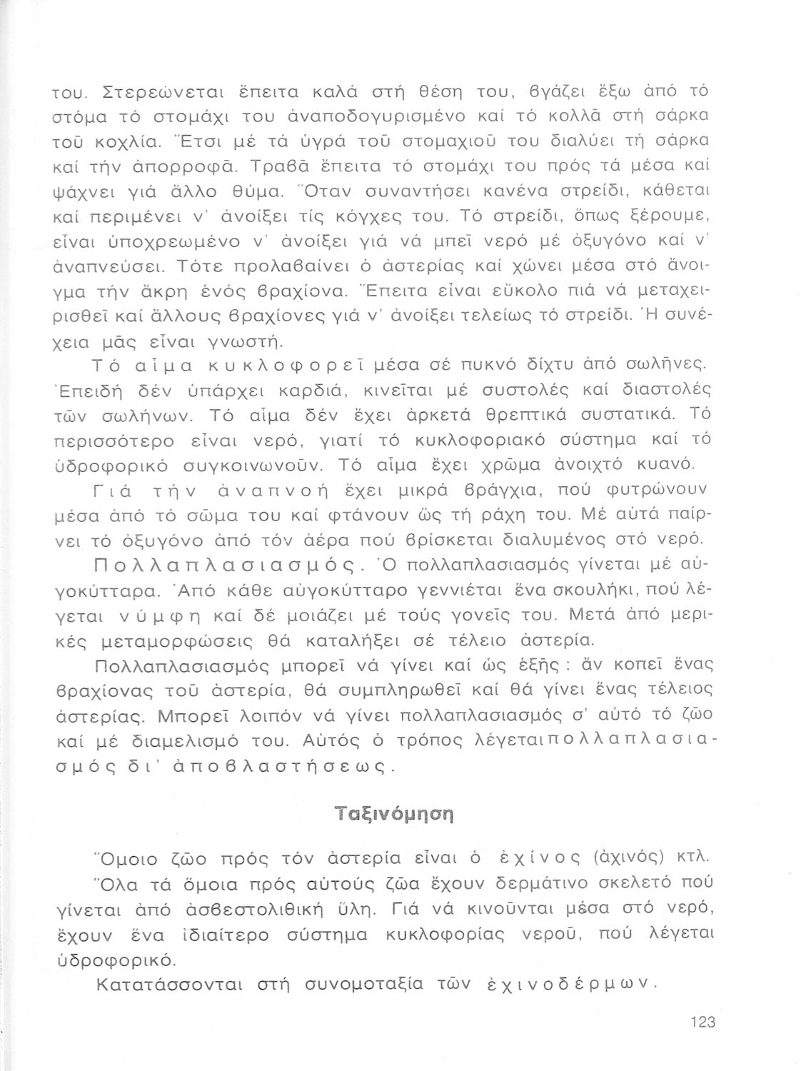 Παρουσίαση περιεχομένου: Σχολικό εγχειρίδιο Ζωολογίας και Φυτολογίας για την Α΄ Γυμνασίου που παρουσιάζει ζώα και φυτά με βάση τη συνομοταξία στην οποία ανήκουν.