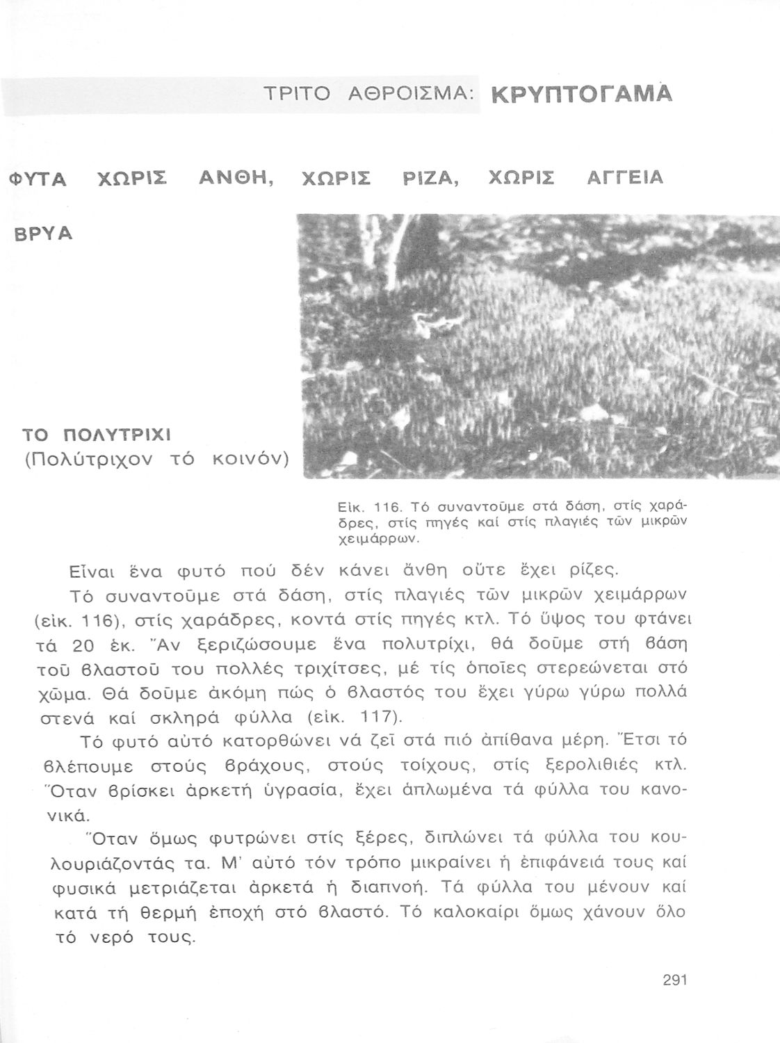 Σχολικό εγχειρίδιο Φυτολογίας για τη Β΄ Γυμνασίου και Α΄ τάξη Αστικών σχολείων που περιέχει πληροφορίες για τα φυτά της Ελλάδας καθώς και στοιχεία Ζωολογίας για ζώα διαφόρων τόπων.