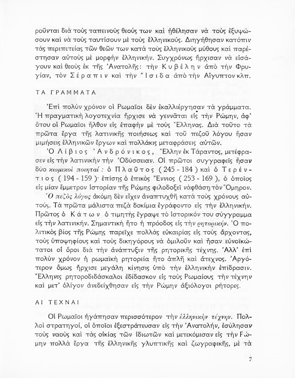 Επίδρασις του ελληνικού πολιτισμού εις τους Ρωμαίους. Γ΄ Γυμνασίου