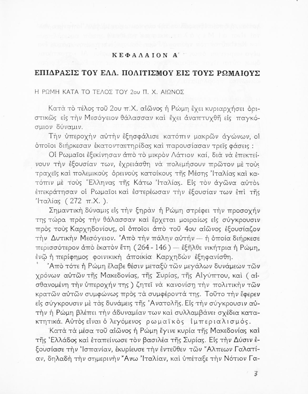 Τίτλος: Επίδρασις του ελληνικού πολιτισμού εις τους Ρωμαίους. Γ΄ Γυμνασίου