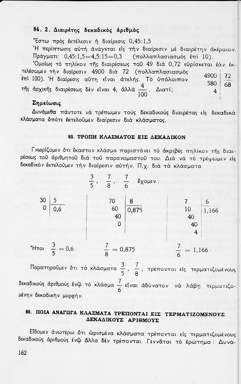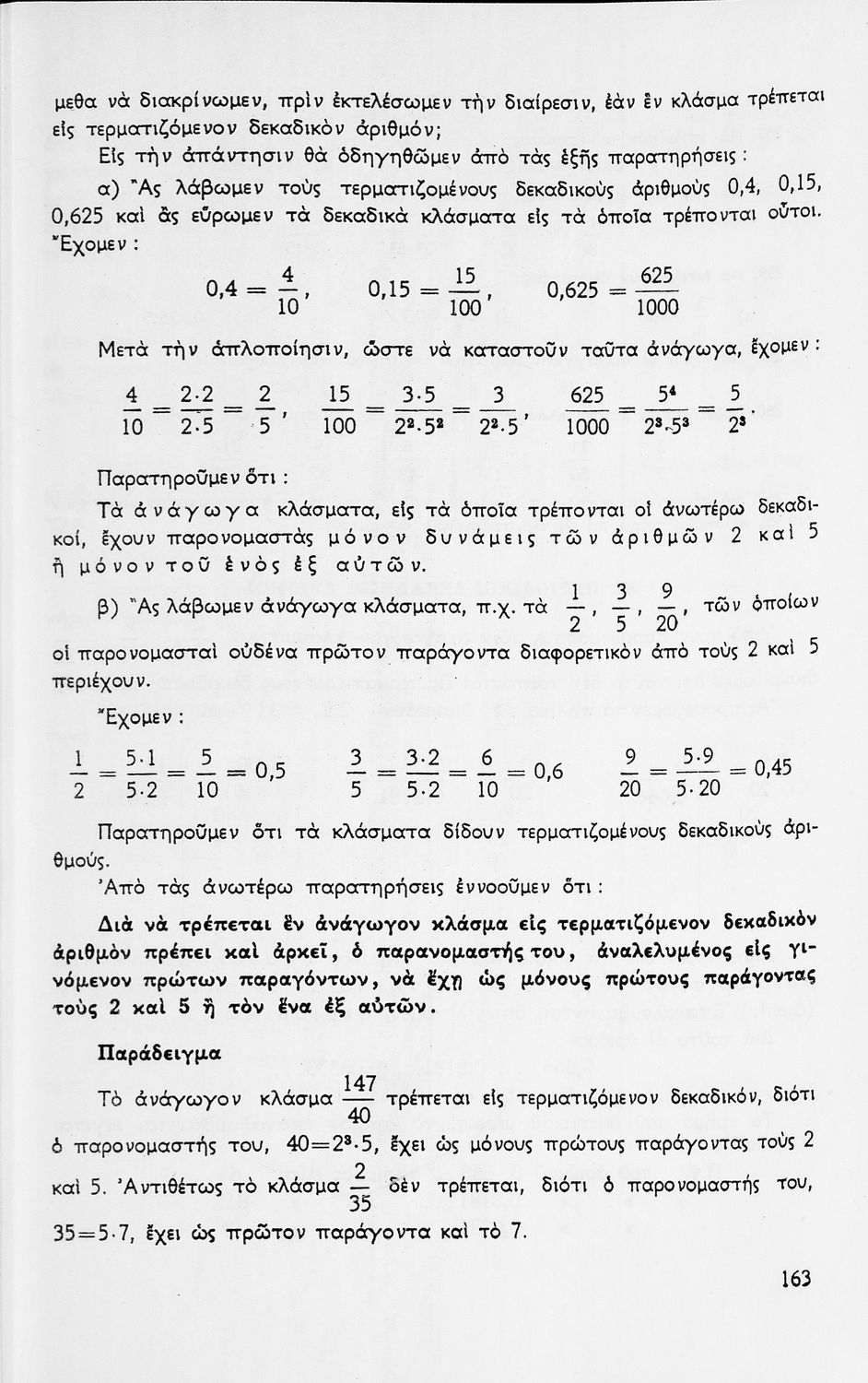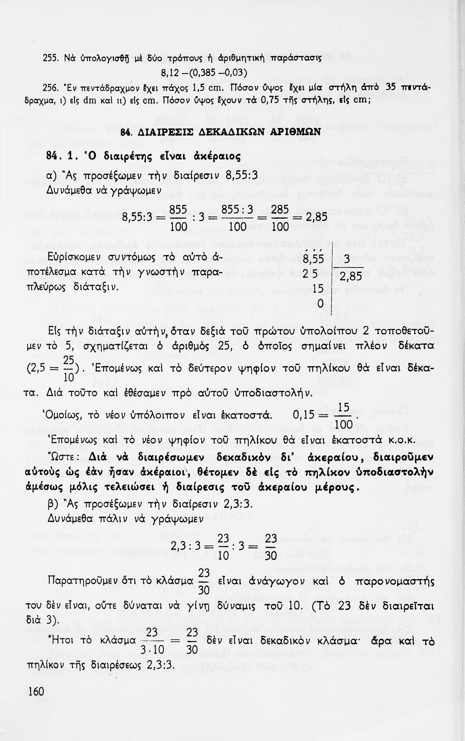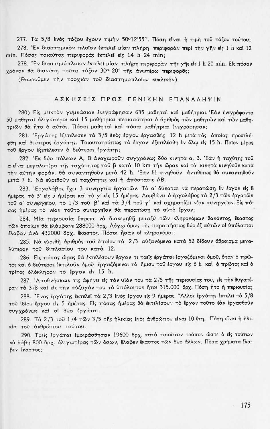 Σχολικό εγχειρίδιο Μαθηματικών Α' Γυμνασίου που περιέχει άλγεβρα με έμφαση στις αριθμητικές πράξεις με ακέραιους, δεκαδικούς και κλάσματα, και γεωμετρία με έμφαση στην επιπεδομετρία. Περιέχει και εισαγωγή στη θεωρία των συνόλων. Φέρει το σύμβολο της δικτατορίας.