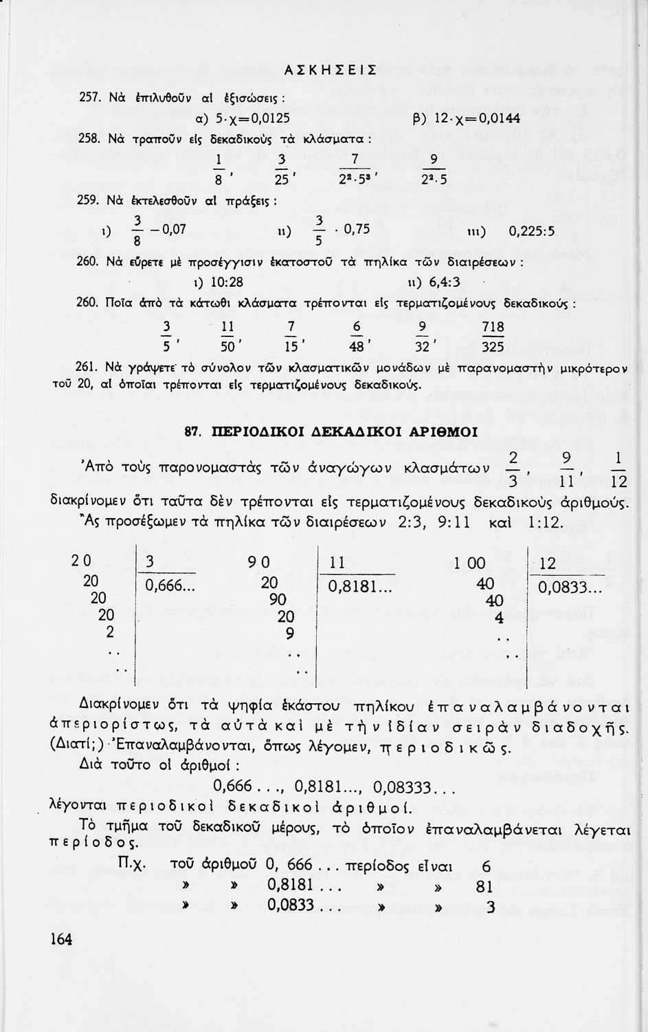 Σχολικό εγχειρίδιο Αριθμητικής για τις Α΄, Β΄, Γ΄ Γυμνασίου που είναι χωρισμένο σε ορισμούς και ασκήσεις και εστιάζει στις ιδιότητες των αριθμητικών πράξεων, τα κλάσματα και την τετραγωνική ρίζα.