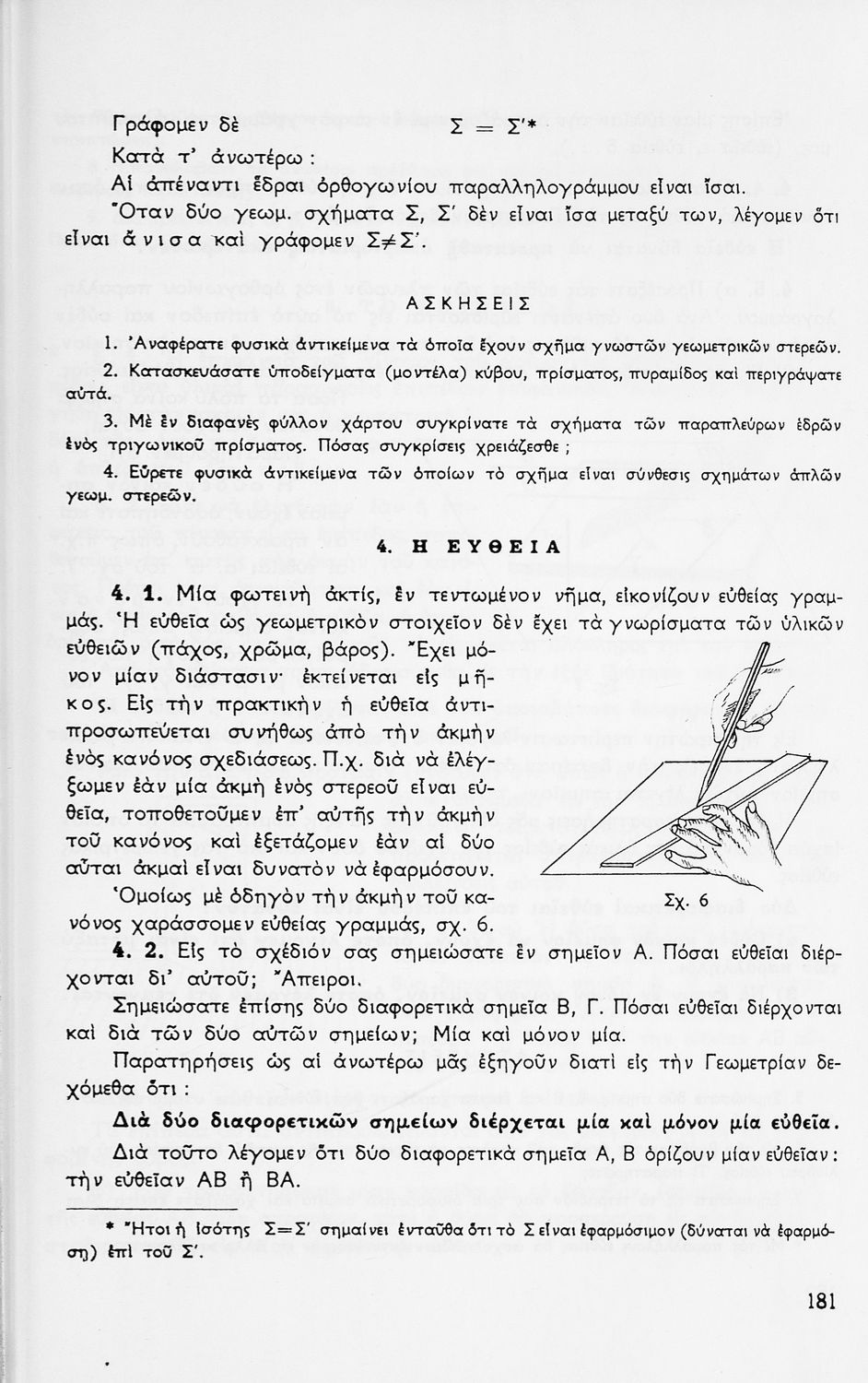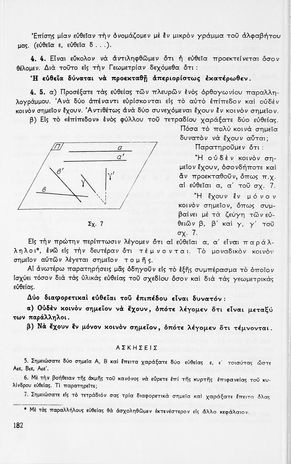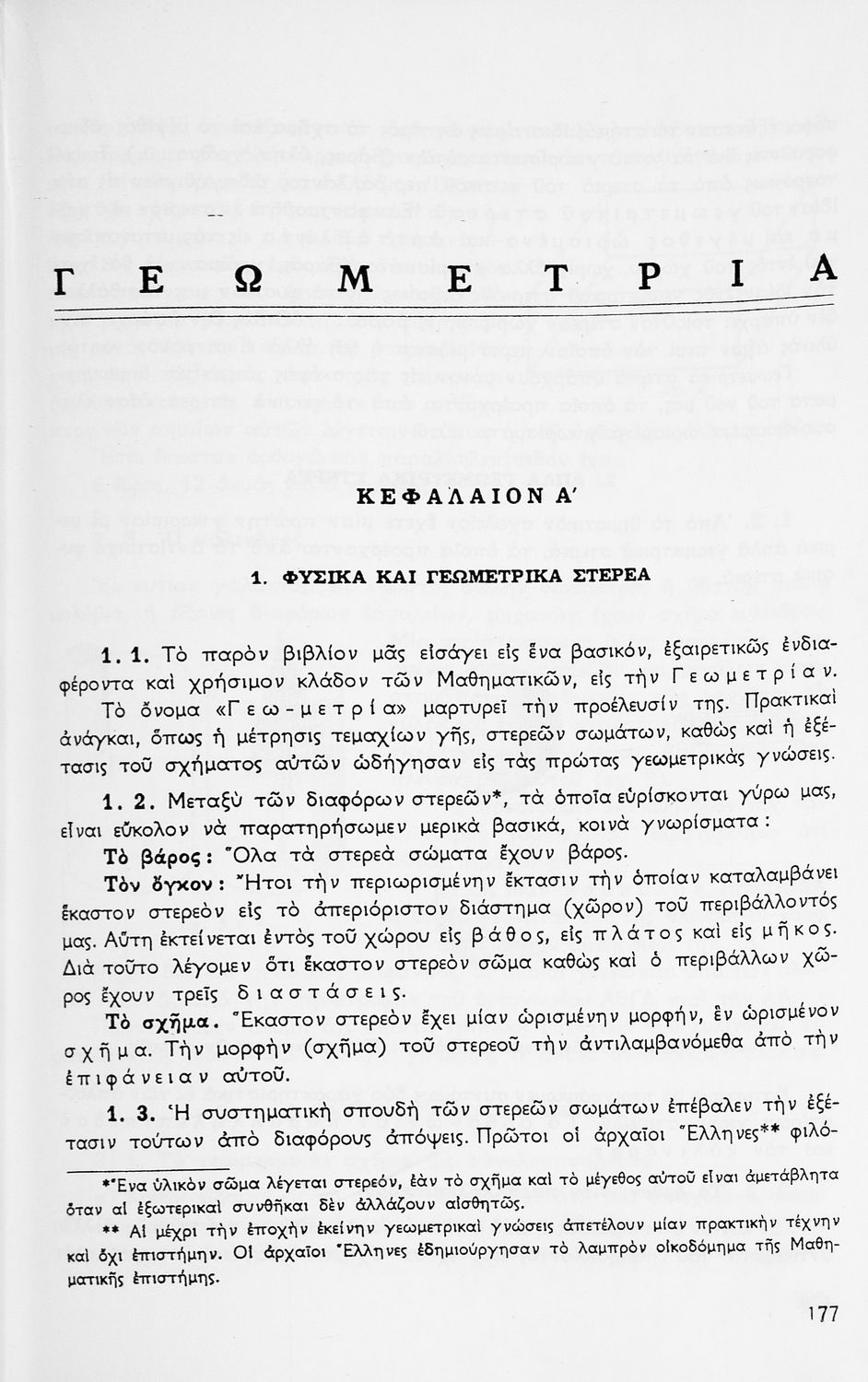 Σχολικό εγχειρίδιο Γεωμετρίας για την Α΄ και Β΄ Γυμνασίου χωρισμένο σε Επιπεδομετρία και Στερεομετρία που περιέχει θεωρία και ασκήσεις.