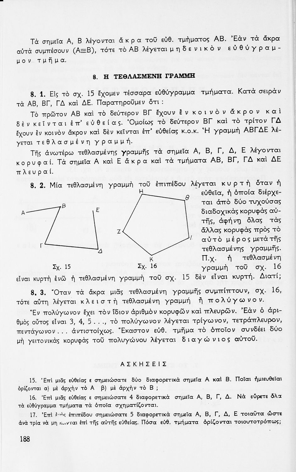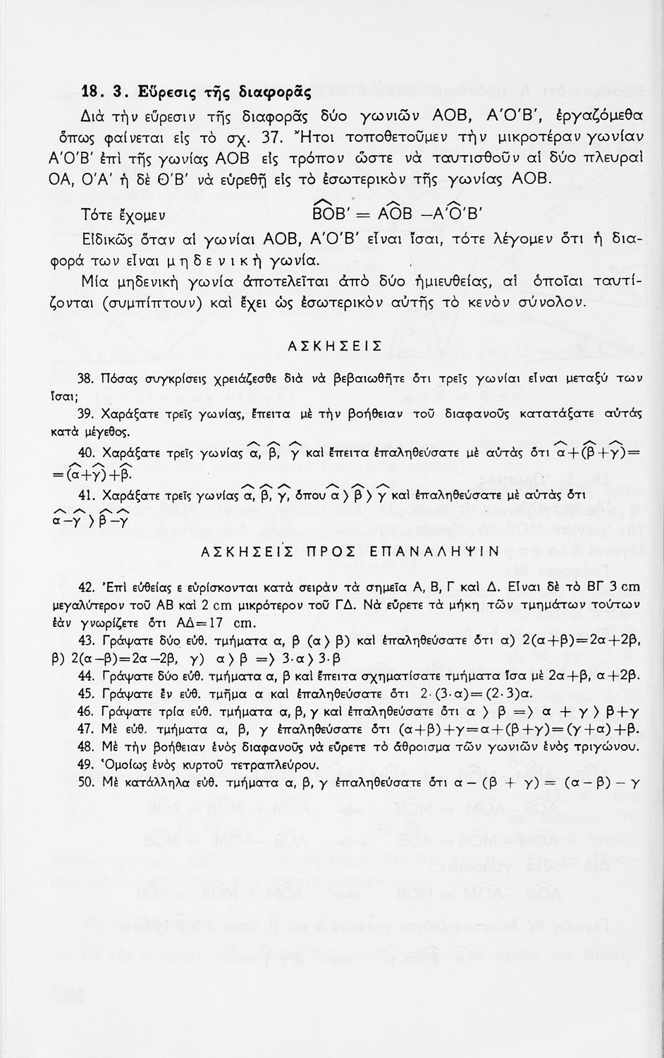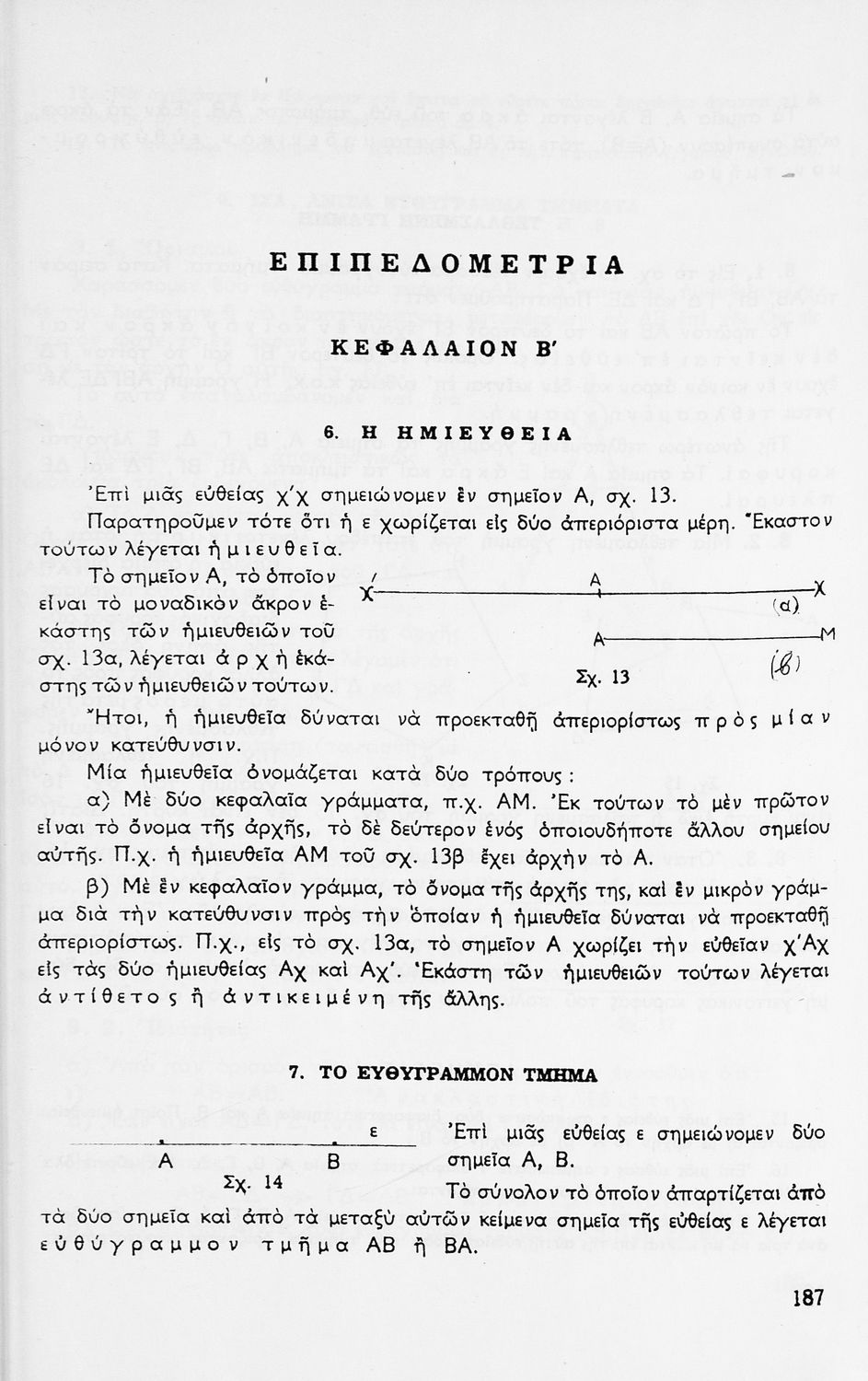 Σχολικό εγχειρίδιο Γεωμετρίας για την Α΄ και Β΄ Γυμνασίου χωρισμένο σε Επιπεδομετρία και Στερεομετρία που περιέχει θεωρία και ασκήσεις.