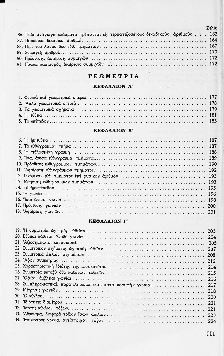 Σχολικό εγχειρίδιο Γεωμετρίας για τις Α΄, Β΄, Γ΄ Γυμνασίου που είναι χωρισμένο σε Επιπεδομετρία και Στερεομετρία και περιλαμβάνει θεωρία και ασκήσεις.