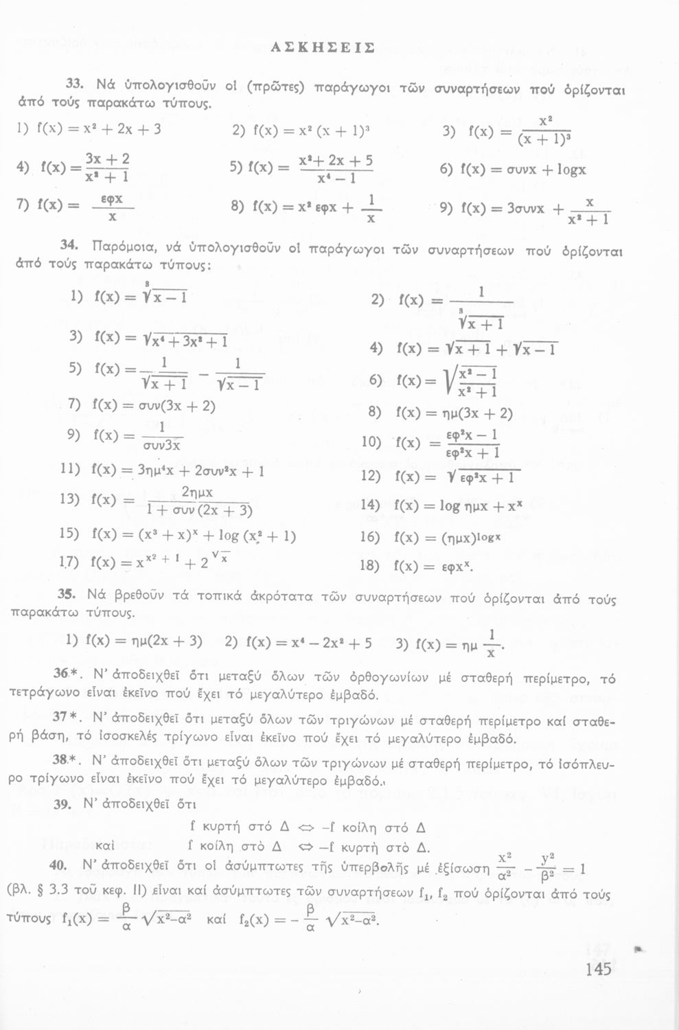 Σχολικό εγχειρίδιο Μαθηματικών Γ΄ Λυκείου που είναι χωρισμένο σε θεωρήματα, παραδείγματα και ασκήσεις και περιλαμβάνει στοιχεία Ανώτερης Άλγεβρας και Μαθηματικής Ανάλυσης.