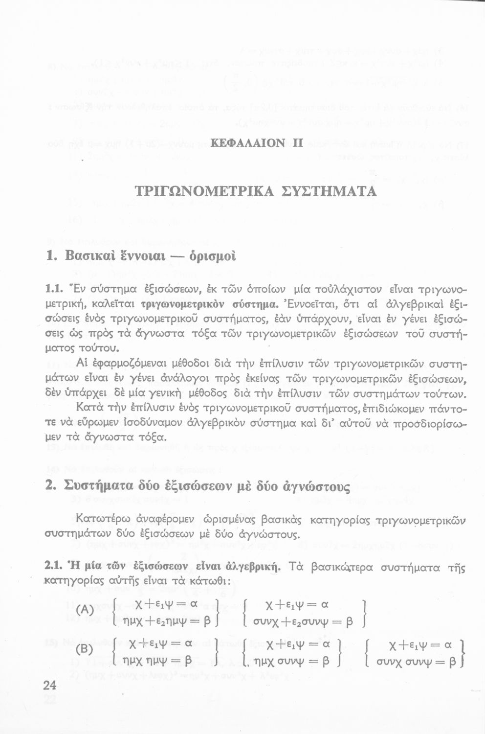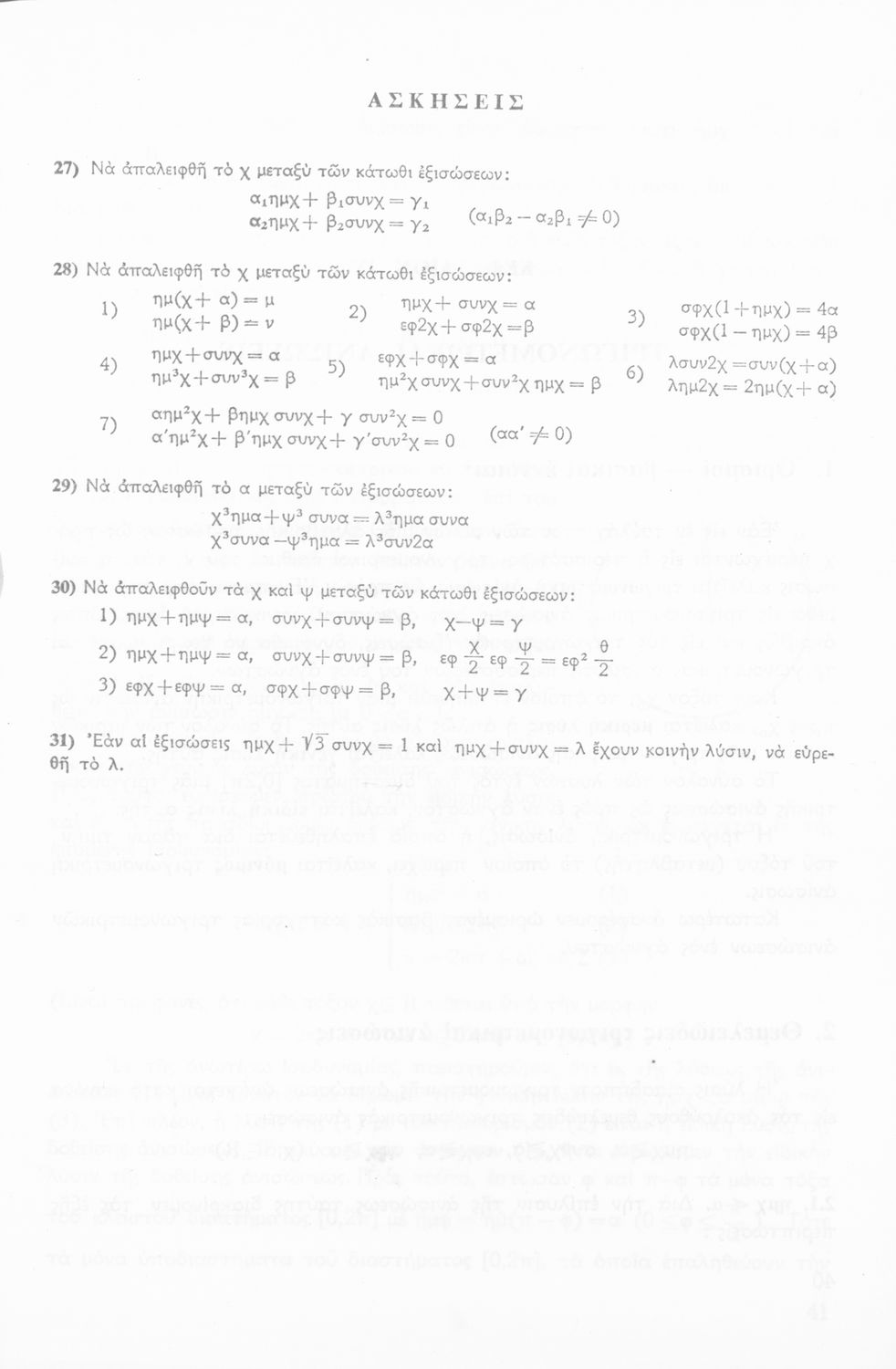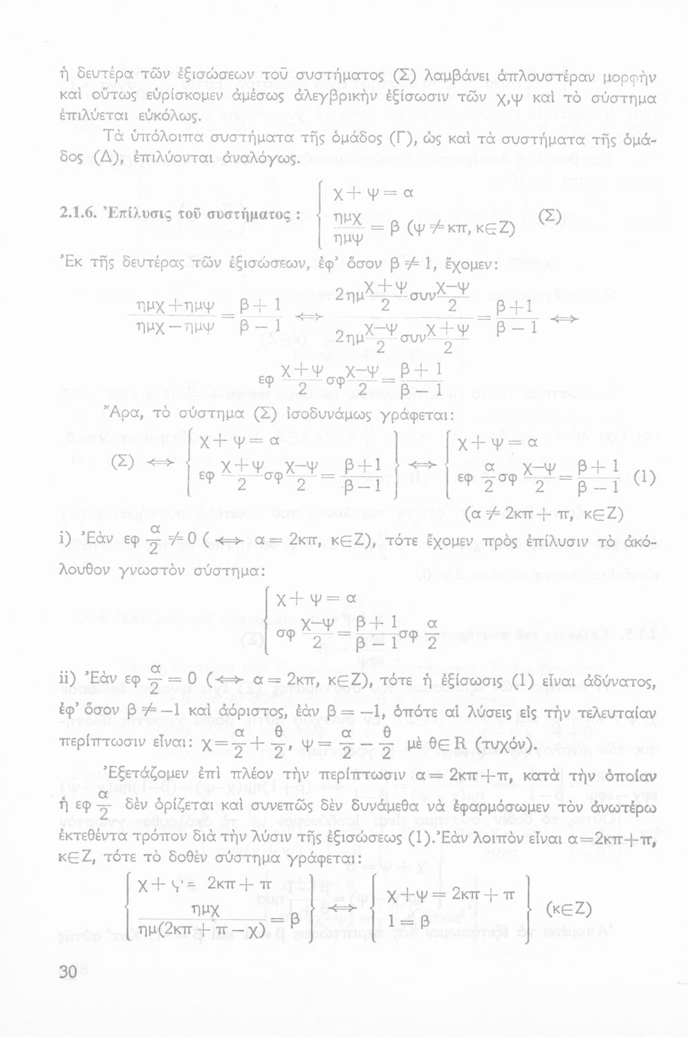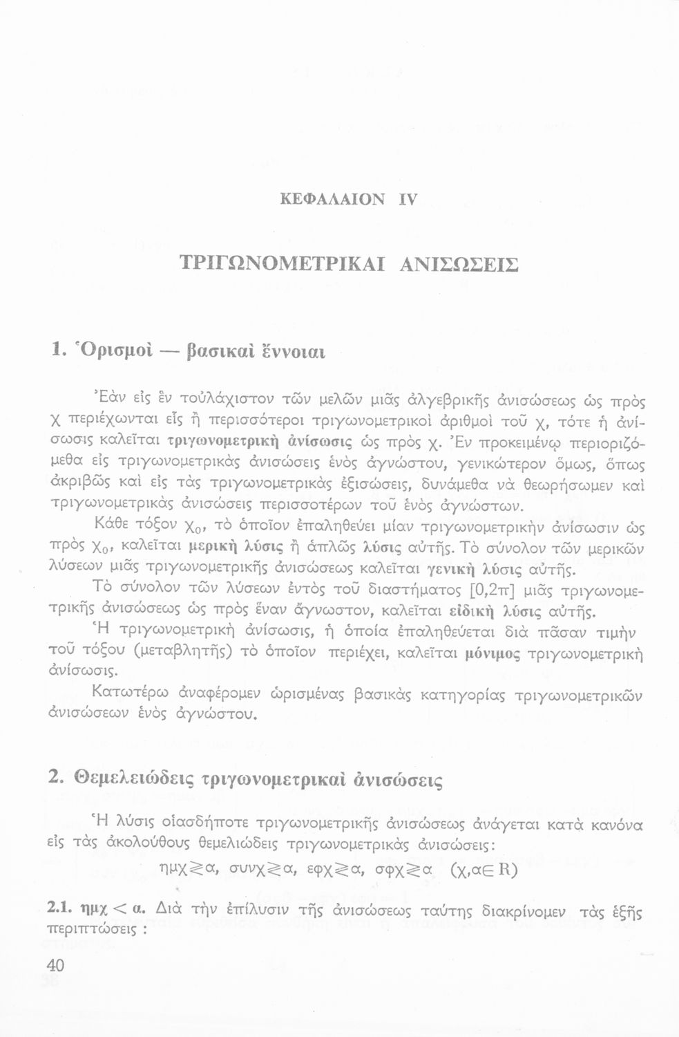 Σχολικό εγχειρίδιο της ΣΤ΄ Γυμνασίου για το μάθημα των Μαθηματικών. Περιέχει θεωρία, ασκήσεις λυμένες και παραδείγματα της Τριγωνομετρίας. Απευθυνόταν στους μαθητές της θετικής κατεύθυνσης.
