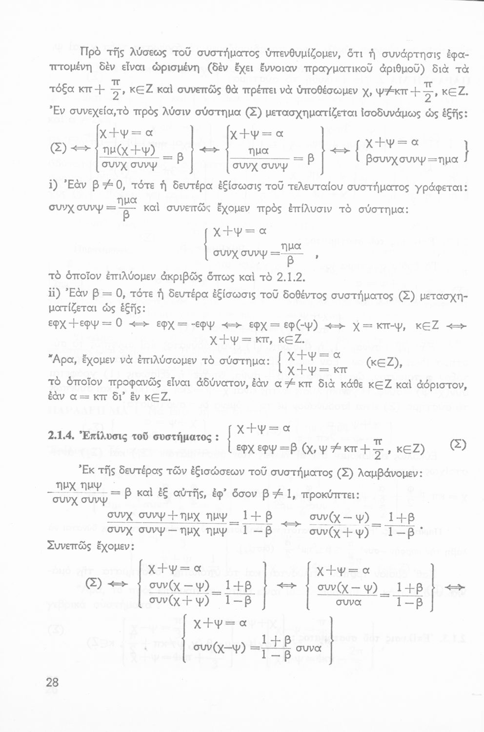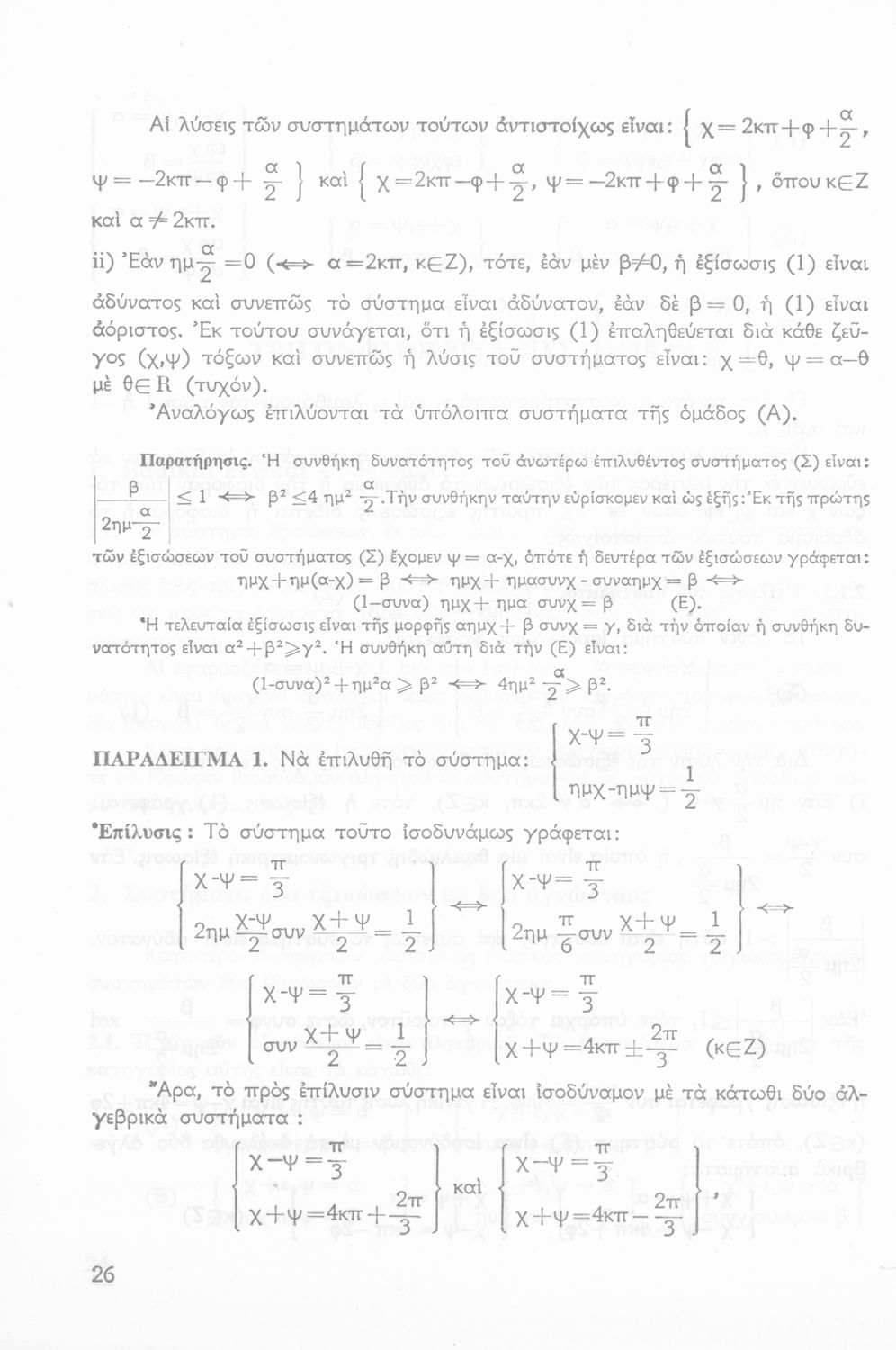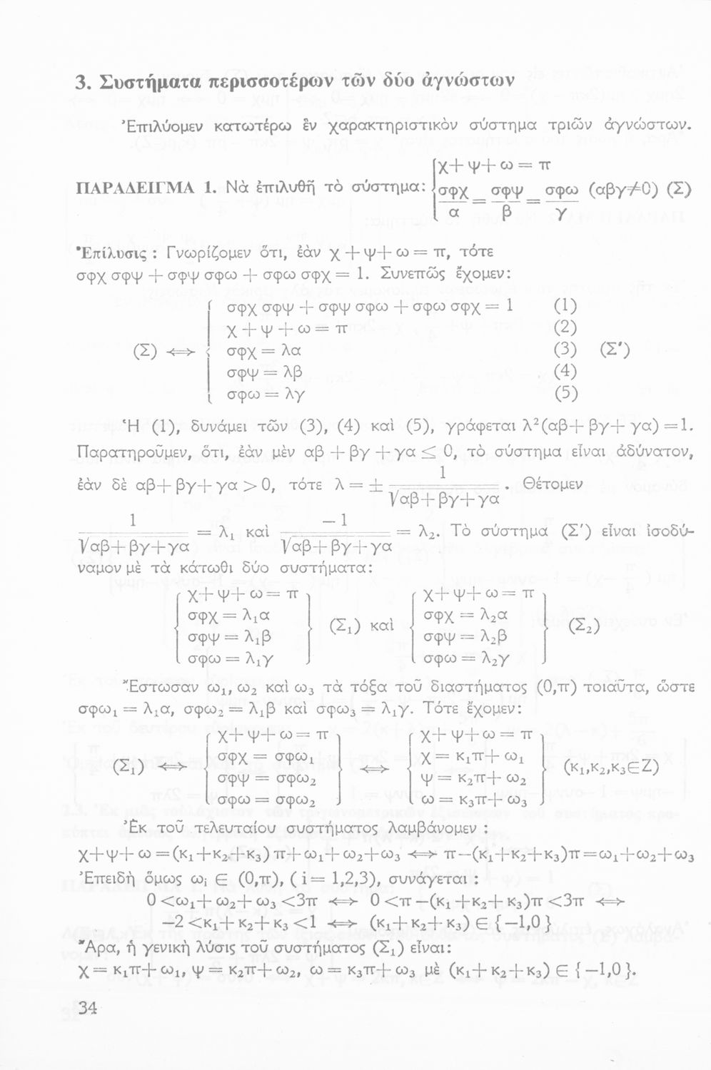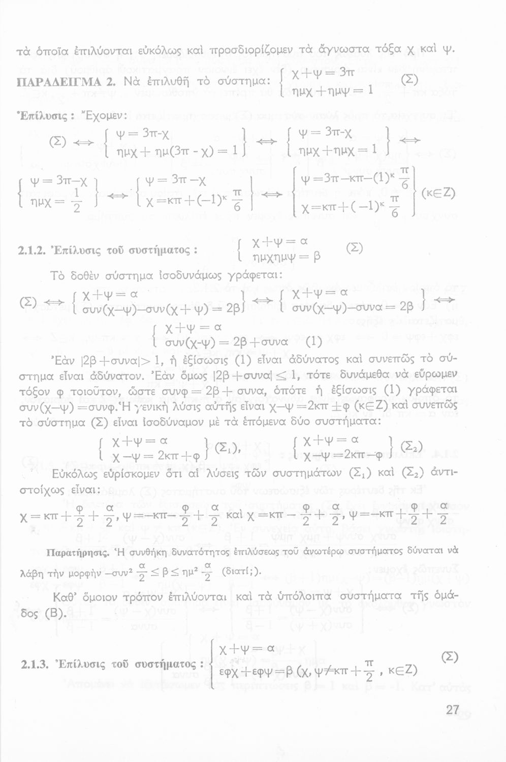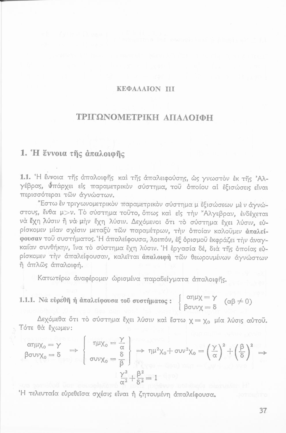 Το σύγγραμμα ήταν σχολικό εγχειρίδιο για το μάθημα των Μαθηματικών στο Γυμνάσιο. Περιέχει βασικές γνώσεις Τριγωνομετρίας. Αναφέρεται στις τριγωνομετρικές εξισώσεις, τα τριγωνομετρικά συστήματα, την απαλοιφή, ...