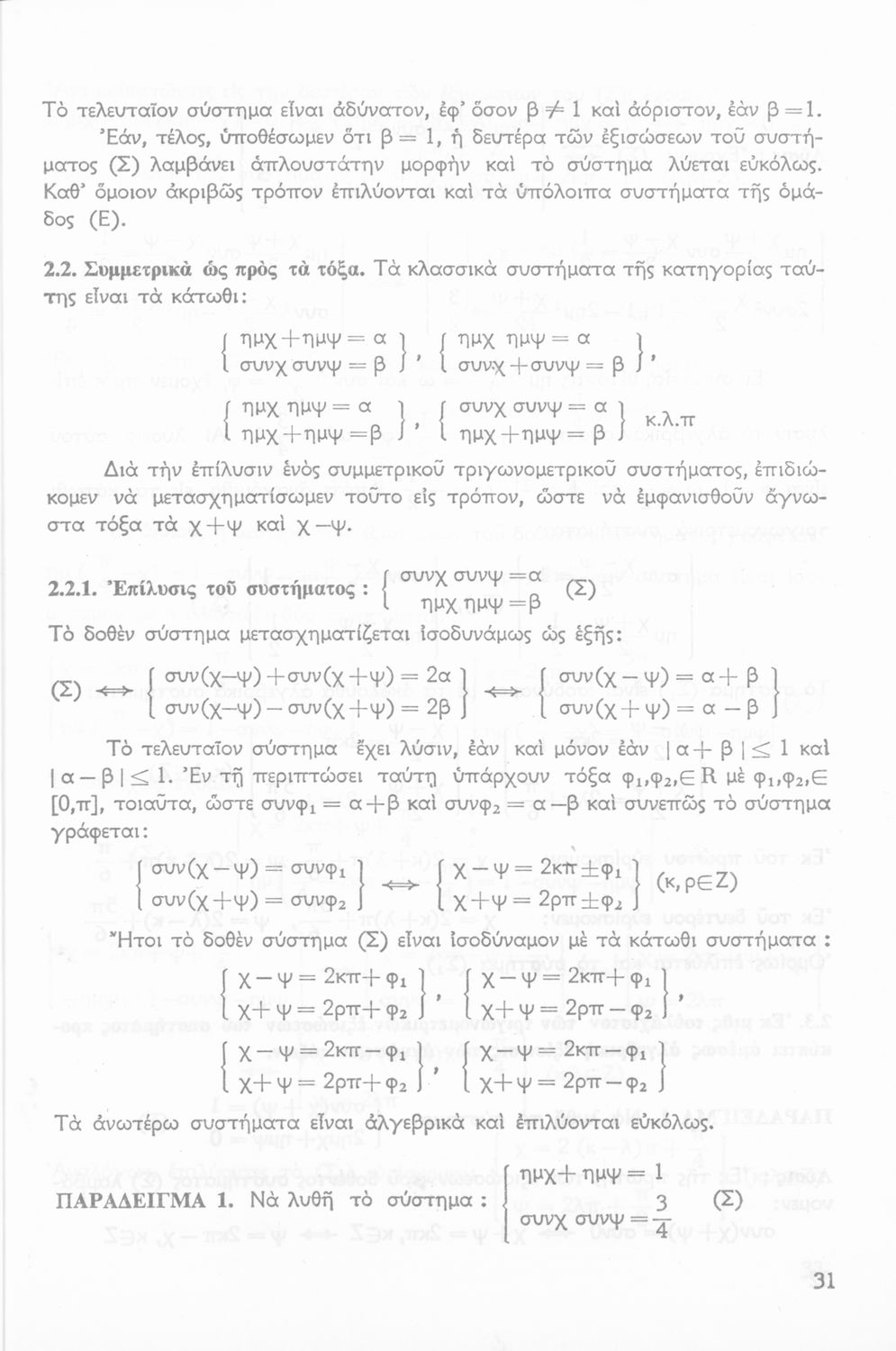 Σχολικό εγχειρίδιο Μαθηματικών Γυμνασίου που είναι χωρισμένο σε θεωρήματα, παραδείγματα και ασκήσεις και περιλαμβάνει στοιχεία Ανώτερης Άλγεβρας και Μαθηματικής Ανάλυσης.