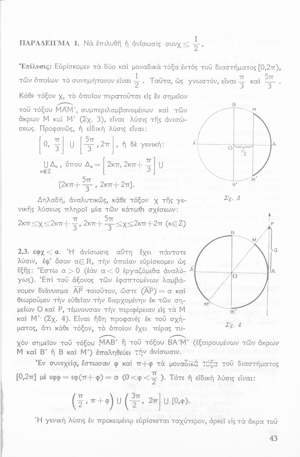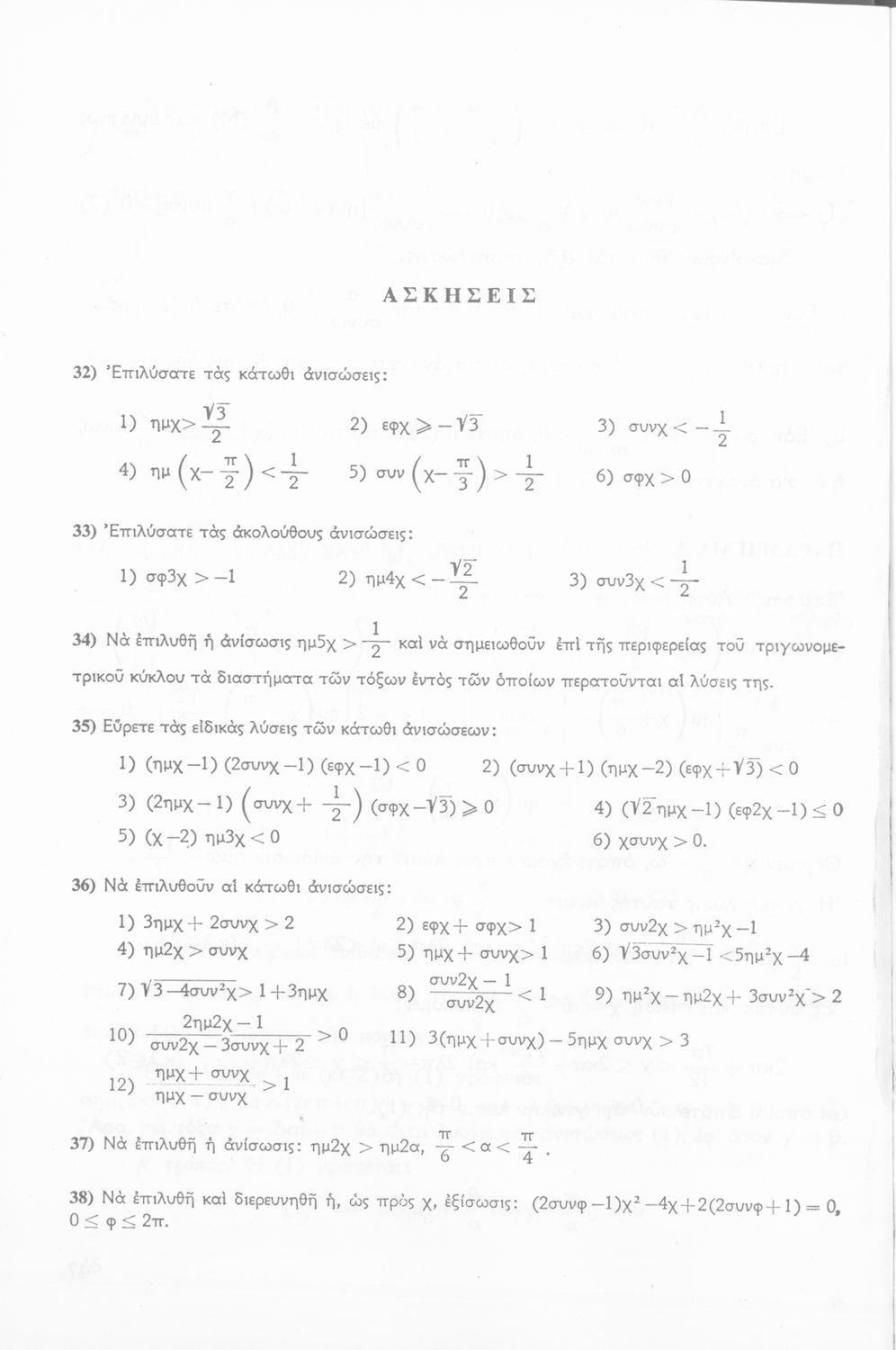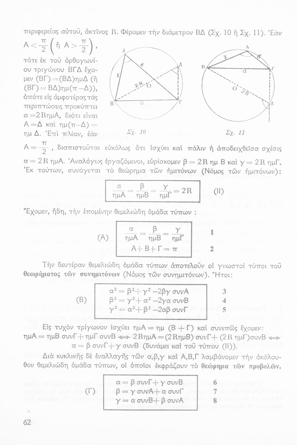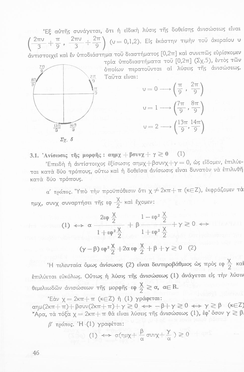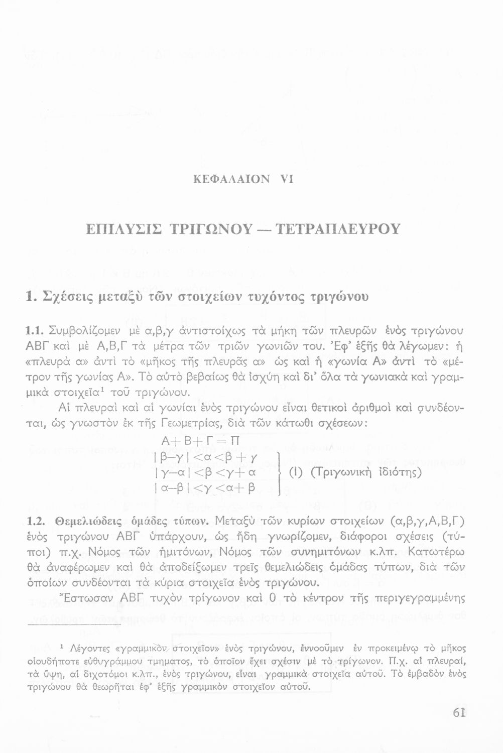 Σχολικό εγχειρίδιο της ΣΤ΄ Γυμνασίου για το μάθημα των Μαθηματικών. Περιέχει θεωρία, ασκήσεις λυμένες και παραδείγματα της Τριγωνομετρίας. Απευθυνόταν στους μαθητές της θετικής κατεύθυνσης.