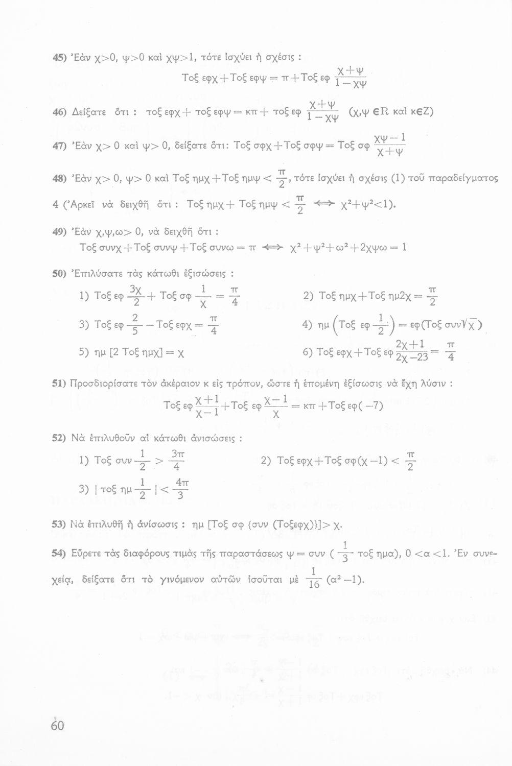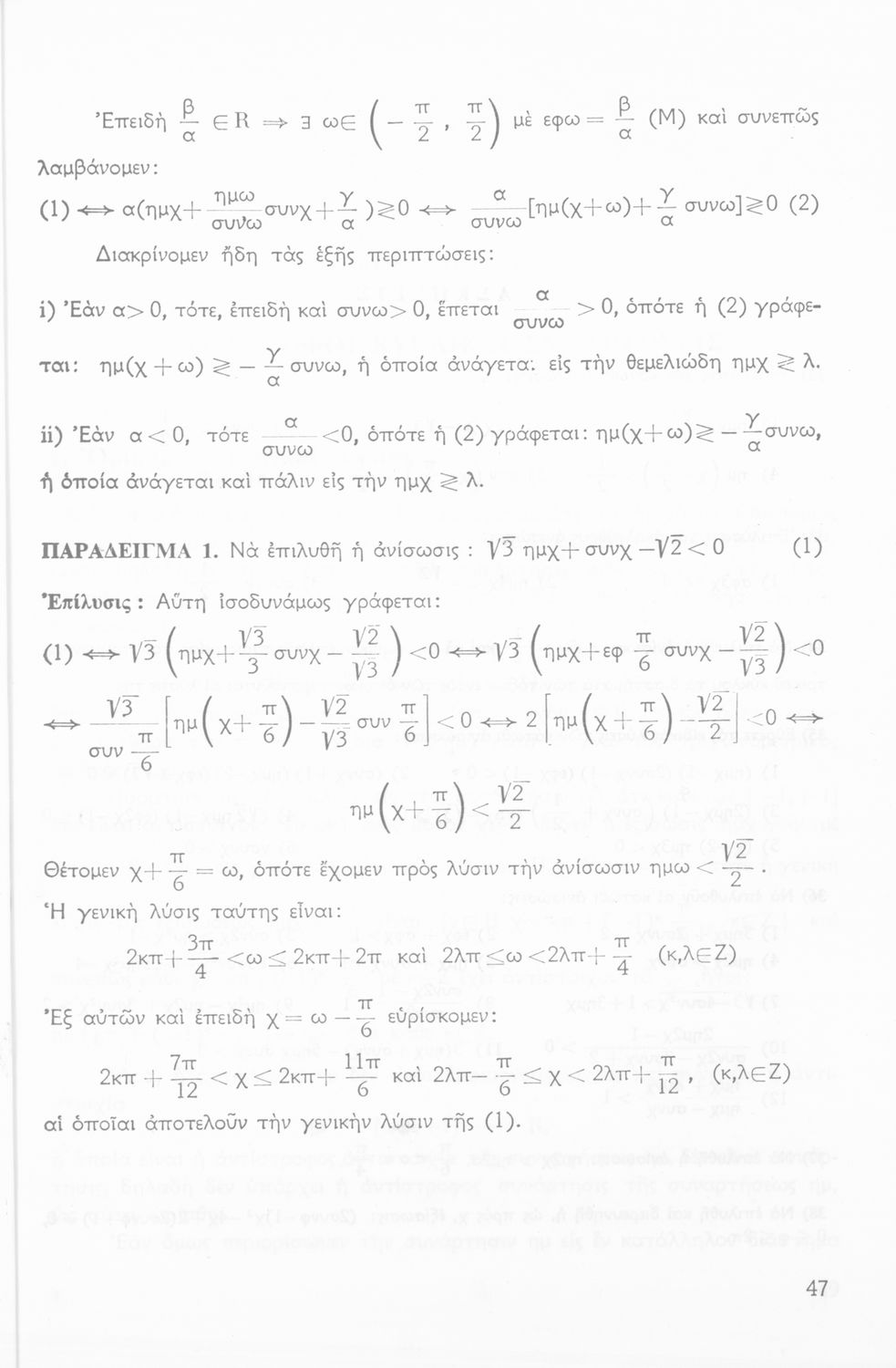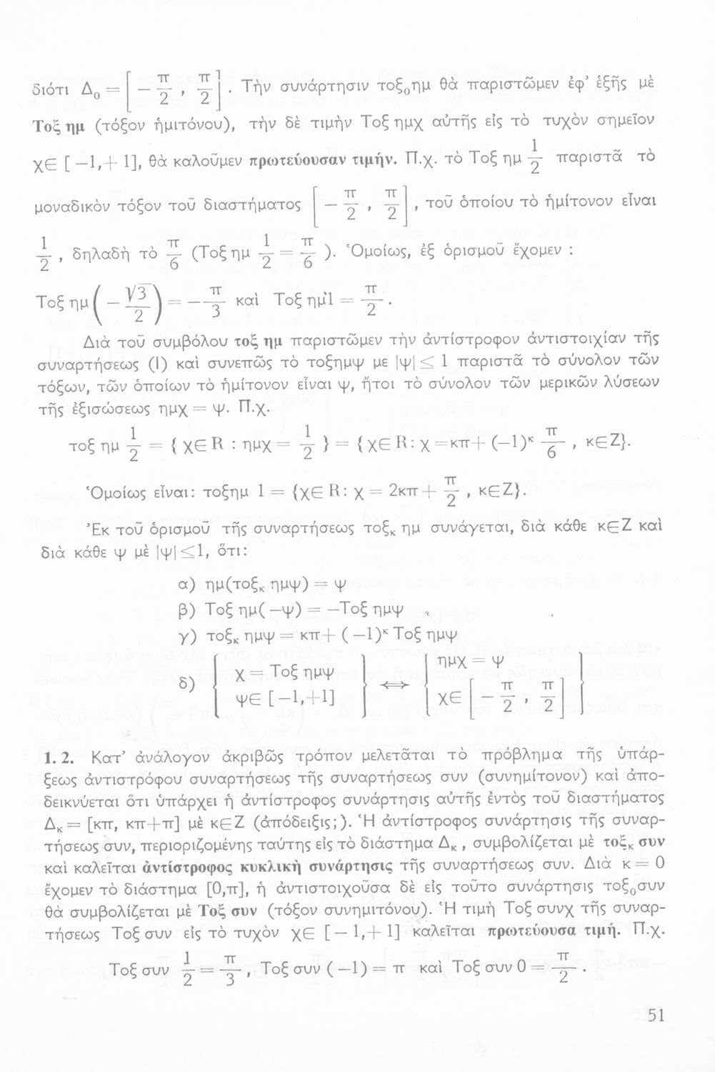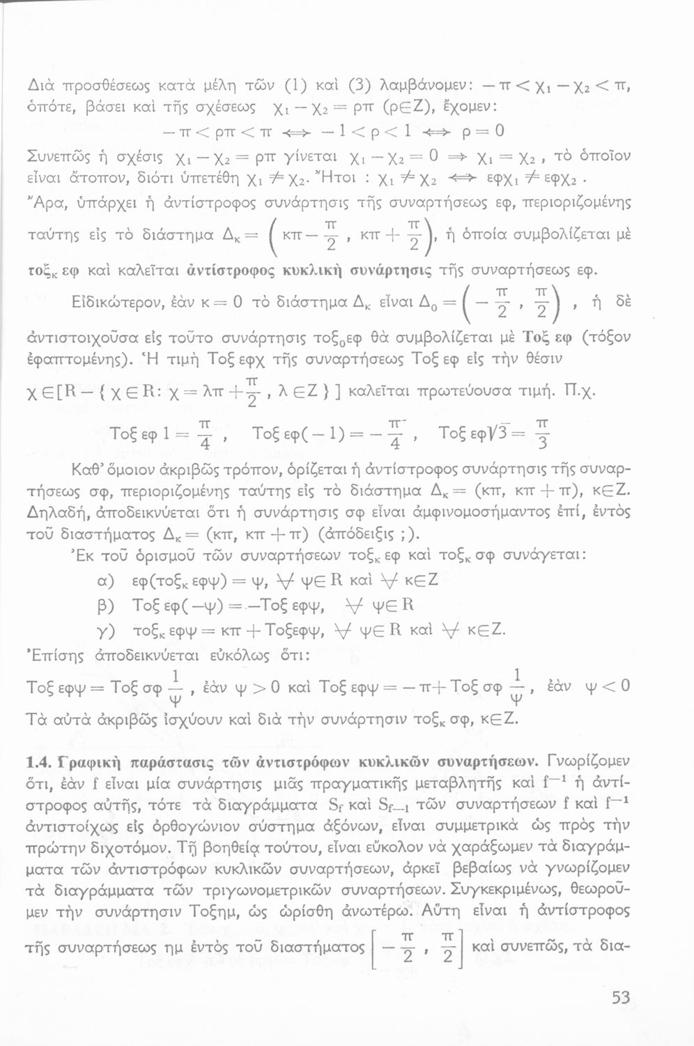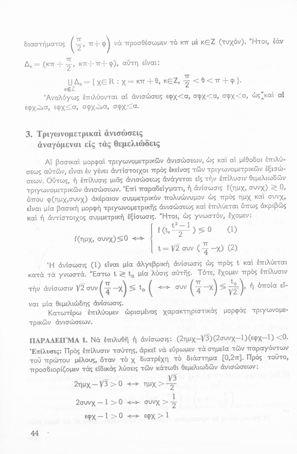 Σχολικό εγχειρίδιο της ΣΤ΄ Γυμνασίου για το μάθημα των Μαθηματικών. Περιέχει θεωρία, ασκήσεις λυμένες και παραδείγματα της Τριγωνομετρίας. Απευθυνόταν στους μαθητές της θετικής κατεύθυνσης.