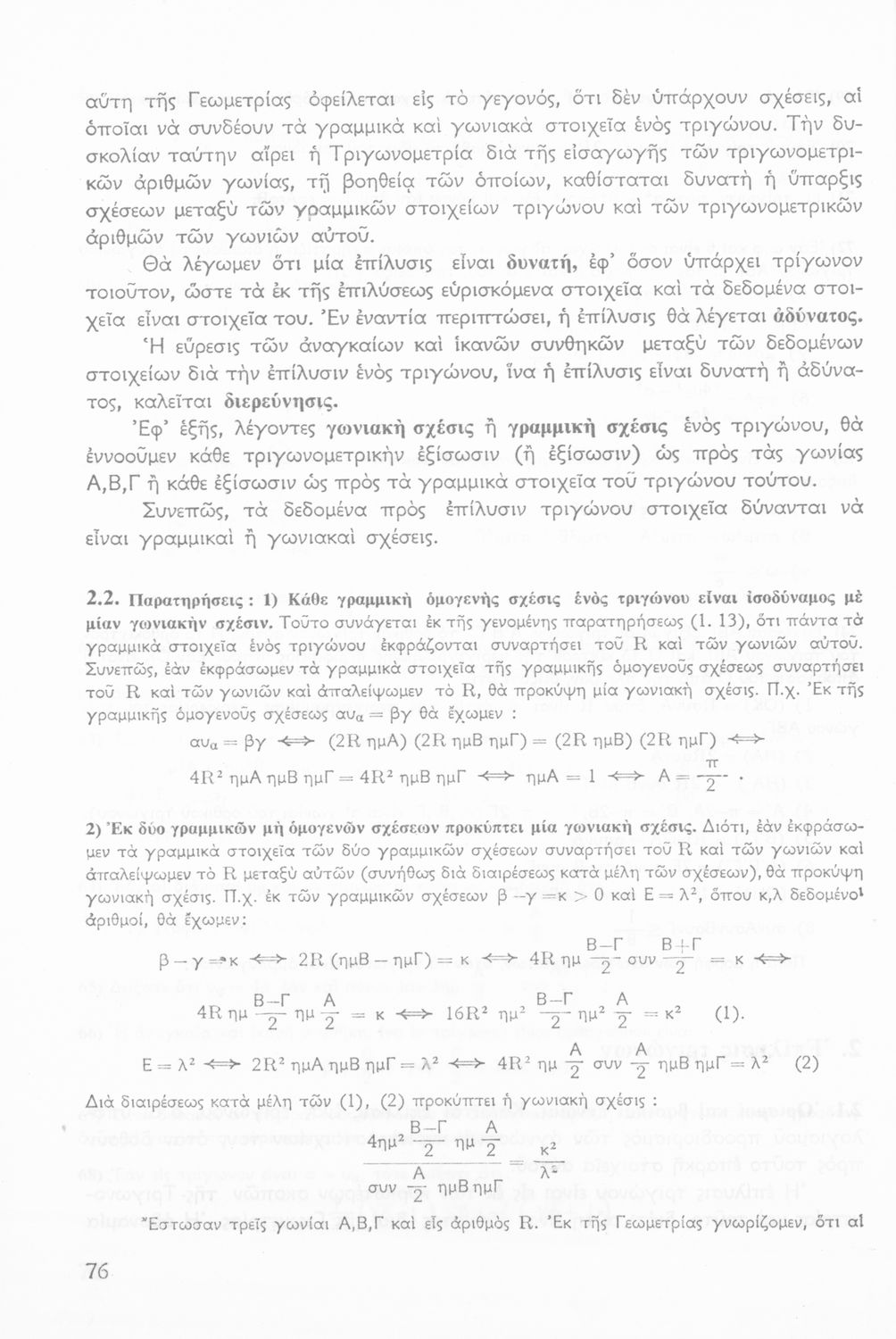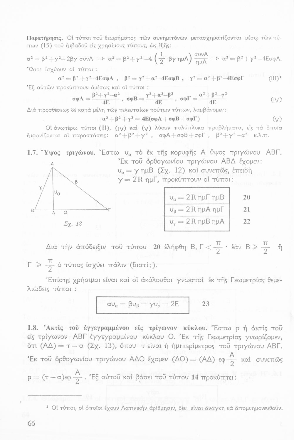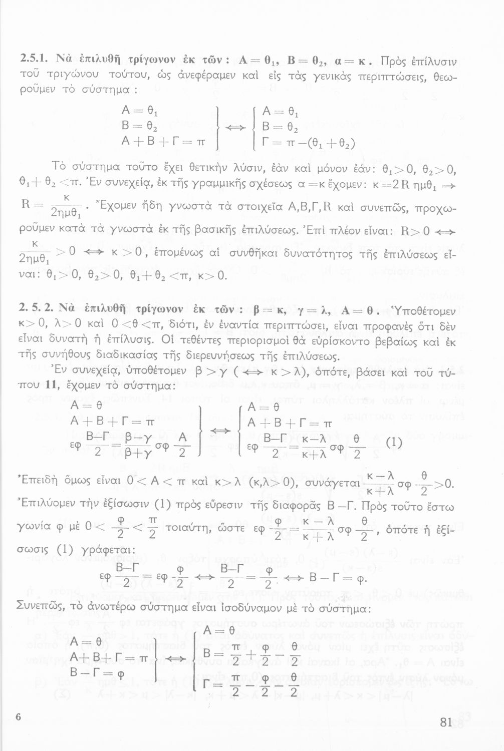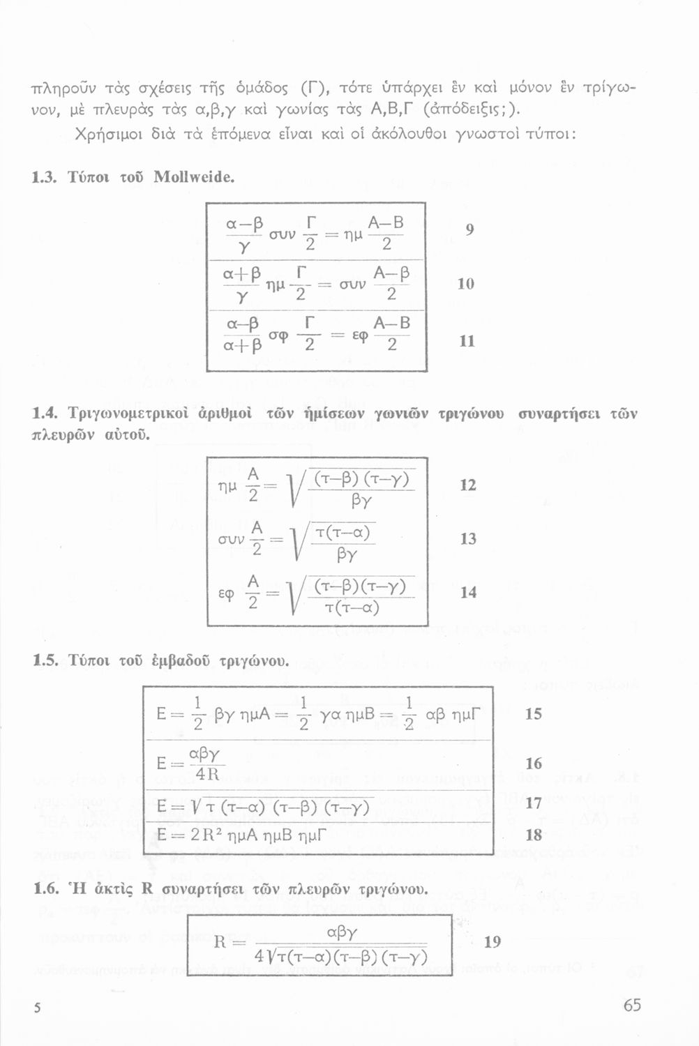 Σχολικό εγχειρίδιο της ΣΤ΄ Γυμνασίου για το μάθημα των Μαθηματικών. Περιέχει θεωρία, ασκήσεις λυμένες και παραδείγματα της Τριγωνομετρίας. Απευθυνόταν στους μαθητές της θετικής κατεύθυνσης.