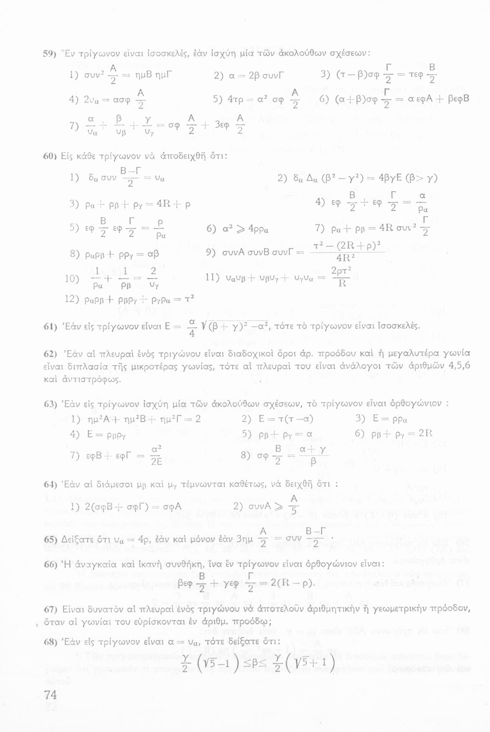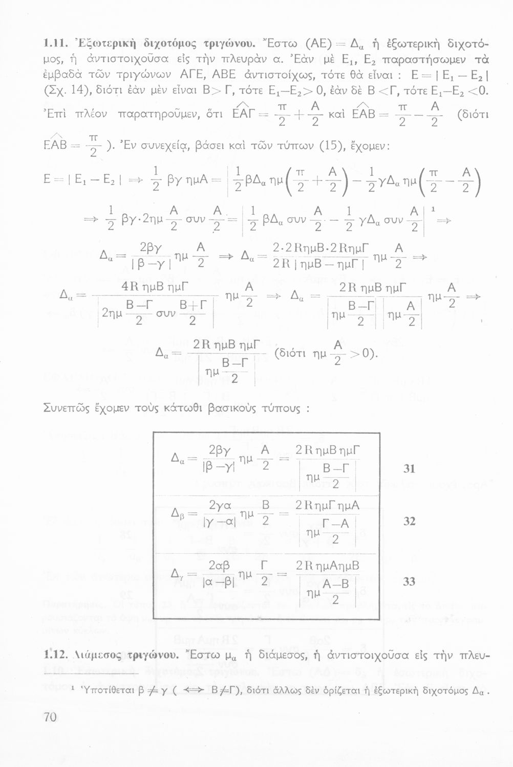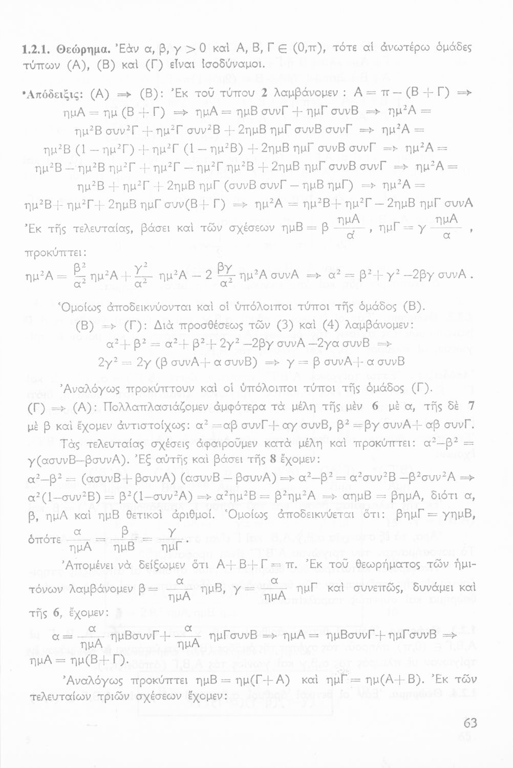 Σχολικό εγχειρίδιο της ΣΤ΄ Γυμνασίου για το μάθημα των Μαθηματικών. Περιέχει θεωρία, ασκήσεις λυμένες και παραδείγματα της Τριγωνομετρίας. Απευθυνόταν στους μαθητές της θετικής κατεύθυνσης.