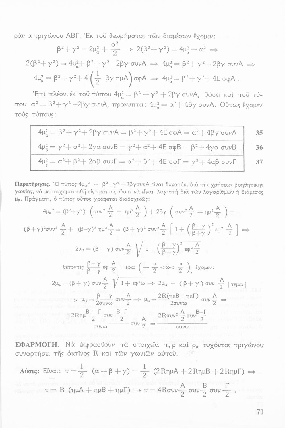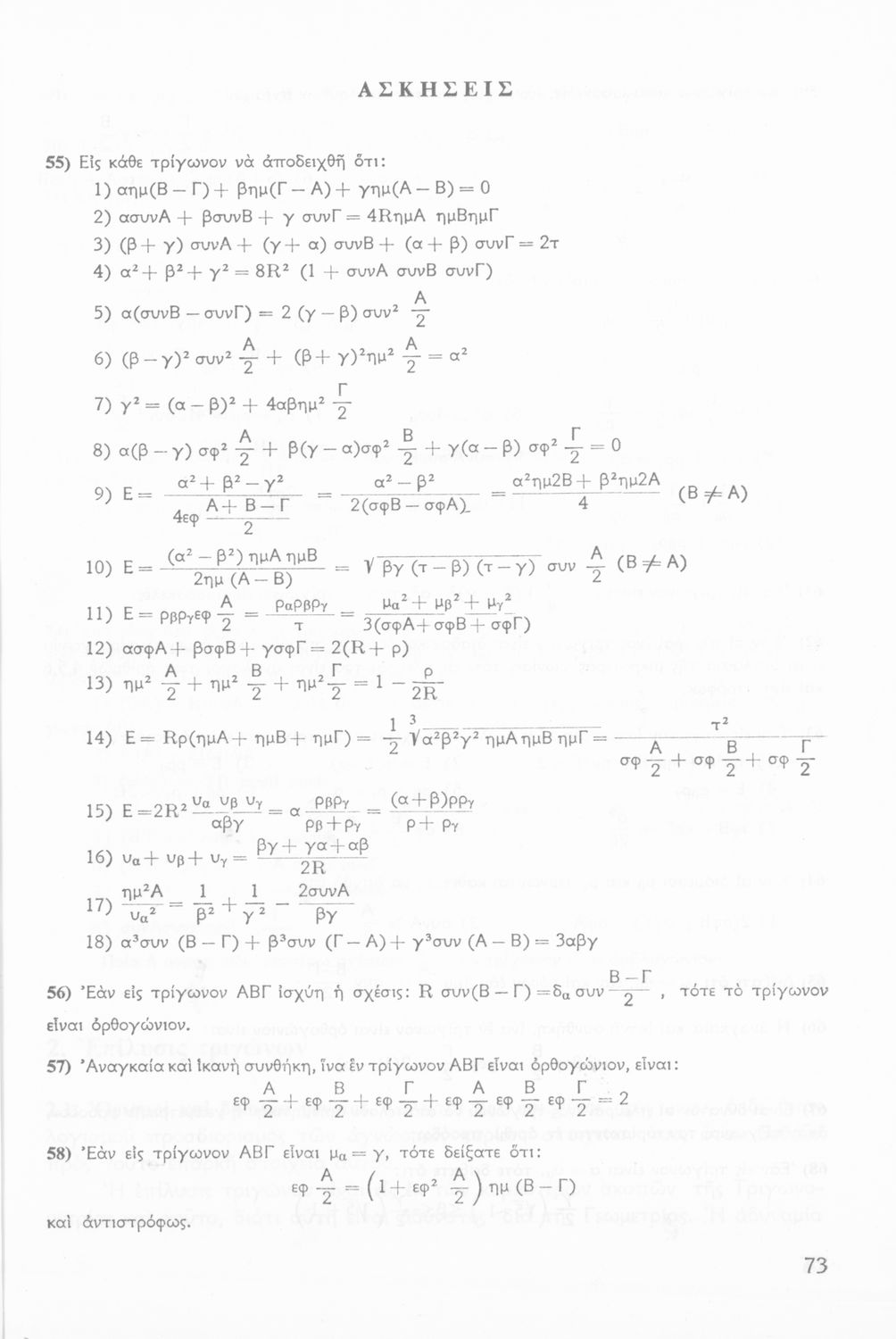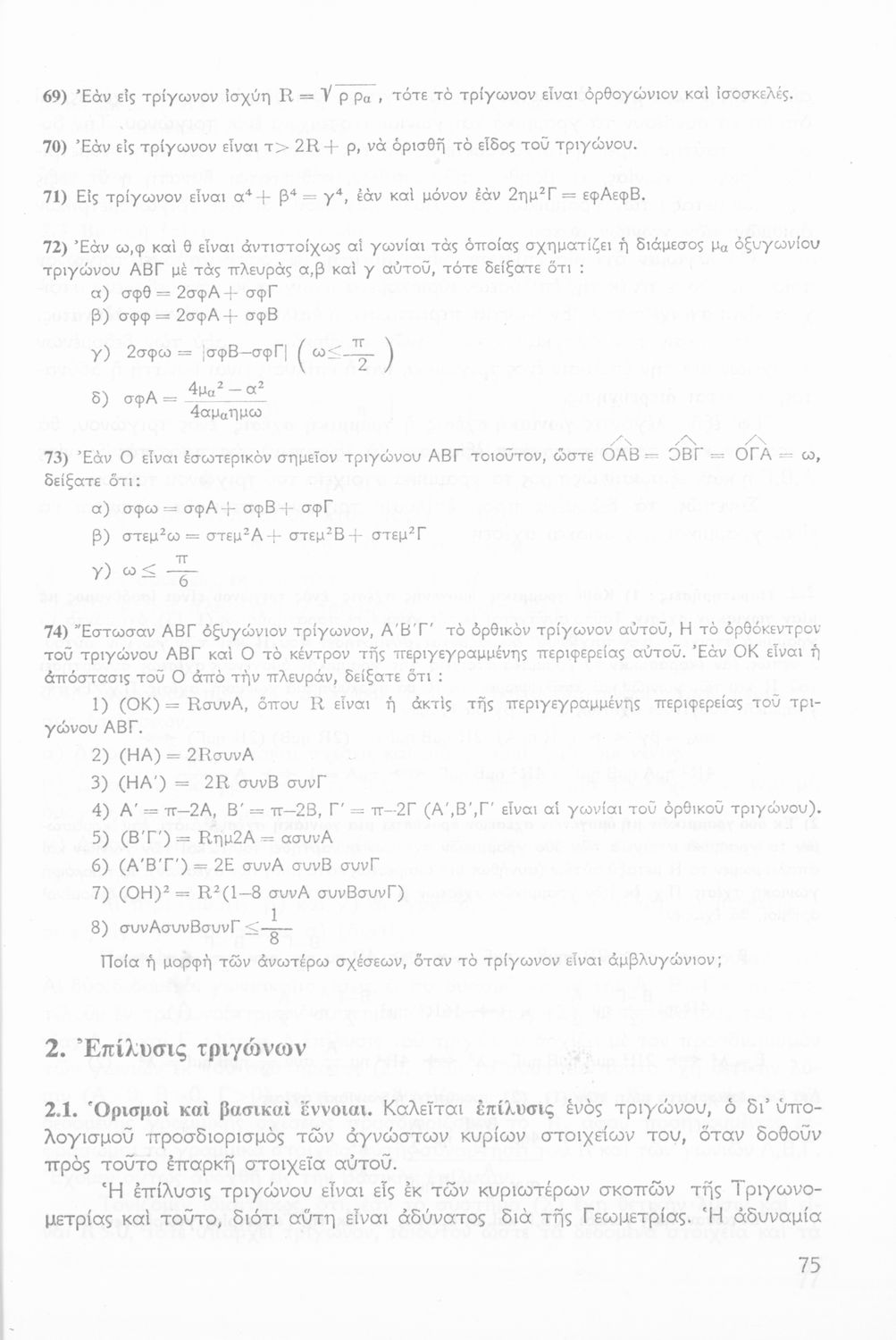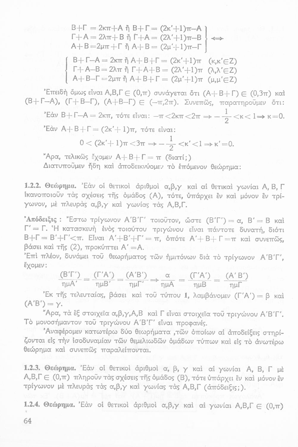 Σχολικό εγχειρίδιο της ΣΤ΄ Γυμνασίου για το μάθημα των Μαθηματικών. Περιέχει θεωρία, ασκήσεις λυμένες και παραδείγματα της Τριγωνομετρίας. Απευθυνόταν στους μαθητές της θετικής κατεύθυνσης.