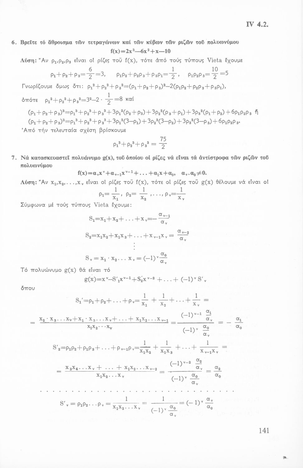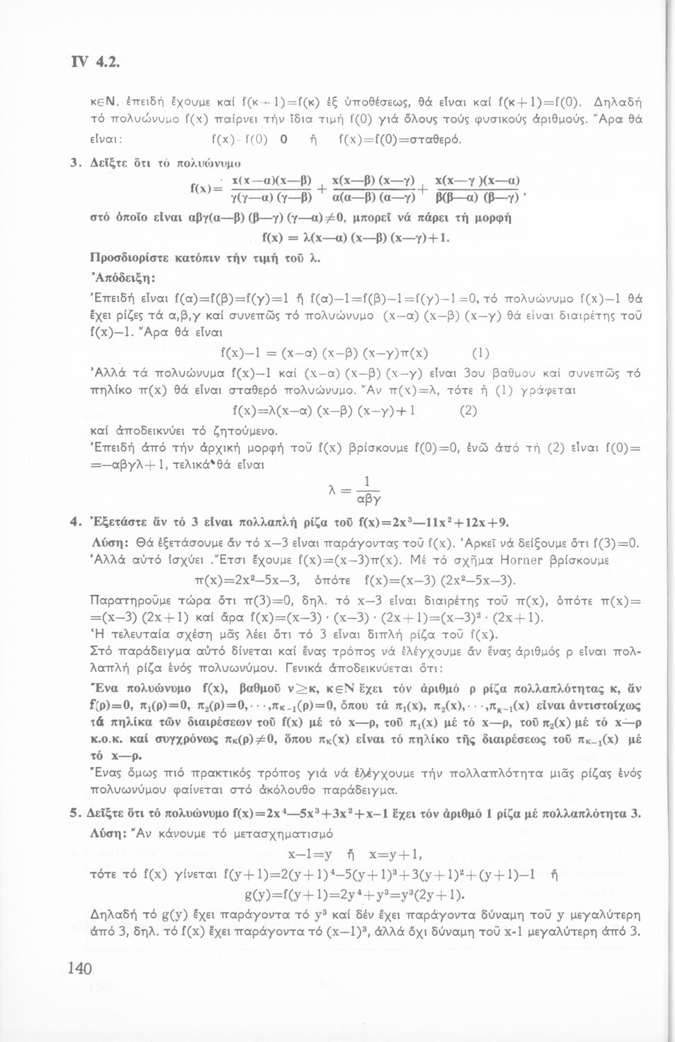 Σχολικό εγχειρίδιο Μαθηματικών Γ΄ Λυκείου που είναι χωρισμένο σε θεωρήματα, παραδείγματα και ασκήσεις και περιλαμβάνει στοιχεία Ανώτερης Άλγεβρας και Μαθηματικής Ανάλυσης.