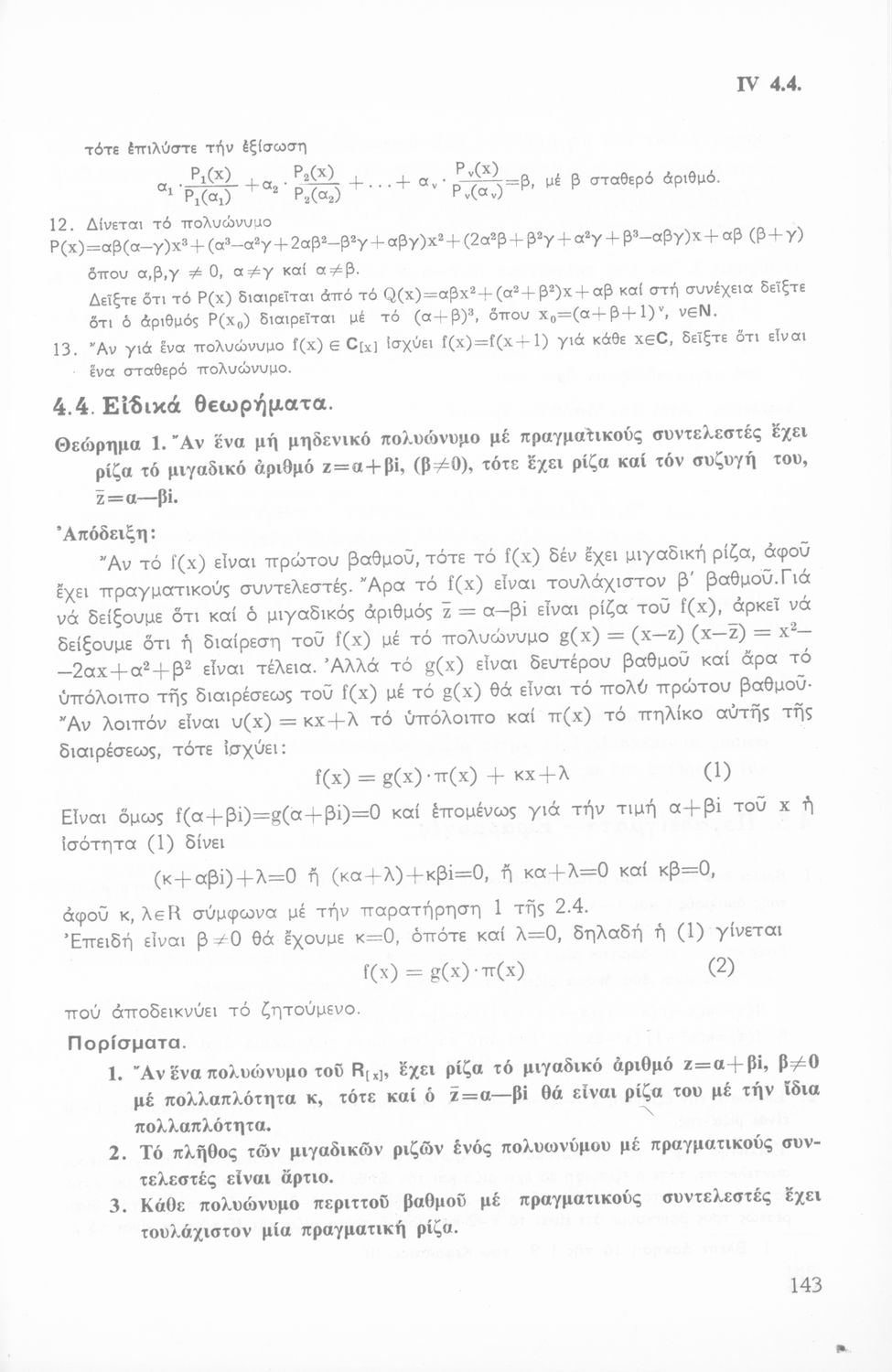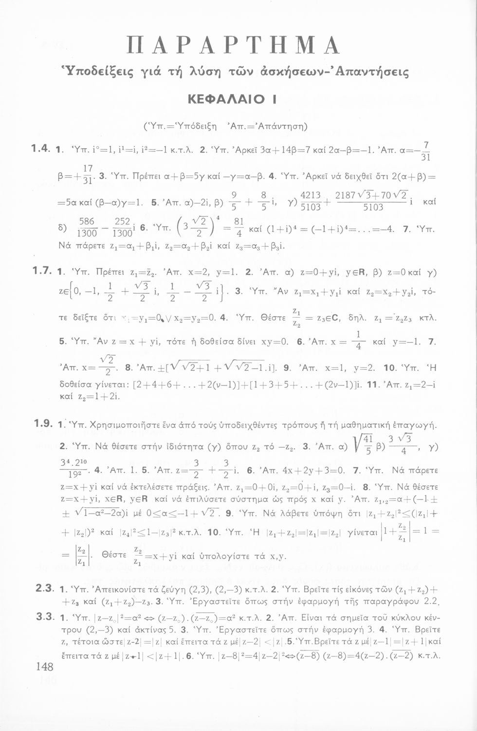 Σχολικό εγχειρίδιο Μαθηματικών Γ΄ Λυκείου που είναι χωρισμένο σε θεωρήματα, παραδείγματα και ασκήσεις και περιλαμβάνει στοιχεία Ανώτερης Άλγεβρας και Μαθηματικής Ανάλυσης.
