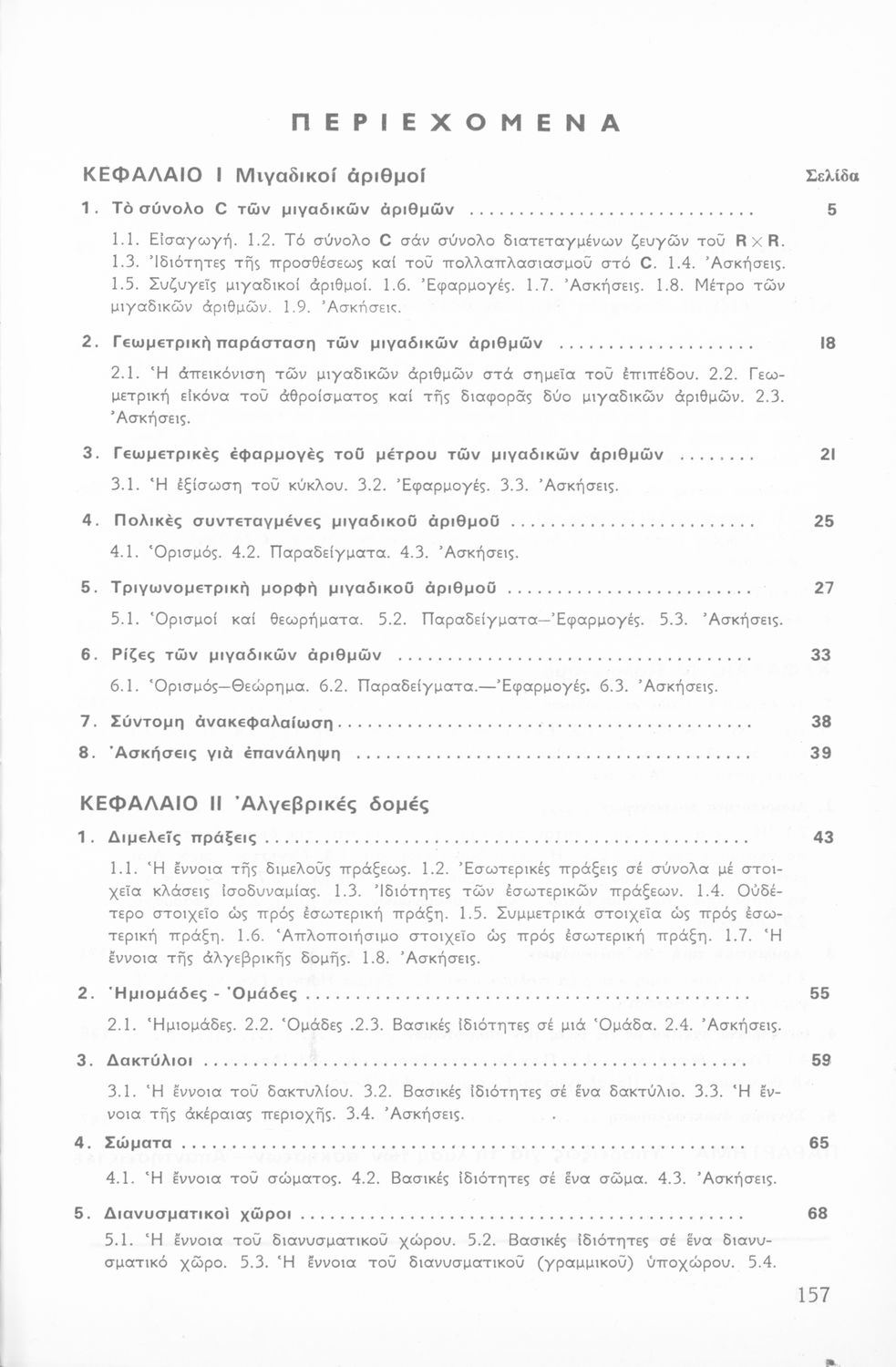 Σχολικό εγχειρίδιο Άλγεβρας Β΄ Λυκείου χωρισμένο σε θεωρία, παρατηρήσεις και ασκήσεις που περιλαμβάνει και στοιχεία από το Διανυσματικό Λογισμό και την Αναλυτική Γεωμετρία που έχουν συγγραφεί από τον Ιωάννη ...