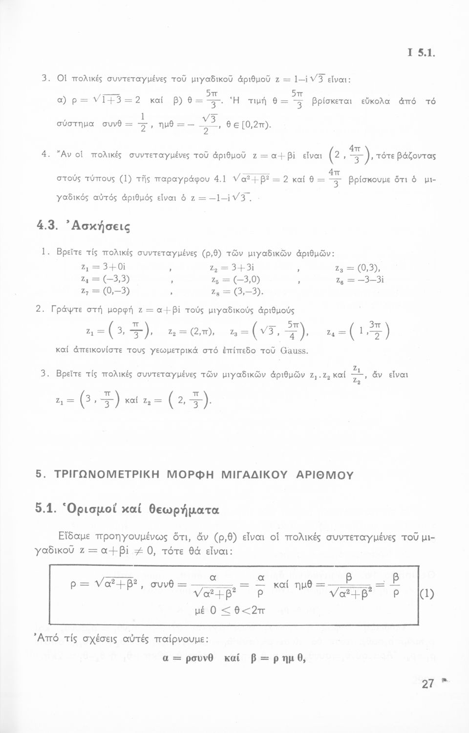 Σχολικό εγχειρίδιο Μαθηματικών Γ΄ Λυκείου που είναι χωρισμένο σε θεωρήματα, παραδείγματα και ασκήσεις και περιλαμβάνει στοιχεία Ανώτερης Άλγεβρας και Μαθηματικής Ανάλυσης.