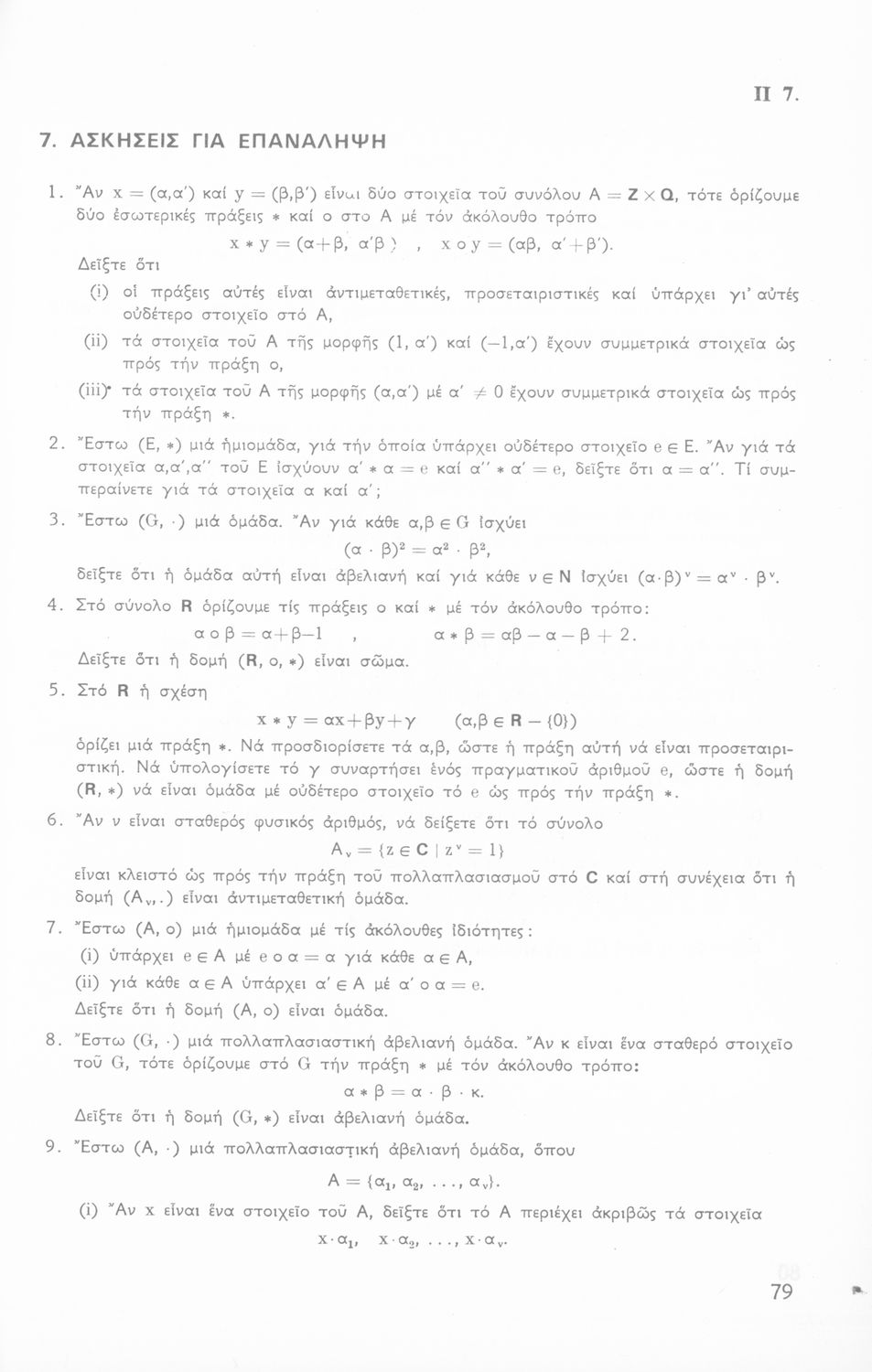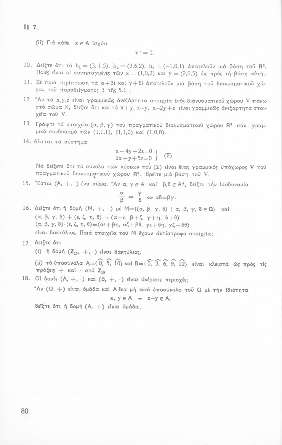 Σχολικό εγχειρίδιο Άλγεβρας Β΄ Λυκείου χωρισμένο σε θεωρία, παρατηρήσεις και ασκήσεις που περιλαμβάνει και στοιχεία από το Διανυσματικό Λογισμό και την Αναλυτική Γεωμετρία που έχουν συγγραφεί από τον Ιωάννη ...