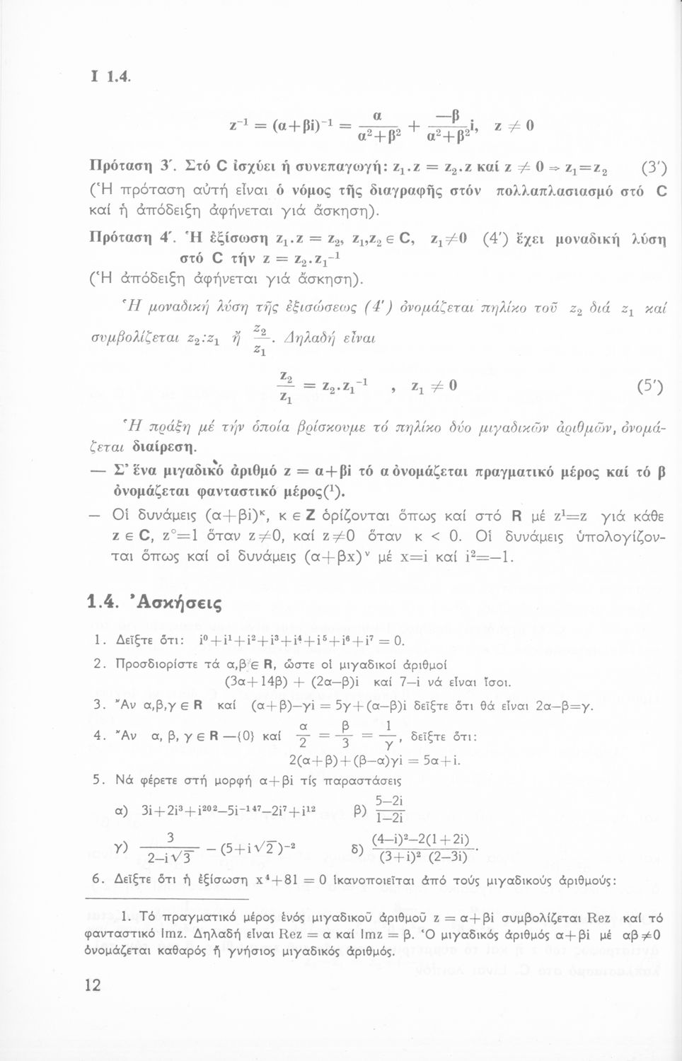 Σχολικό εγχειρίδιο Μαθηματικών Γ΄ Λυκείου που είναι χωρισμένο σε θεωρήματα, παραδείγματα και ασκήσεις και περιλαμβάνει στοιχεία Ανώτερης Άλγεβρας και Μαθηματικής Ανάλυσης.