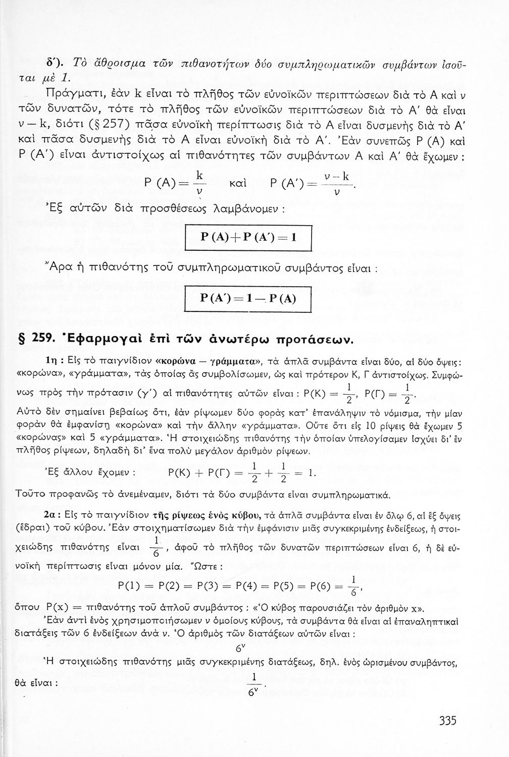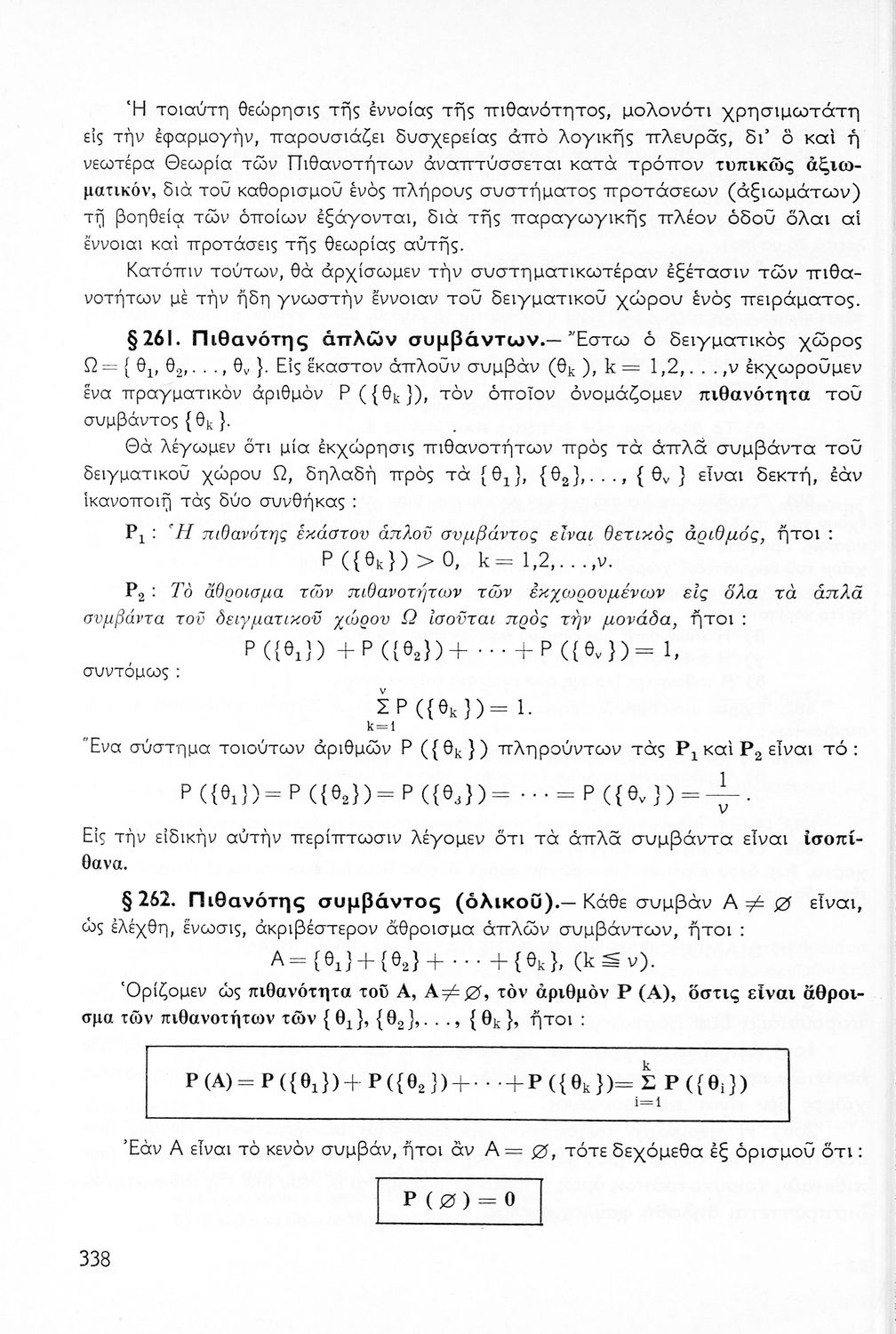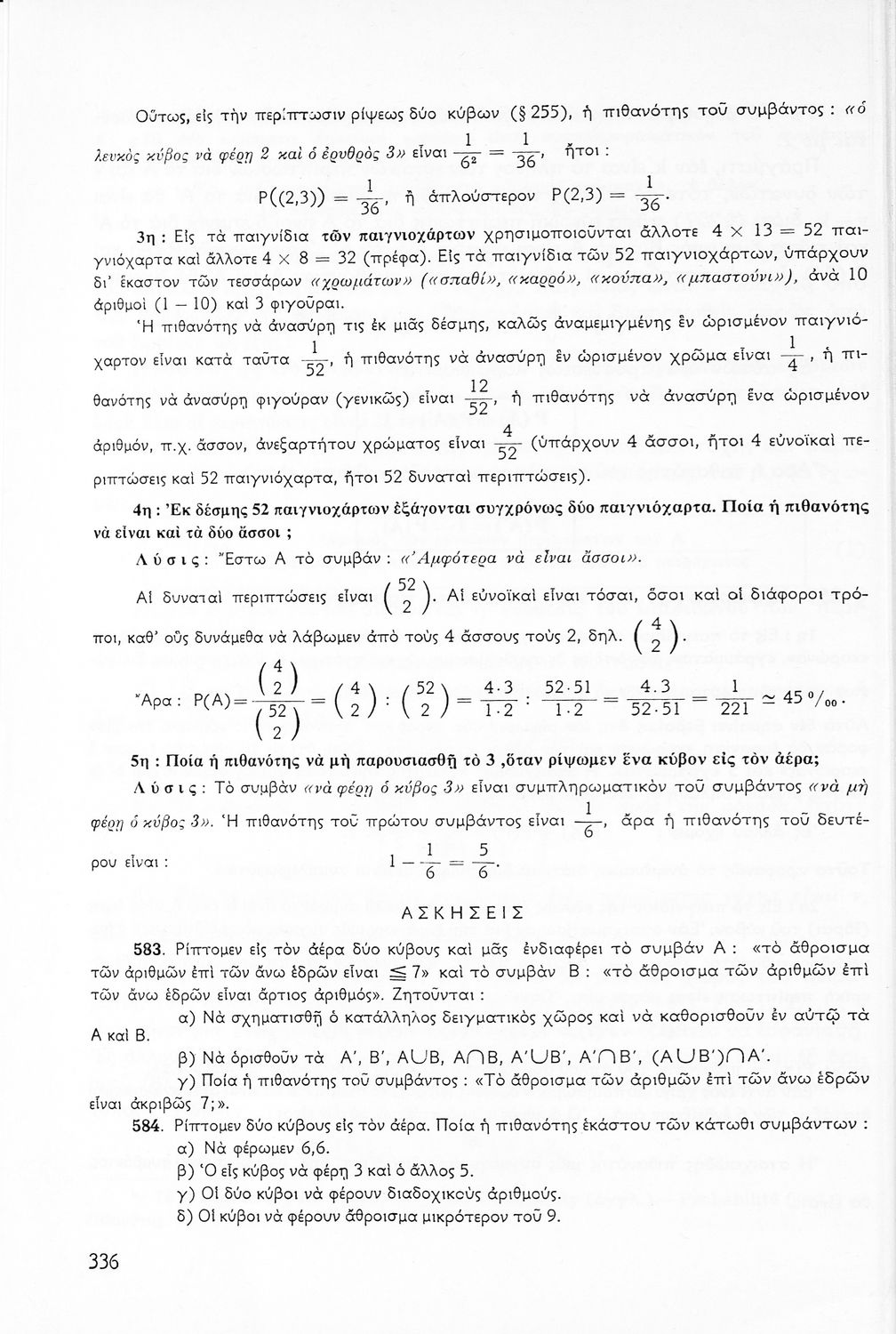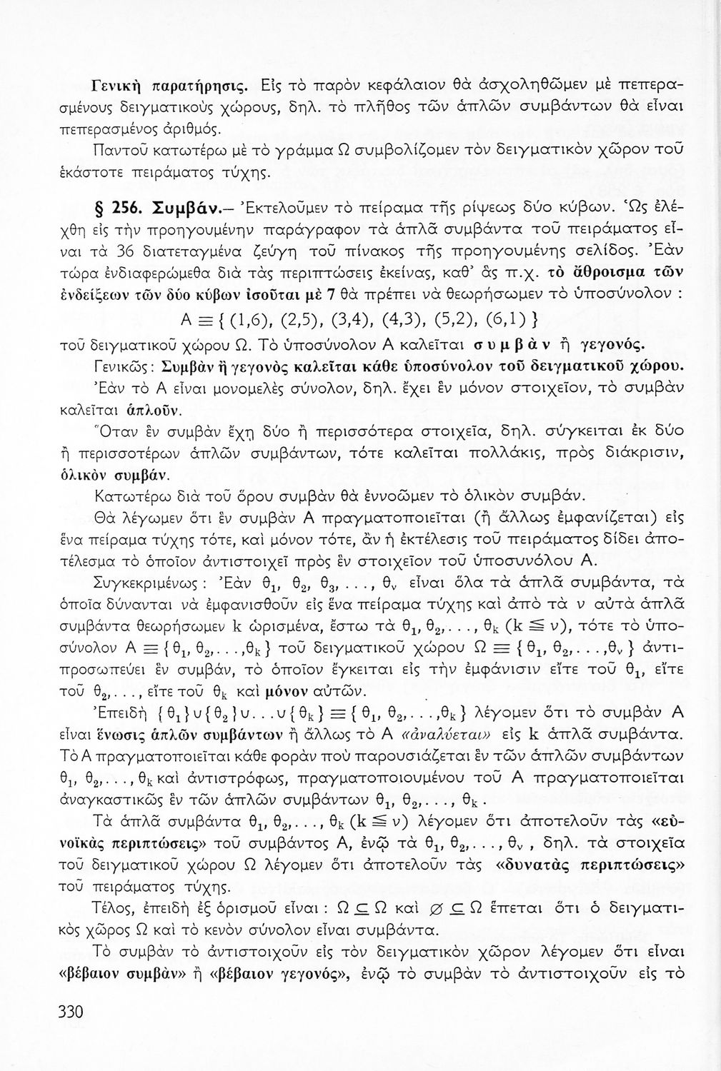 Σχολικό εγχειρίδιο Μαθηματικών Ε' Γυμνασίου που εστιάζει στη θεωρίας των συνόλων, τα ακέραια πολυώνυμα, τους πραγματικούς αριθμούς και τις πιθανότητες. Φέρει το σύμβολο της δικτατορίας.