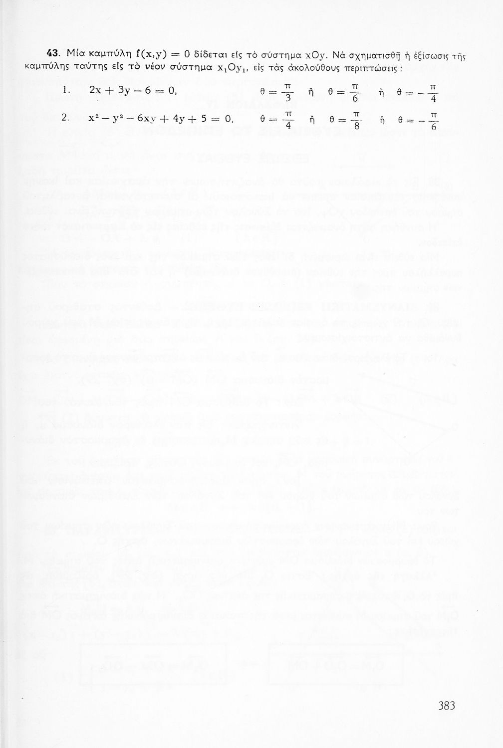 Σχολικό εγχειρίδιο Μαθηματικών Δ΄ και Ε΄ Γυμνασίου που είναι χωρισμένο σε θεωρήματα και ασκήσεις και εστιάζει στη Γεωμετρία. Φέρει το σύμβολο της δικτατορίας.